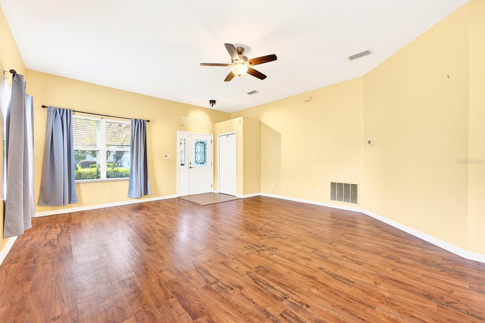 One or more photo(s) has been virtually staged. Seller may consider buyer concessions if made in an offer ~ Welcome to easy Florida living in the highly desirable 55+ community of Plantation at Leesburg ~ Glendale Village, ideally located just 1.5 miles from The Villages and all the shopping, dining, entertainment, and golf the area is known for! Set within one of Lake County’s most AMENITY RICH ~ ACTIVE ADULT COMMUNITIES with a lower HOA than The Villages, this MOVE-IN READY single-story home offers a practical layout, no carpet, and a peaceful backyard setting designed for relaxed everyday living. Step inside to a light and OPEN FLOOR PLAN with WOOD LAMINATE FLOORING throughout, creating a clean, modern feel and easy maintenance. The spacious living area at the front of the home flows naturally into the dining space and into the eat-in kitchen, making the layout ideal for both entertaining and comfortable daily living. The kitchen is well equipped with a breakfast bar, pantry storage, pendant lighting, and all appliances included, plus the garage refrigerator and freezer for added convenience. One of the standout features of this home is the FLEXIBLE OFFICE with double doors, perfectly positioned in the center of the home. This versatile space can easily function as a home office, hobby room, guest space, or a potential THIRD BEDROOM depending on your needs. The PRIMARY SUITE is tucked away at the back of the home for added privacy and offers a WALK-IN CLOSET and a private en-suite bath. A second bedroom at the front of the home sits next to the second full bathroom, creating a comfortable split layout that works well for guests. Out back, enjoy true Florida INDOOR/OUTDOOR LIVING from the SCREENED, TILED LANAI overlooking a lovely backyard view. The outdoor space is ready to enjoy from day one with the HOT TUB and BBQ grill included with the home, making it perfect for relaxing evenings or entertaining friends and neighbors. Additional highlights include extra storage in the garage, all appliances included, laminate floors throughout with no carpet, cheerful curb appeal, and mature landscaping that enhances the welcoming feel of the home. Residents of Plantation at Leesburg enjoy an exceptional lifestyle with two GOLF COURSES, an on-site RESTAURANT, resort-style POOLS, fitness centers, tennis and pickleball courts, clubhouses, and a full calendar of SOCIAL EVENTS and ACTIVITIES, all within a beautifully maintained GATED COMMUNITY. Best of all, you are just minutes from The Villages while enjoying lower HOA fees and a quieter neighborhood setting. If you are searching for a move-in ready home in a vibrant Central Florida 55+ golf community with fantastic amenities and a flexible layout, this Plantation at Leesburg gem is ready to welcome you home!
