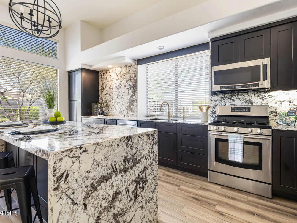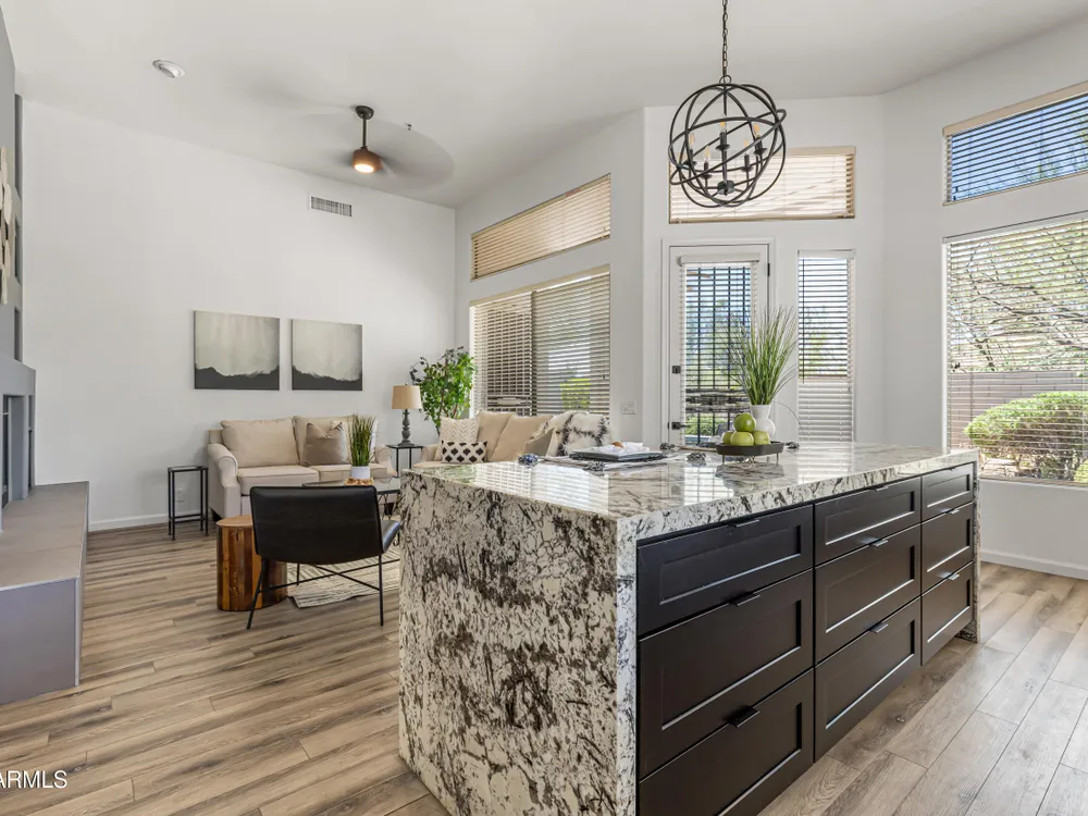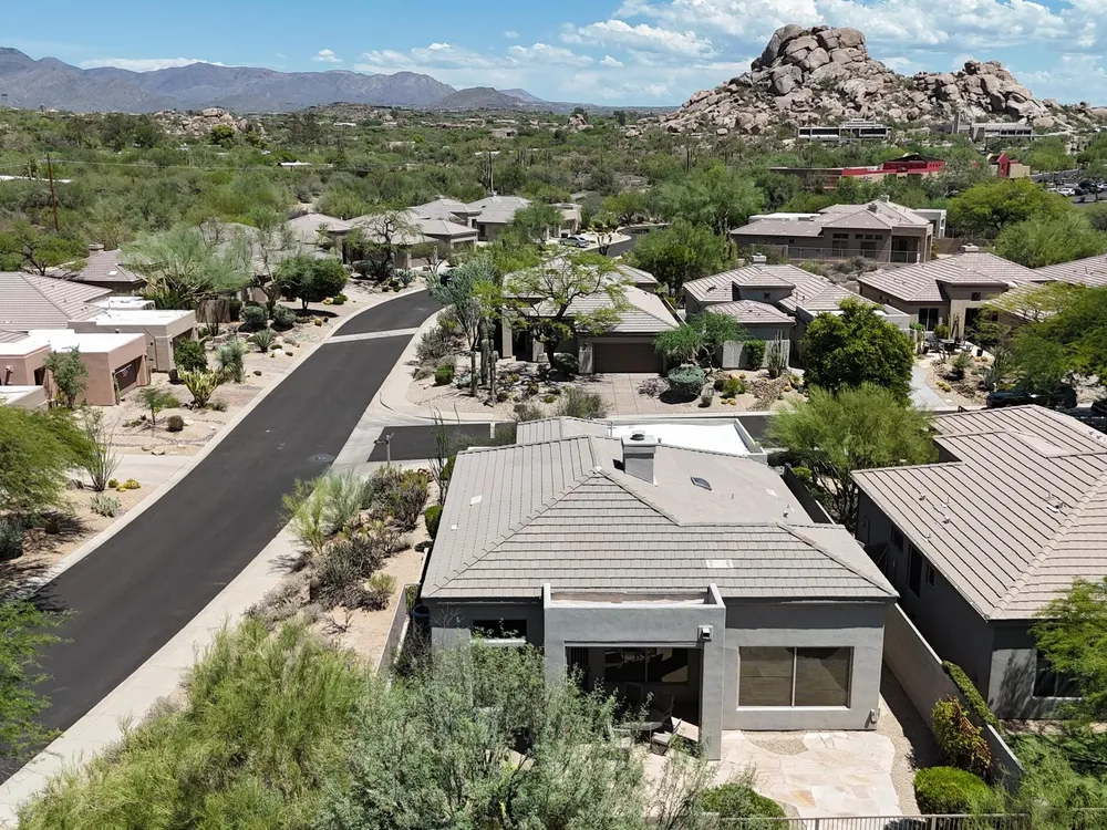 CountryClub Living at its finest. Step inside this remarkably upgraded home & feel the elegance—stunning kitchen, soaring light-filled spaces, rich finishes, & endless views of Black Mountain. The brand new designer kitchen is a showpiece with striking black cabinetry, slab granite waterfall island, dramatic backsplash & top-tier Café appliances. The spa-inspired owner's suite features a massive double-headed glass shower, and plenty of room to relax. Outside, unwind in total privacy with lush landscaping, private corner lot, flagstone and easy care landscaping. Every big-ticket upgrade done—roof, HVAC, flooring, sunscreens. All within guard-gated Terravita, just steps from the clubhouse; golf course, tennis and picklebal& walking trails. This home is gorgeous and Owner may Carry.