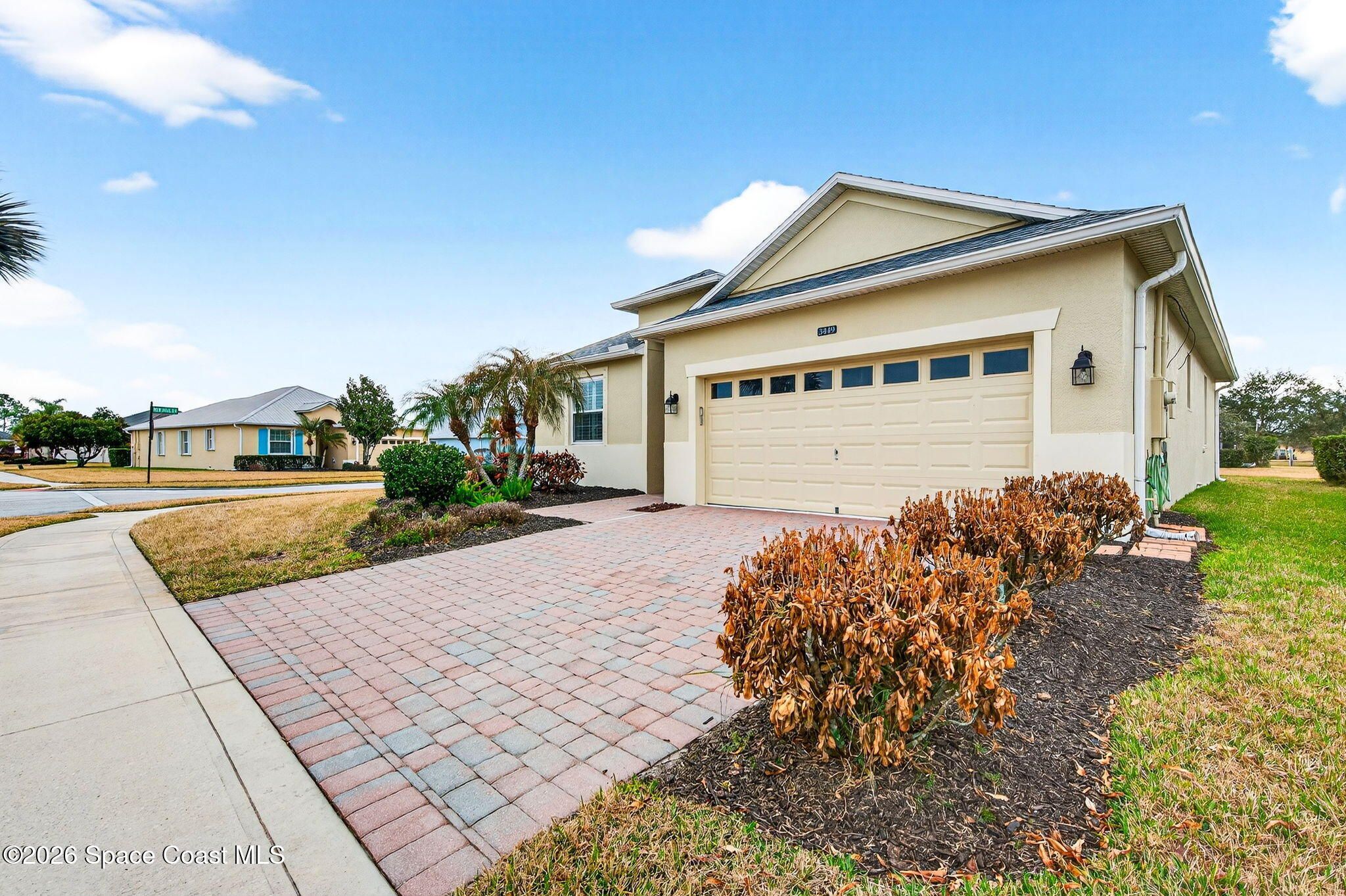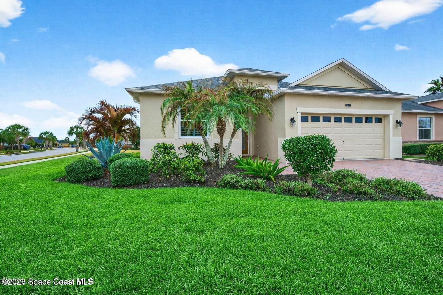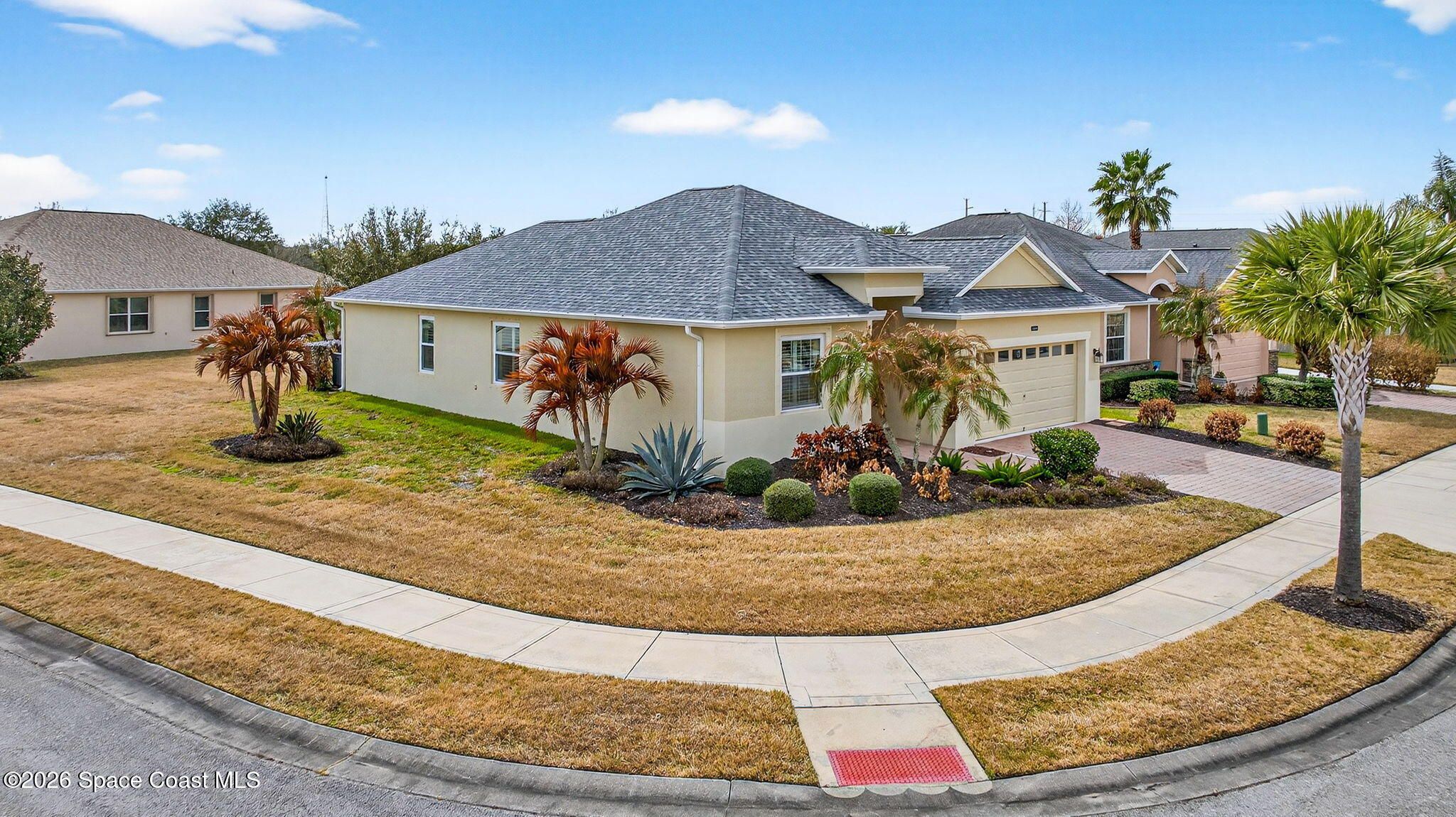 Welcome to this well-maintained 3-bedroom, 2-bath home in the premier 55+ community of Heritage Isle. This inviting home offers an open floor plan with tile and laminate flooring throughout, creating a low-maintenance living space. The kitchen features granite countertops, an updated backsplash, stainless steel appliances, and opens seamlessly to the dining and living areas, accented by plantation shutters. The spacious owner's suite includes an upgraded bathroom and custom closet organizers. Major updates provide peace of mind, including a new roof and hurricane-impact windows in 2024, select shuttered windows & newer water heater. Enjoy Florida living on the expanded, rescreened lanai overlooking a peaceful water view. Situated on a large corner lot with community-maintained landscaping. Residents enjoy access to the Heritage Isle clubhouse with a pool, fitness center, restaurant, tennis, pickleball, and an active social calendar. Convenient to shopping, dining, golf and beaches.