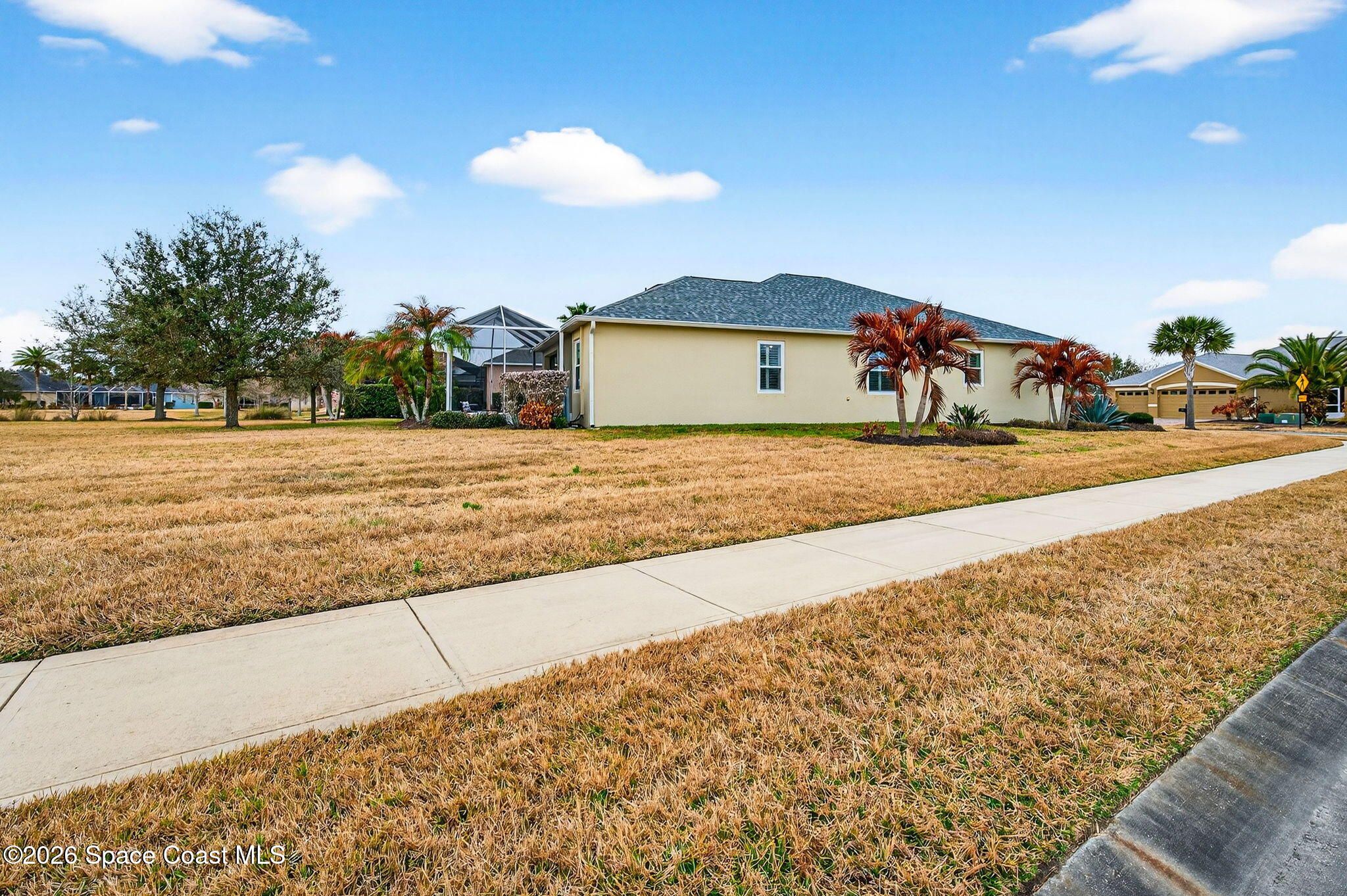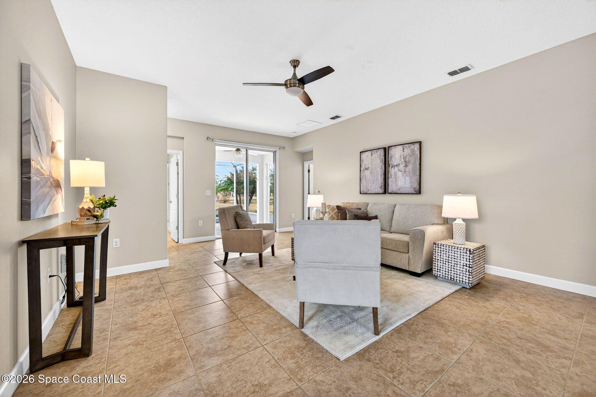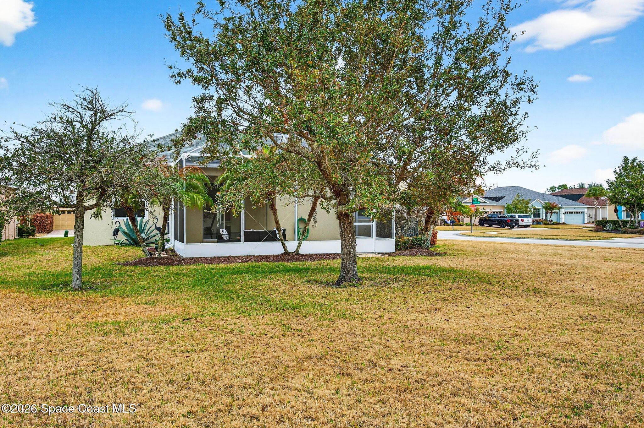 Welcome to this well-maintained 3-bedroom, 2-bath home in the premier 55+ community of Heritage Isle. This inviting home offers an open floor plan with tile and laminate flooring throughout, creating a low-maintenance living space. The kitchen features granite countertops, an updated backsplash, stainless steel appliances, and opens seamlessly to the dining and living areas, accented by plantation shutters. The spacious owner's suite includes an upgraded bathroom and custom closet organizers. Major updates provide peace of mind, including a new roof and hurricane-impact windows in 2024, select shuttered windows & newer water heater. Enjoy Florida living on the expanded, rescreened lanai overlooking a peaceful water view. Situated on a large corner lot with community-maintained landscaping. Residents enjoy access to the Heritage Isle clubhouse with a pool, fitness center, restaurant, tennis, pickleball, and an active social calendar. Convenient to shopping, dining, golf and beaches.