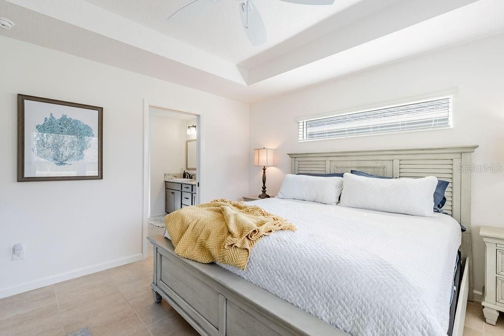 - Ceiling Fan(s), High Ceilings, Open Floorplan, Main Level Primary, Split Bedrooms, Thermostat, Walk-In Closet(s), Window Treatments