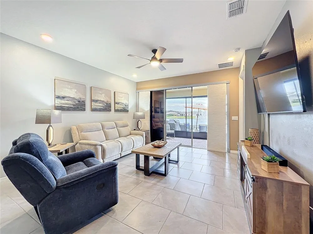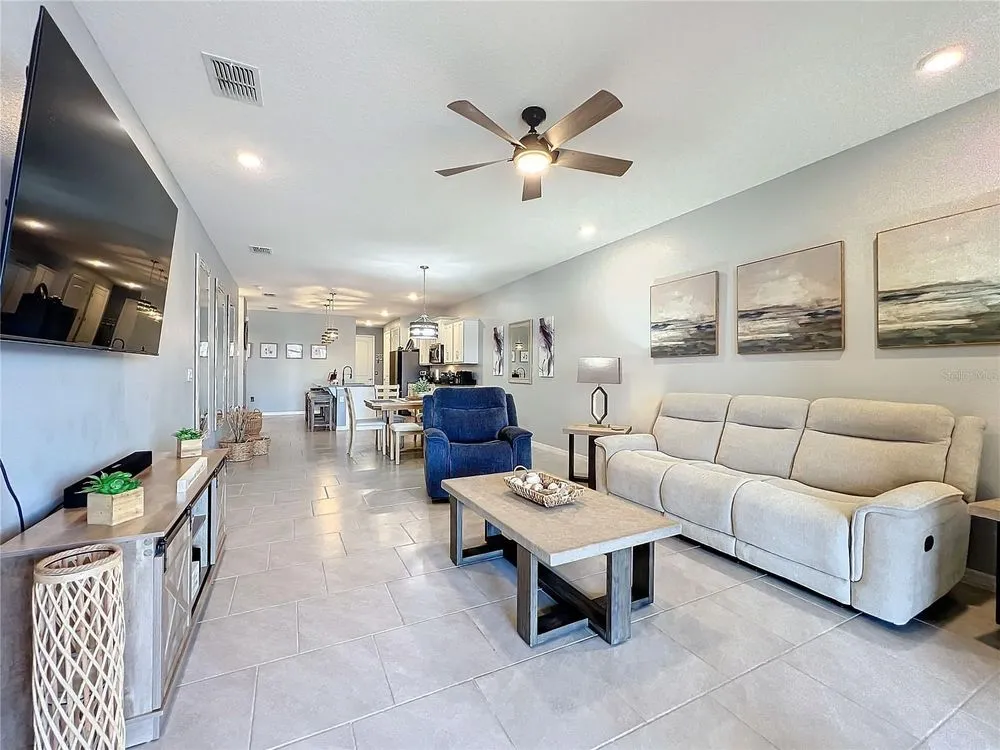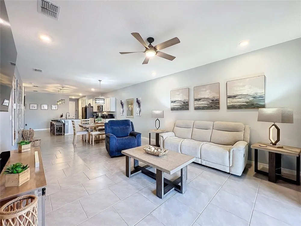 - Ceiling Fan(s), High Ceilings, Living/Dining Room, Open Floorplan, Smart Home, Solid Surface Counters, Thermostat