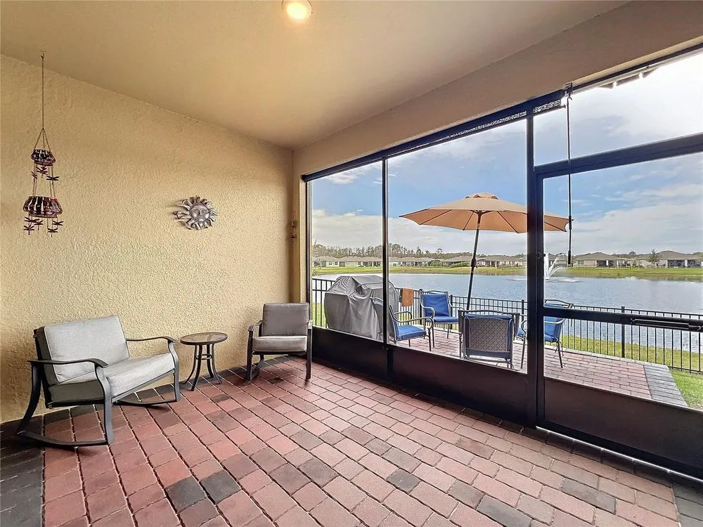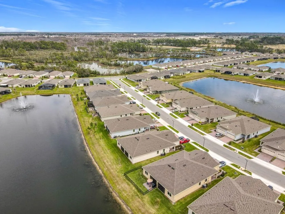 Step into luxury and into your future 55+ active community in THE PALMS at SERENOA, that perfectly blends convenience with RESORT-STYLE LIVING. This is your opportunity to own a waterfront home in the beautiful Serenoa community. The HOA fee includes cable, internet and exterior maintenance. Features include thoughtfully designed two-bedroom, two-bathroom plus den which is perfect for an office or a hobby room with amazing sunsets over the lake water fountains. The open floor plan is ideal for relaxing, entertaining and with views from almost every room. Upon entering, you're welcomed into spacious and tall ceiling foyer and hobby room to your left, continuing into the kitchen, dining and living area. Natural light abounds through the large, tinted glass sliding doors that span the entire rear wall. The huge kitchen is a cook’s dream. Equipped with solid counter tops, three pendant lights and stainless-steel appliances, the large center island and its surrounding space make meal prep a pleasure. This home takes modern living to the next level with its integrated with smart home technology integration adding energy efficiencies and wireless capabilities. The master suite features dual "his and hers" walk-in closets, laminate flooring and extraordinary views of the lake and water features. The en-suite bathroom is well equipped with dual sinks and an easy walk-in shower. The icing on the cake is the nice, appointed sunset facing screened porch with an extended brick patio and fenced yard, perfect for Florida’s colorful sunsets viewing and southing water sound. Expect to be impressed by the amenities of THE PALMS community. The first-class clubhouse is surrounded by beautiful landscapes, lots of activities and a resort-style pool. Location is a plus as you will be minutes from WALT DISNEY WORLD, extensive shopping, hospitals, a variety of eating establishments and the soon to be opened 429 connector. Come and see why the residents are so pleased to be living at The Palms, schedule a showing today! The HOA fee includes cable, internet and exterior maintenance. Home has an assumable loan with 4.75 interest rate. Ask me how it works!