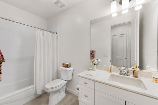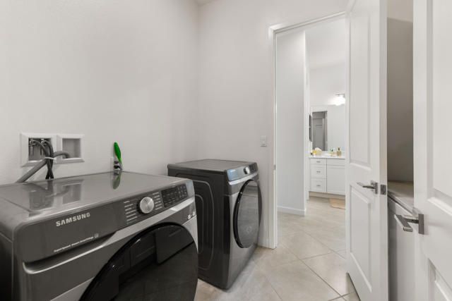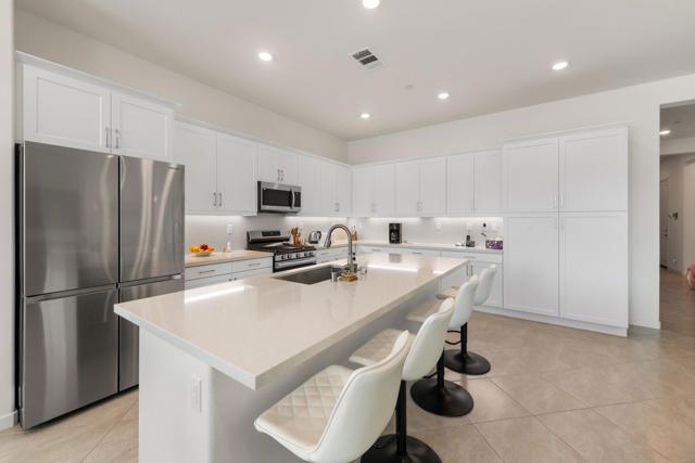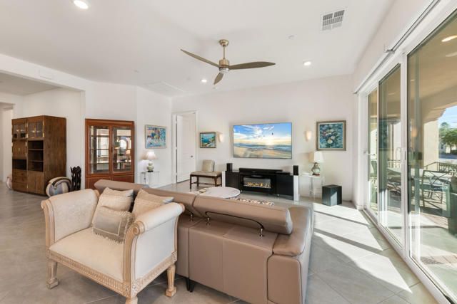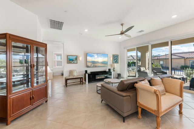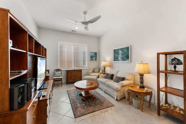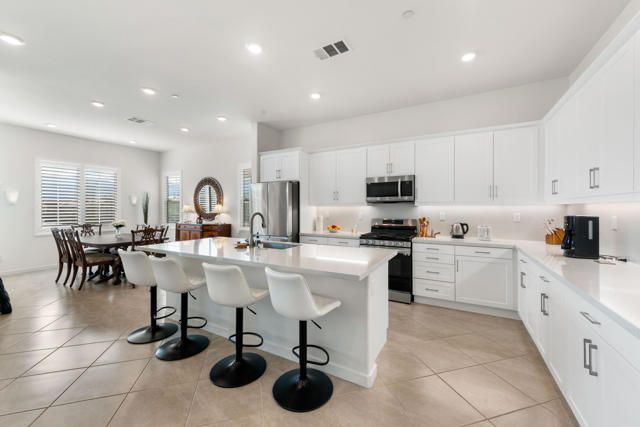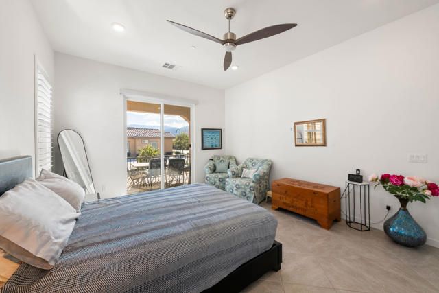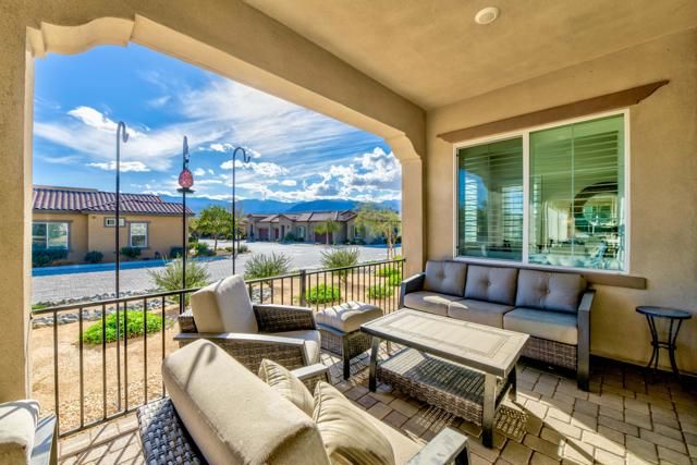 Welcome to Villa Portofino offering a Resort Lifestyle within this Active Adult Community. This newer home built in 2023 by Crestwood Communities, features a modern, sophisticated design. Enjoy mountain views on the south facing covered patio. With 2,249 sq ft, the open floor plan is light and bright showcasing beautiful floor tile designed for comfort and ease for everyday living. A gourmet kitchen with top-of-line appliances, sleek, white shaker cabinets with soft-close drawers, Quartz countertops and the convenience of a center island with counter seating provides the ultimate when entertaining. The Primary bedroom features a custom window covering with remote control, walk-in closet, 2 separate sinks with vanities, a large shower with bench seat and designer glass enclosure. The 2nd bedroom is adjacent to a Den/Flex Room, the perfect retreat to cozy up with a book, TV viewing and relaxation. The attached Casita has luxury vinyl flooring, walk-in closet and 3/4 bathroom. Energy efficient with Solar, that is owned, tankless water heater and an air conditioned 2-car garage. A friendly environment awaits you in Villa Portofino as the Clubhouse amenities offer an array of fun-filled activities, dining, fitness, pool, spa and sport courts. Within minutes you'll enjoy the convenience of grocery options, Dining, Art and Boutiques on fashionable El Paseo, Eisenhower Health, The McCallum Theater, The River in Rancho Mirage and Acrisure Arena for sport and concert enthusiasts. The Lifestyle can be as quiet or adventurous as you want in beautiful Villa Portofino.
