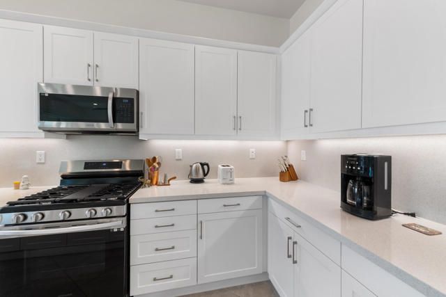 - Gas Range, Microwave, Water Line to Refrigerator, Refrigerator, Disposal, Dishwasher, Tankless Water Heater