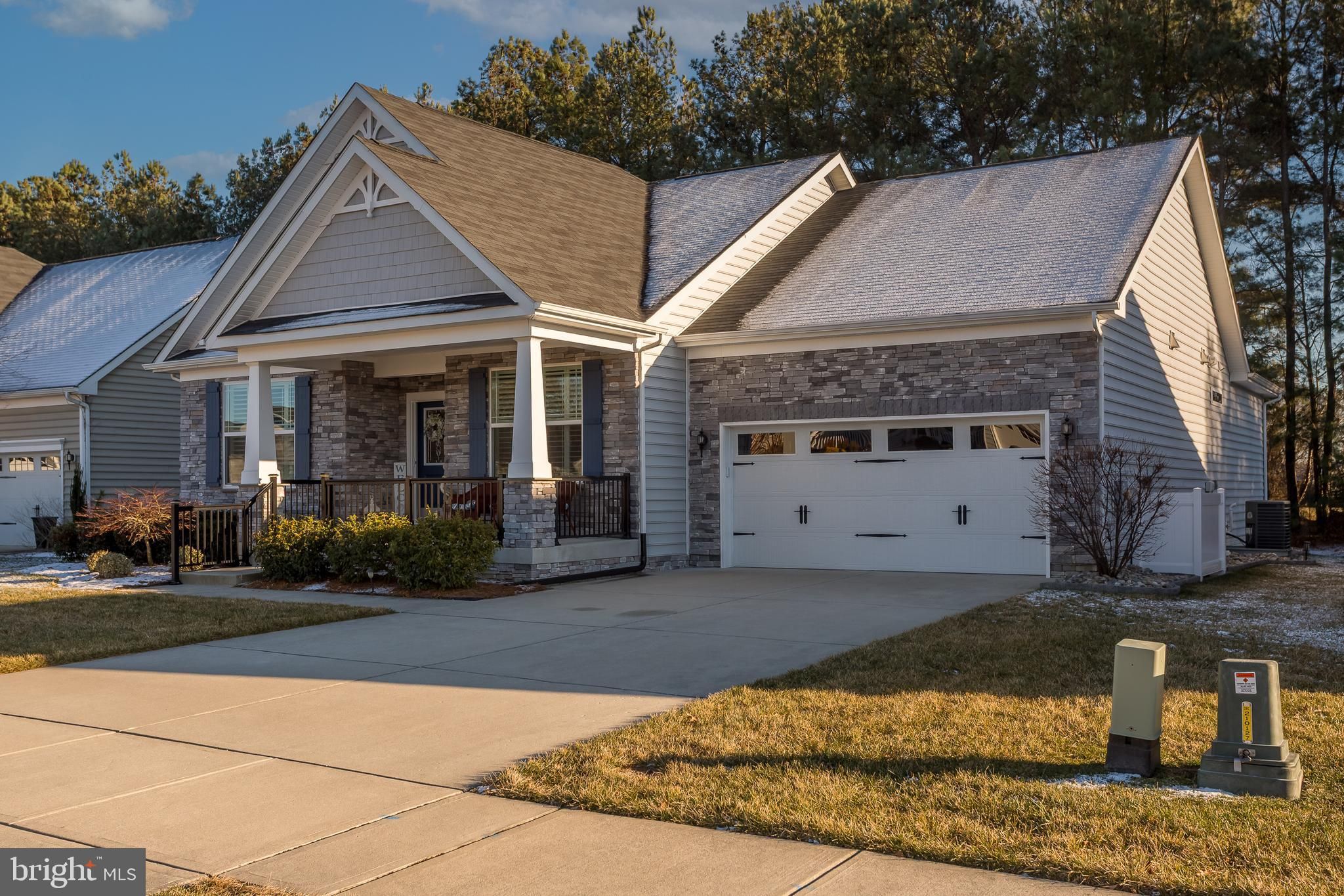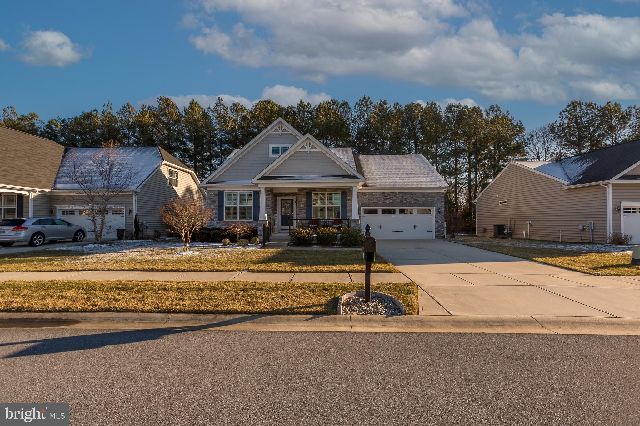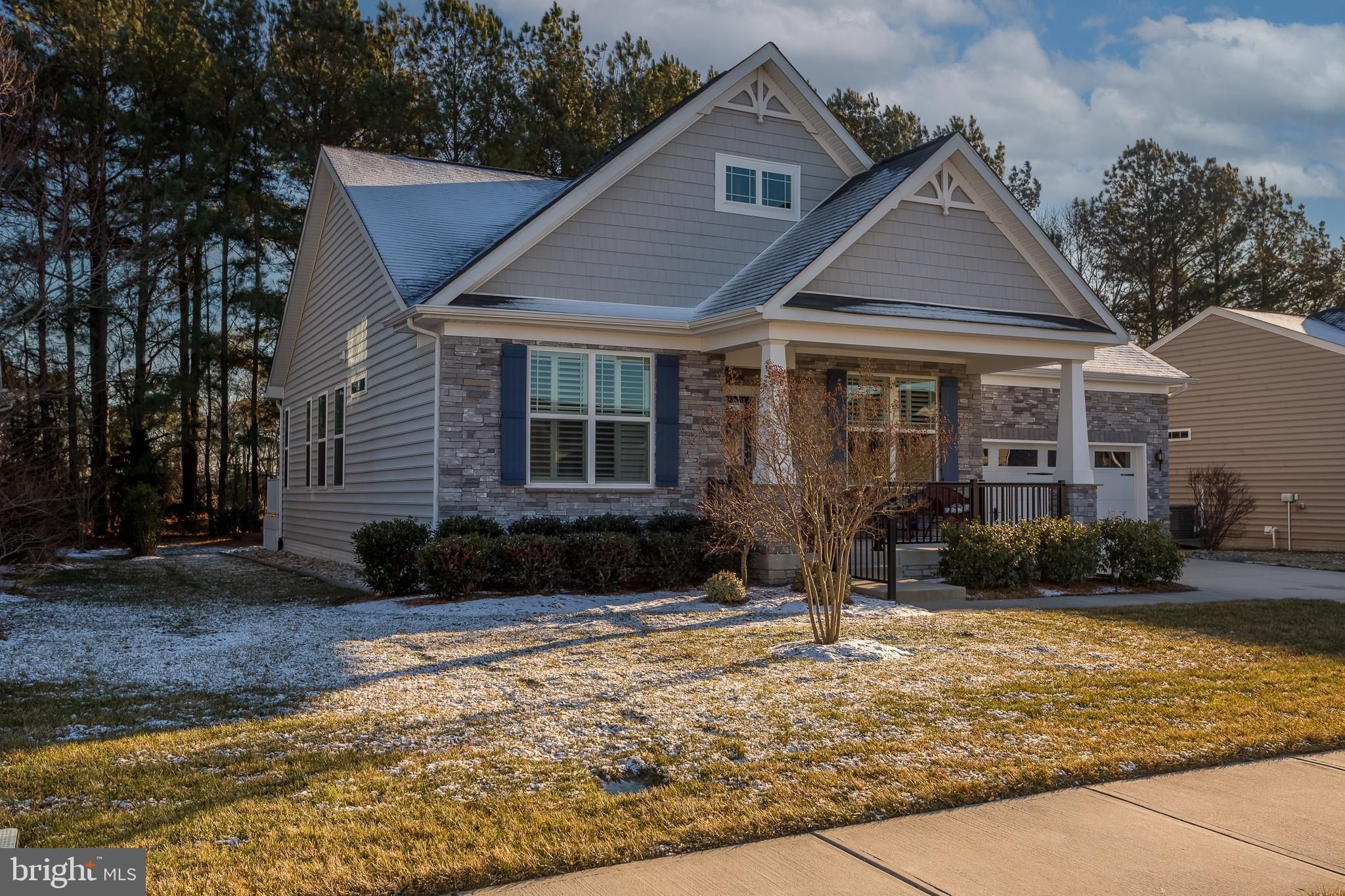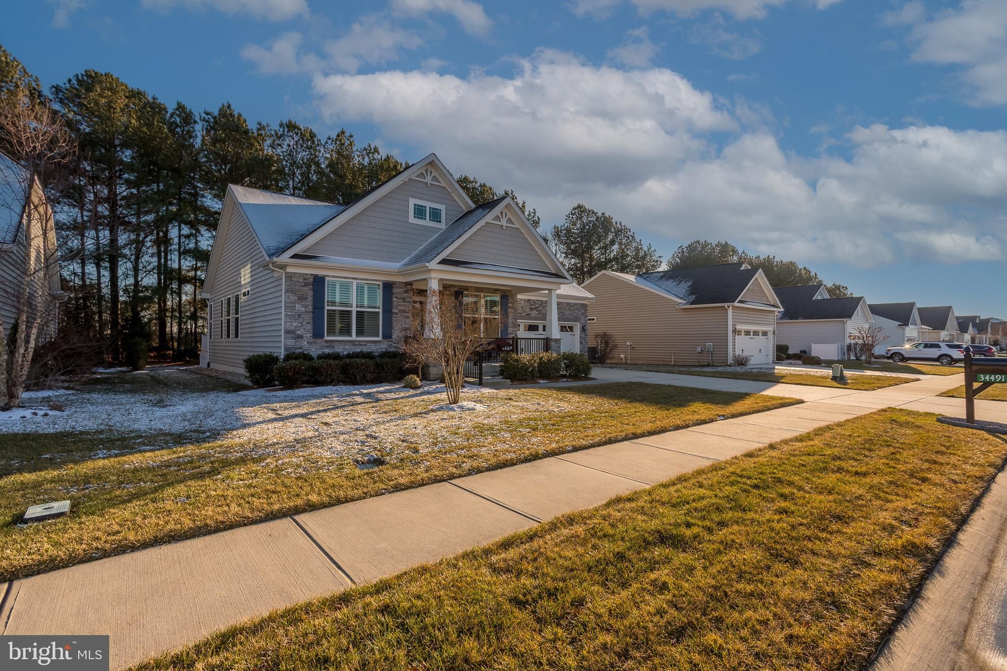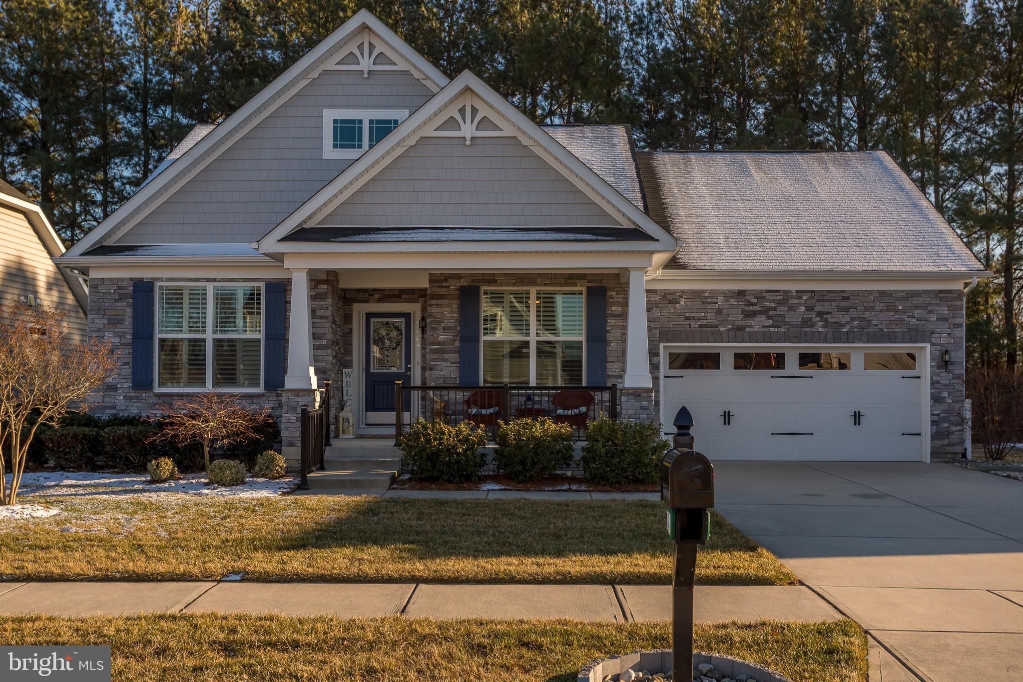 Welcome to this beautifully maintained single-family home in the desirable waterfront community of The Villages at Red Mill Pond, where thoughtful upgrades and meticulous care shine throughout. With Pickle Ball courts, pool, and clubhouse with many scheduled activities, as well as a direct walking path and boardwalk to Red Mill Pond, the community screened gazebo and dock offering a kayak launch, this is living at it's finest! Exceptional curb appeal greets you with a striking stone façade and an upgraded black metal railing that frames the spacious front porch—an ideal spot to relax and enjoy breezy summer evenings. Step inside to discover engineered hardwood flooring throughout the main living areas and plush, brand-new carpeting in all bedrooms that feels like you are walking on a cloud. The inviting great room offers a cozy gas fireplace and flows seamlessly into the dining room and gourmet kitchen, creating a perfect space for everyday living and entertaining. The kitchen is a standout, offering upgraded cabinetry, granite countertops, a breakfast bar, and stainless steel appliances, including a gas range with double ovens and a three-door refrigerator with in-door ice and water. Just off the kitchen, the dining room overlooks a bright four-season sunroom with views of the back yard that backs to trees and the bike path, enhanced with a dedicated mini-split system to provide comfortable, year-round living space. Recent improvements continue throughout the home, including a freshly painted exterior and new shutters, updated door hardware with modern lever-style knobs, and a garage that has had the drywall re-taped and repainted. Step outside to the extended deck—perfect for evening cocktails or entertaining—while enjoying serene wooded views. The backyard also offers direct access to the bike path, making it easy to bike or walk to many nearby destinations, including Lewes. Outdoor living is further enhanced with a direct-vent gas grill hookup (no more propane tanks), a paver patio, landscape edging, as well as an upgraded drainage system with gutters routed underground and pop-ups to direct water away from the home. The encapsulated crawl space adds peace of mind and valuable storage. Tucked away from the hustle and bustle yet conveniently close to everything, including the beaches, shopping and restaurants, this exceptional home offers comfort, quality, and lifestyle in a sought-after coastal community with the ability to bike to the beach! Schedule your private showing today!