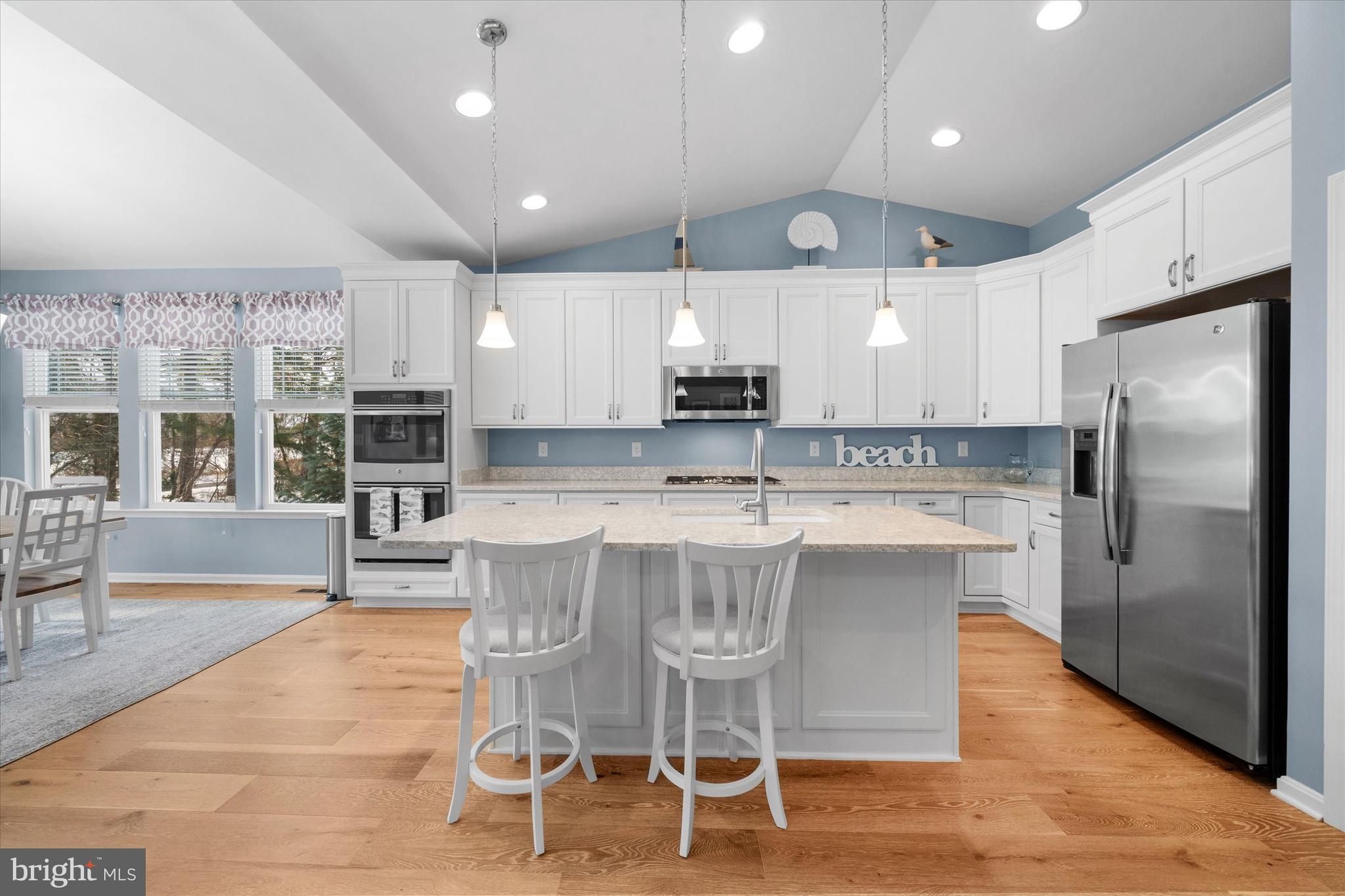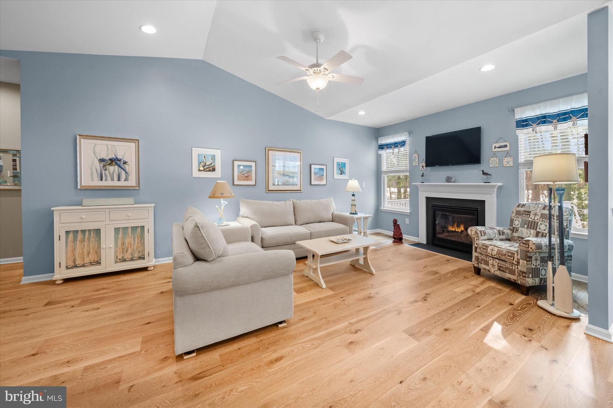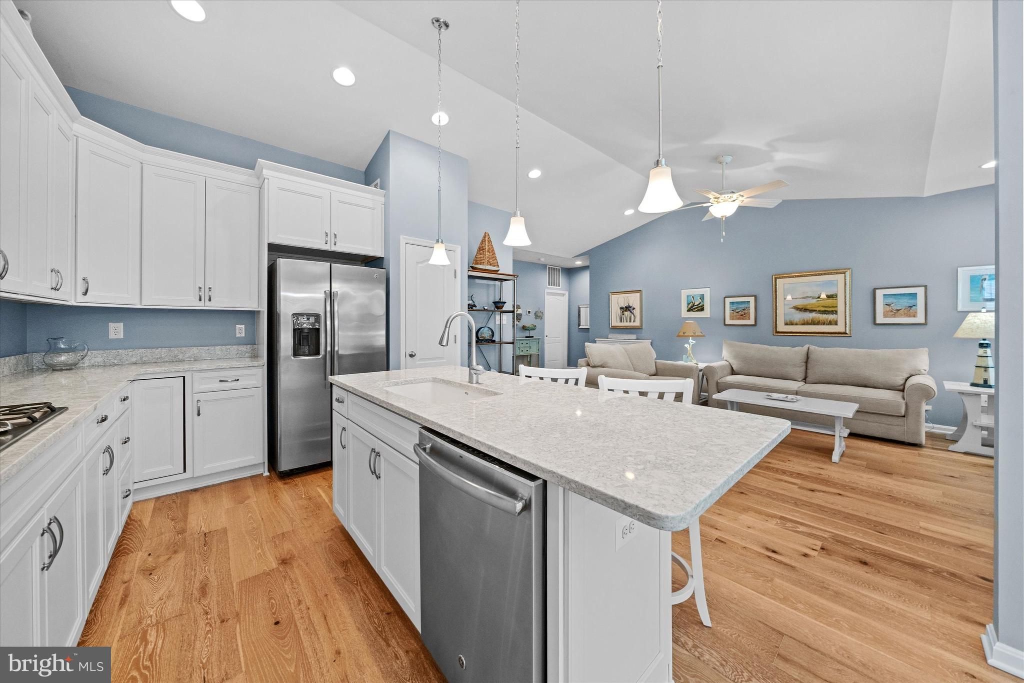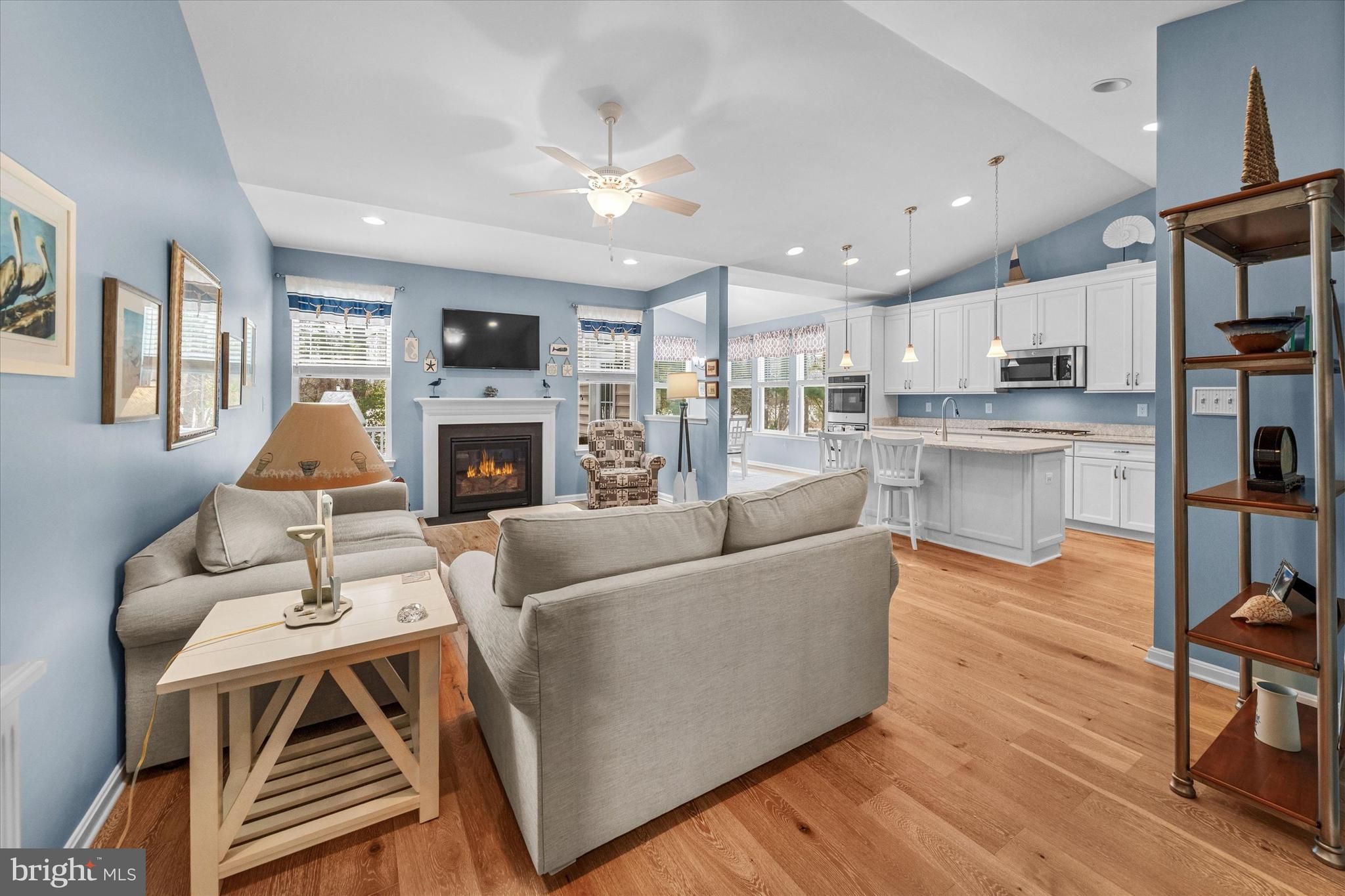 Coastal charm meets maintenance-free, single-level living on a premium lot. This beautifully maintained 3-bedroom, 2-bath home offers true one-level living and is the perfect blend of comfort, style, and location—ideal for year-round enjoyment or a relaxing weekend getaway. Step inside to an open, airy floor plan featuring a 6-foot extension, an extended morning room addition, cathedral ceilings, and 7" wide-plank oak hardwood flooring throughout the home. The open-concept living space is enhanced by a cozy gas fireplace, creating a warm and inviting atmosphere for everyday living or entertaining. The upgraded kitchen showcases newly installed top-tier Cambria quartz countertops with lifetime warranty, stainless steel appliances, a large center island, and stylish upgraded cabinetry. The sun-filled morning room provides the perfect dining space with direct access to the 12x14 maintenance-free composite deck, overlooking the scenic Georgetown–Lewes Bike Trail—ideal for outdoor dining and peaceful relaxation. The private primary suite offers a serene retreat with a spacious walk-in closet and an updated en-suite bath featuring a tiled shower with seamless glass doors and a granite double vanity. Two additional guest bedrooms share an upgraded full bath with a granite vanity and tiled tub/shower surround. Additional highlights include a dedicated laundry room, conditioned crawl space with interior access and a newly installed sump pump, and an attached two-car garage for added storage and convenience. The home is also equipped with an irrigation system that uses a shared well, providing efficient lawn care while saving on water usage. Located in a beautifully maintained, amenity-rich community, residents enjoy access to a swimming pool, fitness center, clubhouse with billiards, and a scenic waterfront pier with kayak access to the tranquil 179-acre Red Mill Pond. The community also offers direct access to the Georgetown–Lewes Trail, perfect for biking, walking, or enjoying the outdoors. Perfectly situated just minutes from the charming downtown areas of Lewes, Milton, and Rehoboth Beach, this like-new home delivers coastal living at its finest—close to shopping, dining, and beaches, yet tucked away in a peaceful neighborhood setting.
