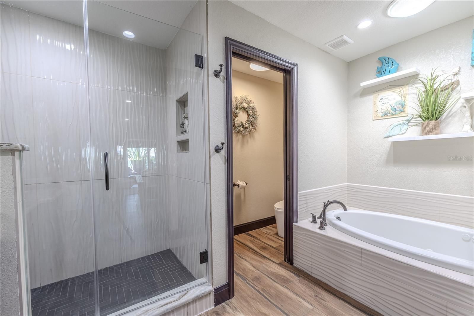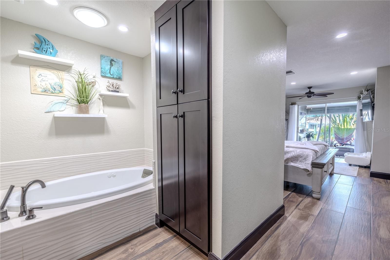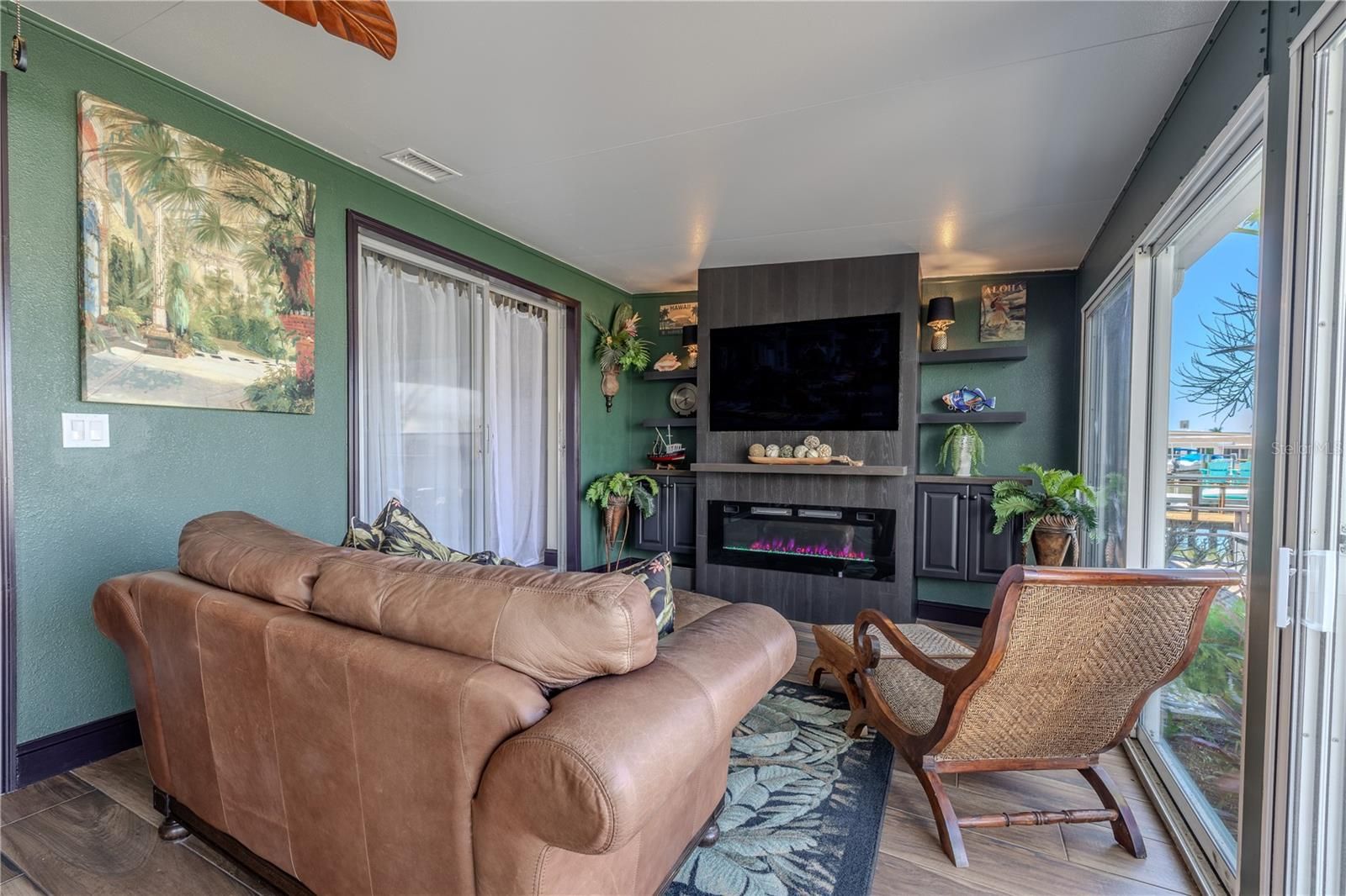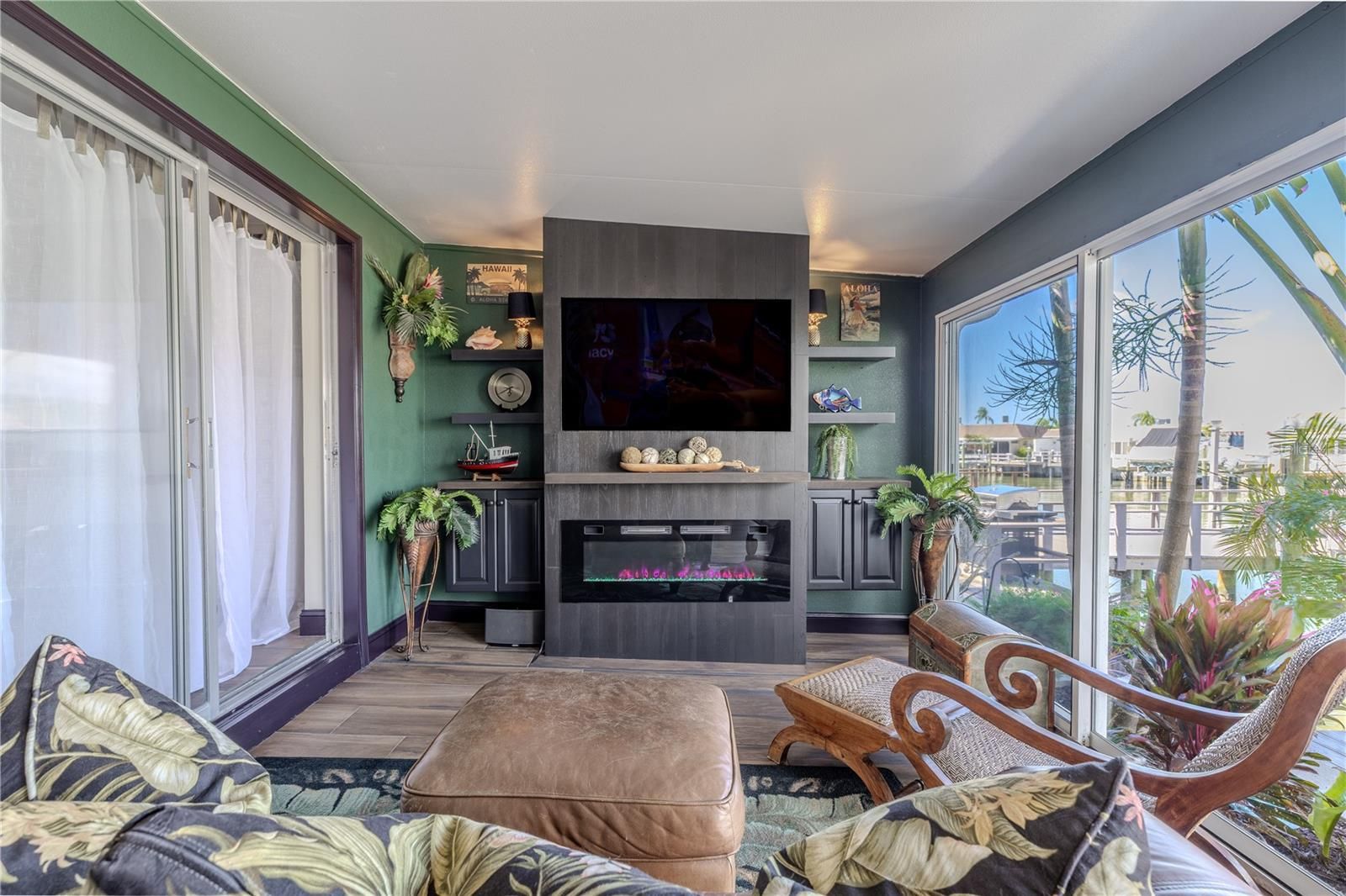 STUNNING WATERFRONT VILLA! Welcome to this beautifully upgraded villa that embodies the ease and charm of coastal Florida living. Designed with care and attention to detail, it provides a perfect balance of comfort, elegance, and function. A private brick-paver courtyard surrounded by tropical landscaping welcomes you home. The space feels peaceful and inviting, with room for a grill or café table and a wall-mounted fan to keep the air cool while you relax outdoors. The decorative glass front door opens to a bright, open-concept interior filled with natural light and a warm coastal feel. Ceramic tile floors flow throughout, creating a polished and cohesive look. Crown molding adds subtle character, and recessed lighting gives each room a soft, even glow. A kitchen window overlooks the courtyard, connecting the indoor and outdoor spaces beautifully. The kitchen blends timeless design with modern convenience. A large granite island provides seating, storage, apron sink with garbage disposal (2020), touch faucet (2025) and built-in outlets. Custom cabinetry and under-cabinet lighting highlight the craftsmanship. The Dacor refrigerator (2020), Sharp under-counter microwave (2025), double built-in oven (2025), dishwasher (2025), and induction range (2021) create a kitchen ready for both everyday living and entertaining. The sleek range hood, pot filler, and dual-zone wine and beverage refrigerator add thoughtful touches, while the built-in TV nook keeps the space relaxed and functional. The dining area flows naturally into the living room, where wide sliding glass doors open to the canal and fill the space with light. The open layout feels spacious yet cozy, ideal for gatherings or quiet evenings at home. The primary suite is a calm retreat with two closets, including one with custom built-ins. The ensuite bathroom feels like a spa with split vanities, stone counters, lighted mirrors, and custom water faucets that complete the designer look. The rainfall shower and jetted soaking tub create the perfect place to unwind, while the built-in linen storage and private water closet add convenience. The second bedroom is versatile, featuring both a walk-in and standard closet. Sliding glass doors installed in 2020 open to the front courtyard, and the retractable screen allows fresh air in during cooler months. The nearby bathroom continues the home’s cohesive style with a frameless shower, stone vanity with copper sink, and built-in storage. At the back of the home, the bonus room overlooks the canal and provides a comfortable space to read, relax, or entertain. Built-in shelving, a fireplace, a TV area, and a storage closet add flexibility. Through the glass doors, the composite deck completed in 2022 extends the living area outdoors, creating a peaceful place to enjoy canal views and breezes from sunrise to sunset. The private dock includes a 16,000-pound oversized boat lift for up to a 36-foot vessel, 50-amp shore power, remote color-changing railing lights, and a lighted pedestal that casts a soft glow across the water at night. Additional updates include a new roof (2025), leased water softener (2020), and water heater (2020). Located in the gated 55+ community of Boca Ciega Point, residents enjoy a friendly, active lifestyle with access to a clubhouse, shuffleboard, pool, tennis courts, and 24-hour security. Just minutes from the beaches, this home reflects the comfort, quality, and serenity that define the best of Florida living.