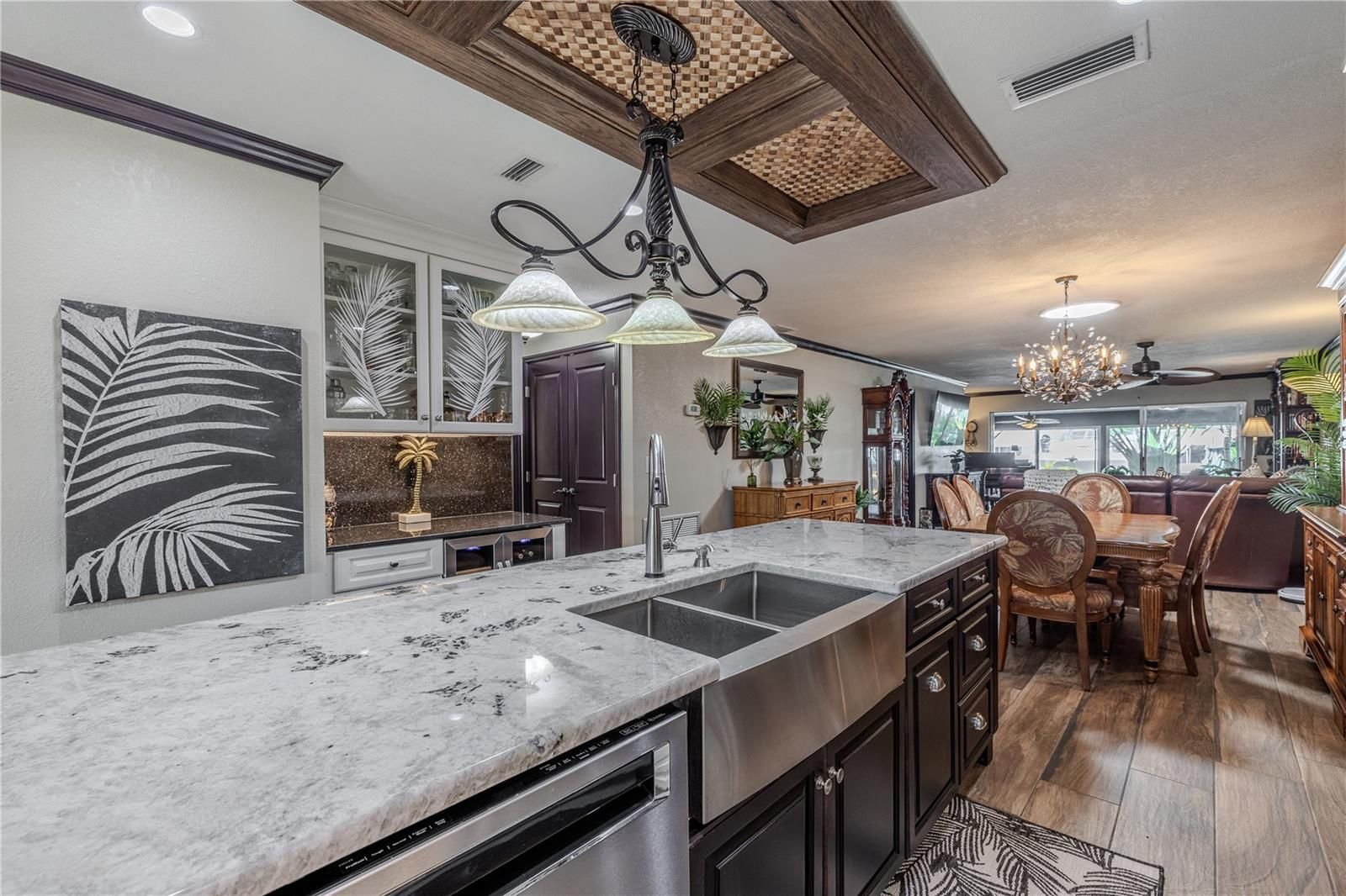 - Built-In Oven, Dishwasher, Disposal, Microwave, Range, Range Hood, Refrigerator, Wine Refrigerator
