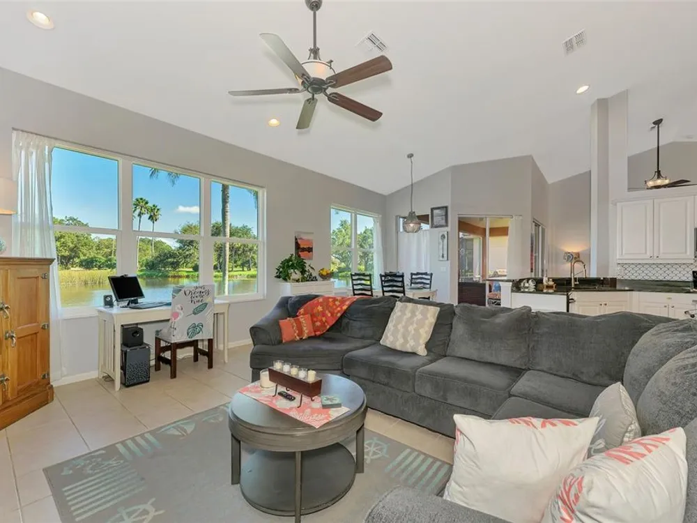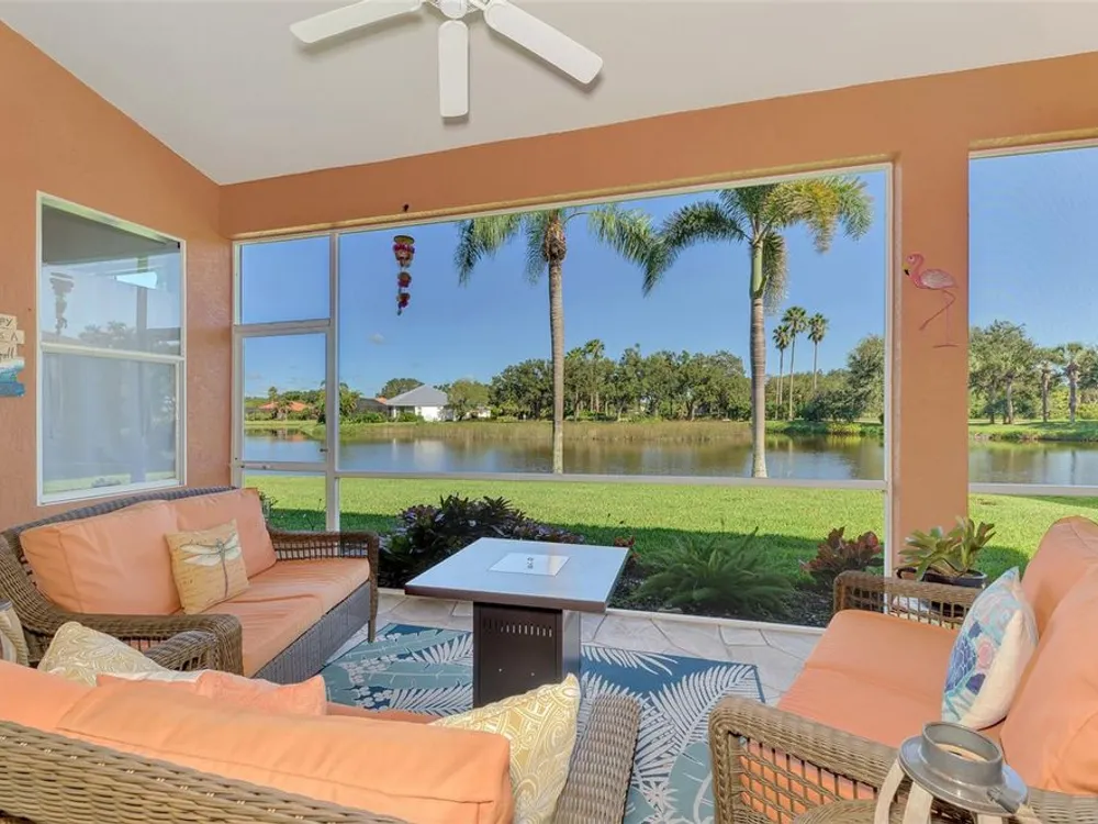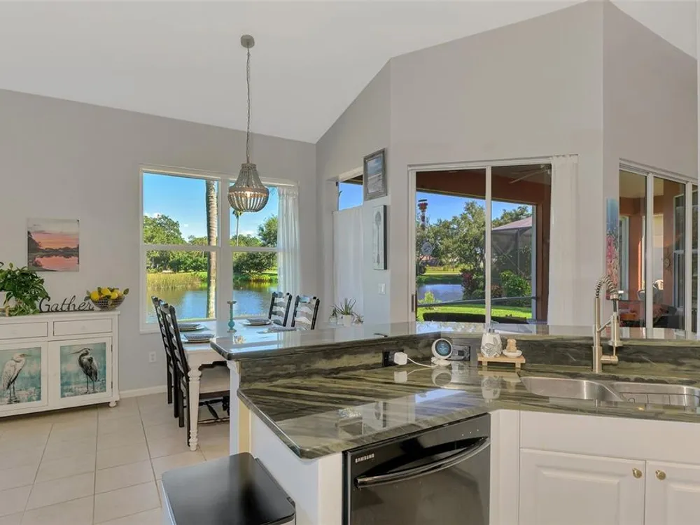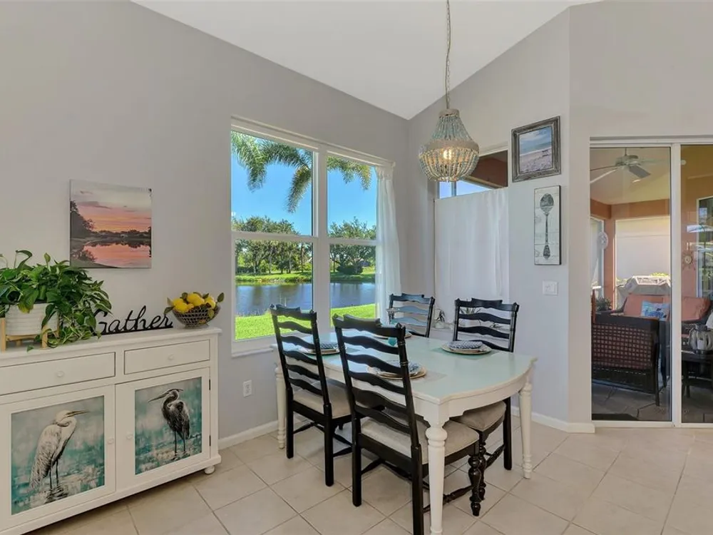 RARE COASTAL GEM! Enjoy a "one-of-a-kind" view, breathtaking Florida sunsets, and cheerful natural light throughout this inviting, spacious 3-Bedroom, 2-Bath Bay Ridge Neighborhood Home in Riverwood located a short distance to the Community Resort Style Pool and Amenities. Added Bonus: a highly coveted Riverwood Private Beach Club membership on Manasota Key is transferable with the home purchase. Attractive curb appeal greets you with a decorative engraved driveway, lanai, graceful front arches and a side-entry garage, all set on a beautiful premium lot with scenic water views. The desirable open floor plan with high-volume ceilings showcases numerous interior and exterior upgrades, including a new 2023 tile roof, updates to the kitchen and bathrooms, impact windows at the rear of the home, rainforest-bamboo–style granite kitchen countertops, updated flooring in the Great Room and Primary Bedroom, freshly painted interior, and so much more! Beach Club membership and some furnishings are available—ask the agent for details. In addition to owning this spectacular home, residents enjoy Riverwood’s lush tree-lined streets, a renovated activity center with a variety of social events, a sparkling lap pool and resort-style pool, plus a state-of-the-art fitness center and an array of tennis, pickleball, and bocce courts, croquet, and both small and large dog parks. Riverwood is an Audubon Green Community Award winner, celebrated for preserving Florida's wildlife habitats. Optional amenities include the Riverwood Golf Club with its par-72 championship course and a private Beach Club on Manasota Key. Ideally located between Sarasota and Fort Myers on Florida’s West Coast, this home is close to boating, cultural events, dining, shopping, and the stunning beaches of Southwest Florida. ACT FAST! Don’t let this magnificent home slip away. Schedule a showing today and experience a level of luxury and serenity that is simply unmatched.