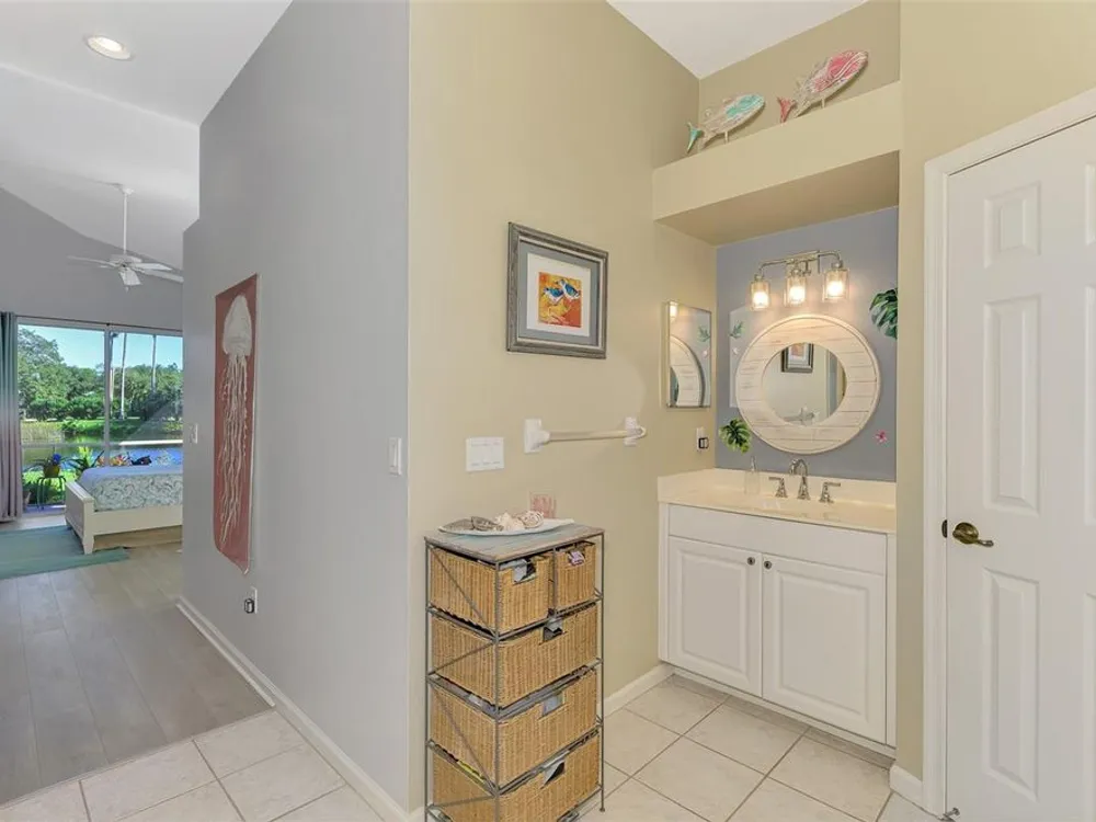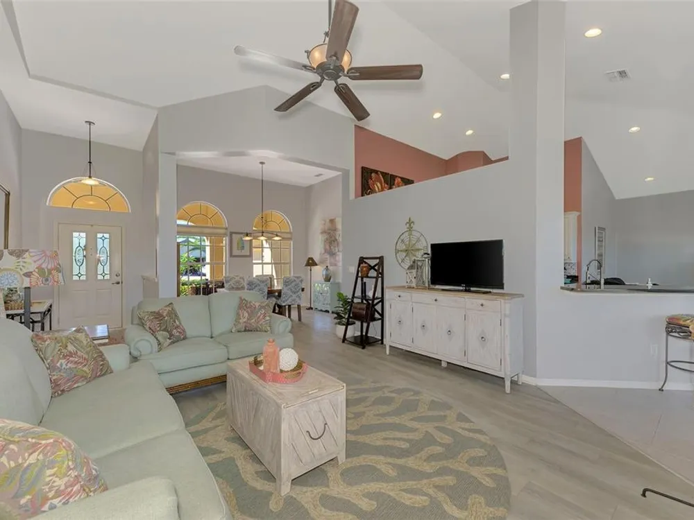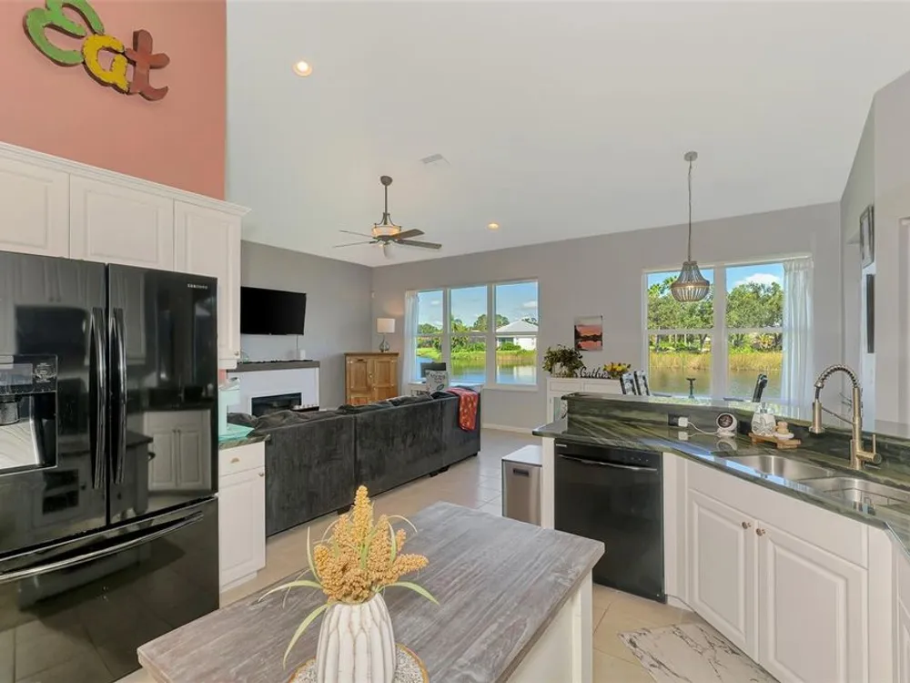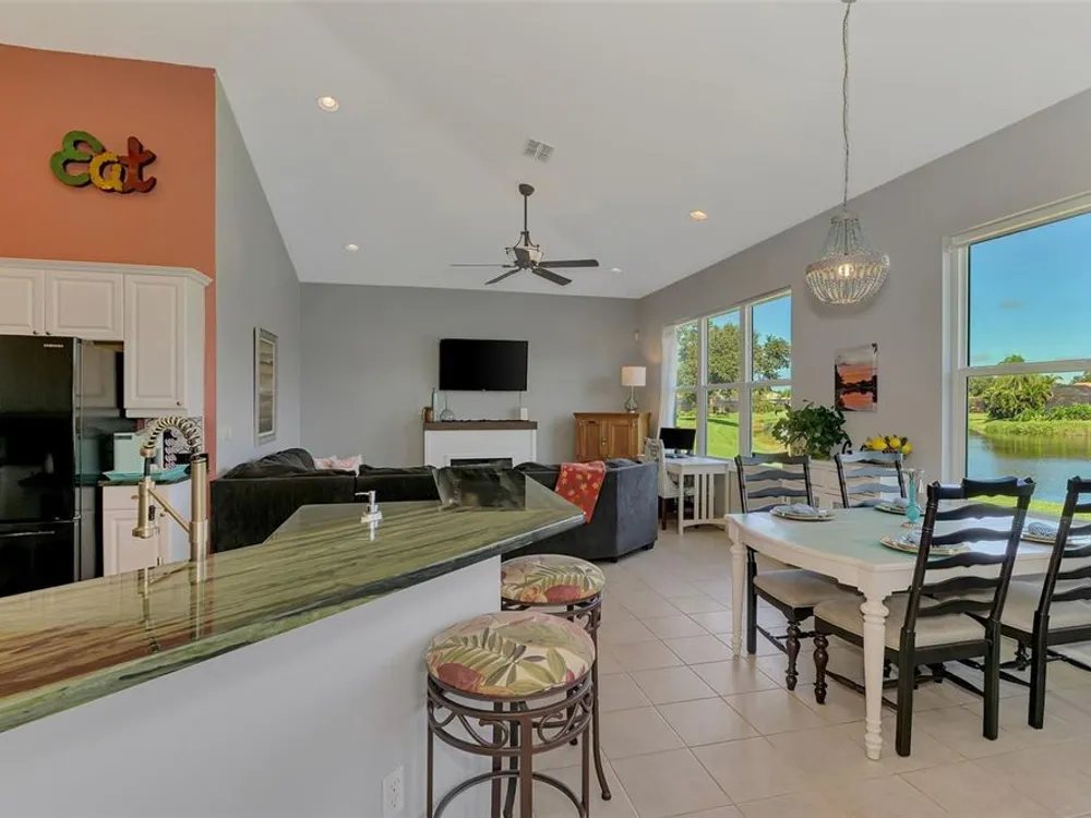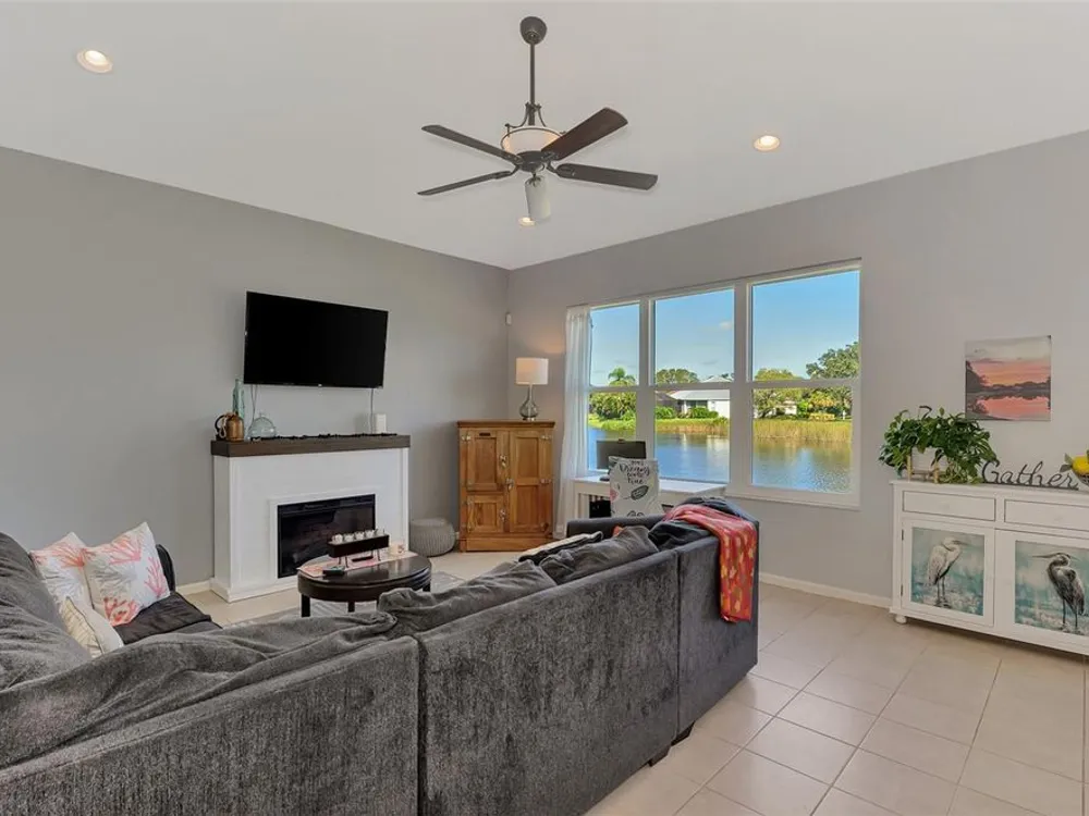 RARE COASTAL GEM! Enjoy a "one-of-a-kind" view, breathtaking Florida sunsets, and cheerful natural light throughout this inviting, spacious 3-Bedroom, 2-Bath Bay Ridge Neighborhood Home in Riverwood located a short distance to the Community Resort Style Pool and Amenities. Added Bonus: a highly coveted Riverwood Private Beach Club membership on Manasota Key is transferable with the home purchase. Attractive curb appeal greets you with a decorative engraved driveway, lanai, graceful front arches and a side-entry garage, all set on a beautiful premium lot with scenic water views. The desirable open floor plan with high-volume ceilings showcases numerous interior and exterior upgrades, including a new 2023 tile roof, updates to the kitchen and bathrooms, impact windows at the rear of the home, rainforest-bamboo–style granite kitchen countertops, updated flooring in the Great Room and Primary Bedroom, freshly painted interior, and so much more! Beach Club membership and some furnishings are available—ask the agent for details. In addition to owning this spectacular home, residents enjoy Riverwood’s lush tree-lined streets, a renovated activity center with a variety of social events, a sparkling lap pool and resort-style pool, plus a state-of-the-art fitness center and an array of tennis, pickleball, and bocce courts, croquet, and both small and large dog parks. Riverwood is an Audubon Green Community Award winner, celebrated for preserving Florida's wildlife habitats. Optional amenities include the Riverwood Golf Club with its par-72 championship course and a private Beach Club on Manasota Key. Ideally located between Sarasota and Fort Myers on Florida’s West Coast, this home is close to boating, cultural events, dining, shopping, and the stunning beaches of Southwest Florida. ACT FAST! Don’t let this magnificent home slip away. Schedule a showing today and experience a level of luxury and serenity that is simply unmatched.