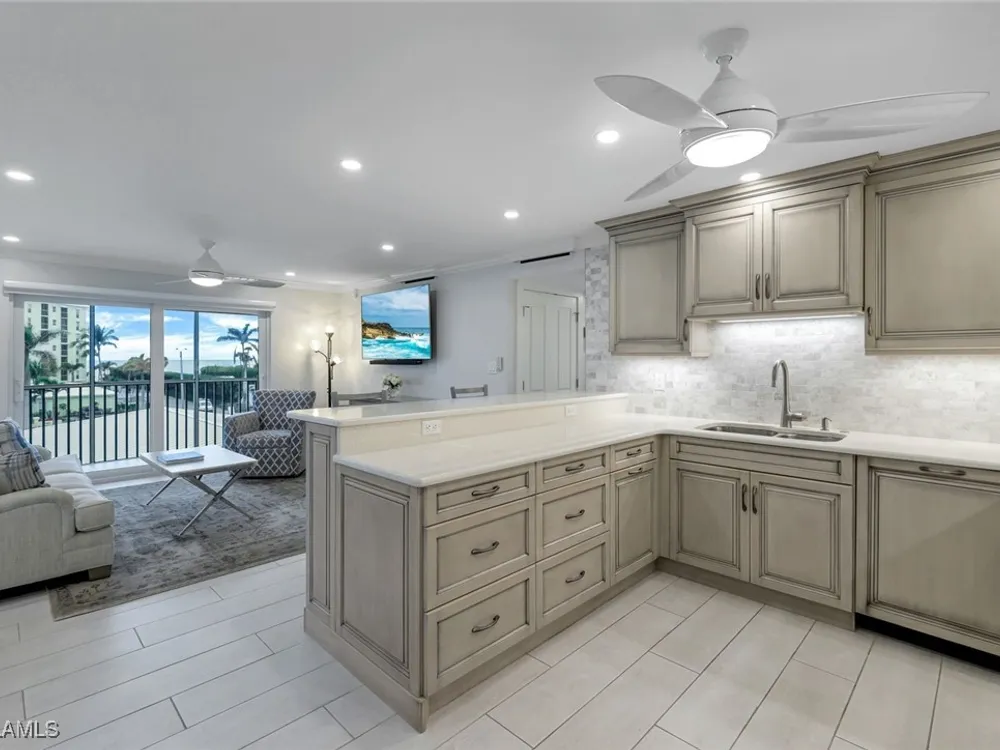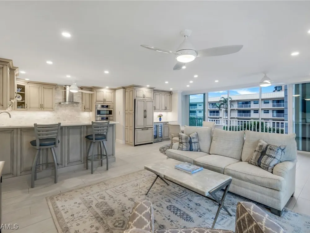 You want an updated condo that is "move-in-ready" with partial gulf & bay water views, well, here it is. Fully renovated & turnkey furnished, this 2-bed, 2-bath, 3rd floor condo w/common elevator, has 2 open-air lanai's (W & NW), impact windows, doors & sliders, remote shades in select living areas, in-unit laundry, Bosch & Kitchen-Aid appliances, tile flooring throughout & deeded covered parking space. Views, beach access directly across the street, on-premise amenities, beautiful grounds, a Gulf Shore Blvd. N. location & a short walk, bike ride or drive to all that Venetian Village has to offer. Be in the heart of it all, at a pace that you set. La Maison Club amenities include a large community pool with Moorings Bay as your backdrop, outdoor grills w/social area, community room, fitness center, guest suite & kayak storage w/launch point. On occasion, you may find a boat slip for sale or for lease within the La Maison Club community itself. Your piece of Paradise awaits you!!