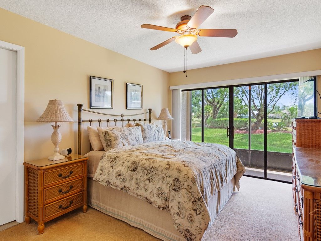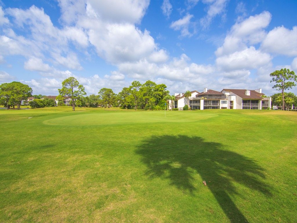 Beautifully maintained first floor 2/2 condo w/ fantastic views in a premier golf course community with large lots and tree lined boulevards. This charming condo features an open, spilt floor plan creating 2 private master suites. Spacious living area with upgraded kitchen and bathrooms. Optional Private Garage and Golf Course Membership available. Gated with guard and security patrol, Clubhouse with café/restaurant, fitness center, and library, Golf course, pickle ball & tennis courts, and pool.