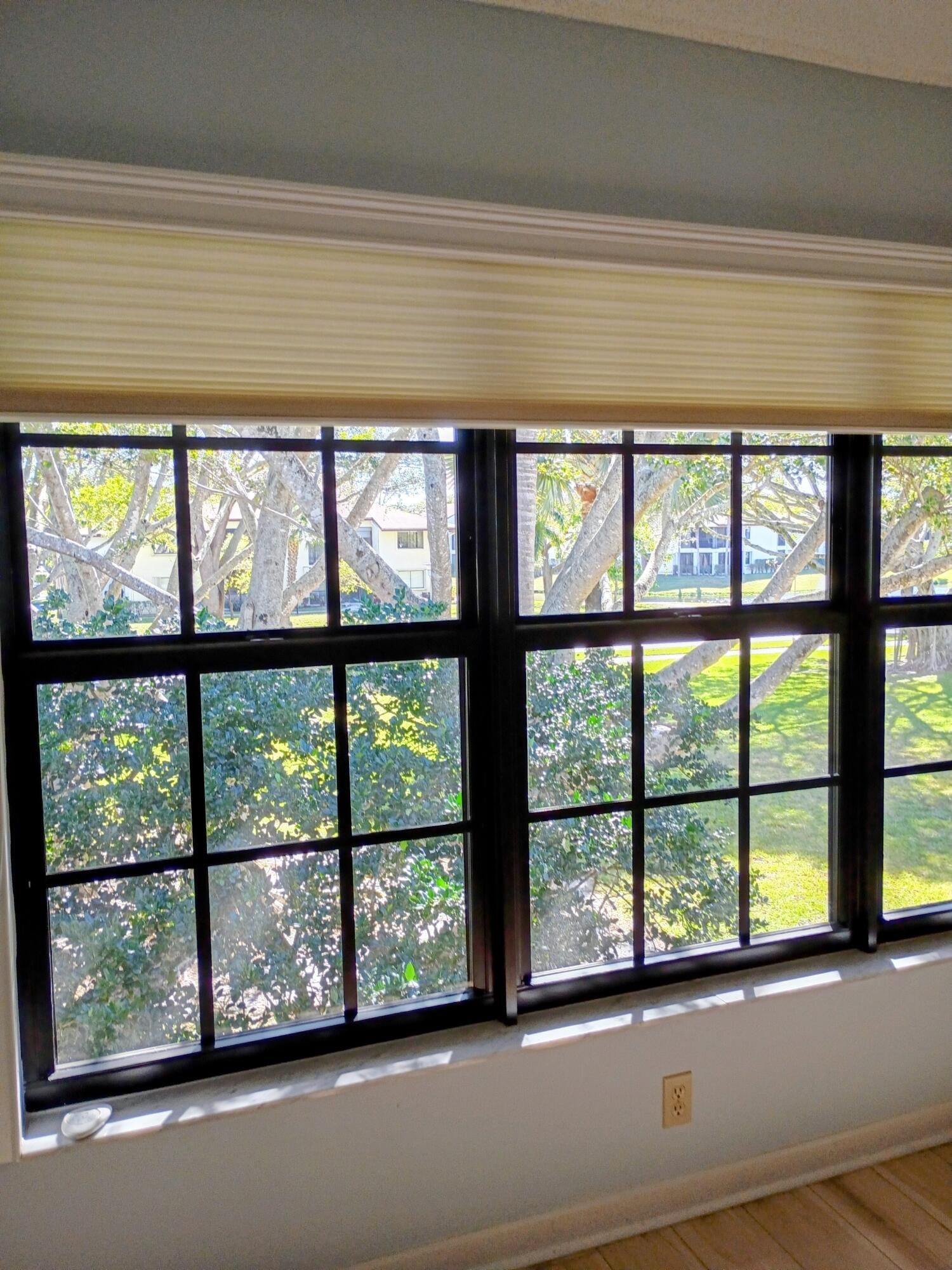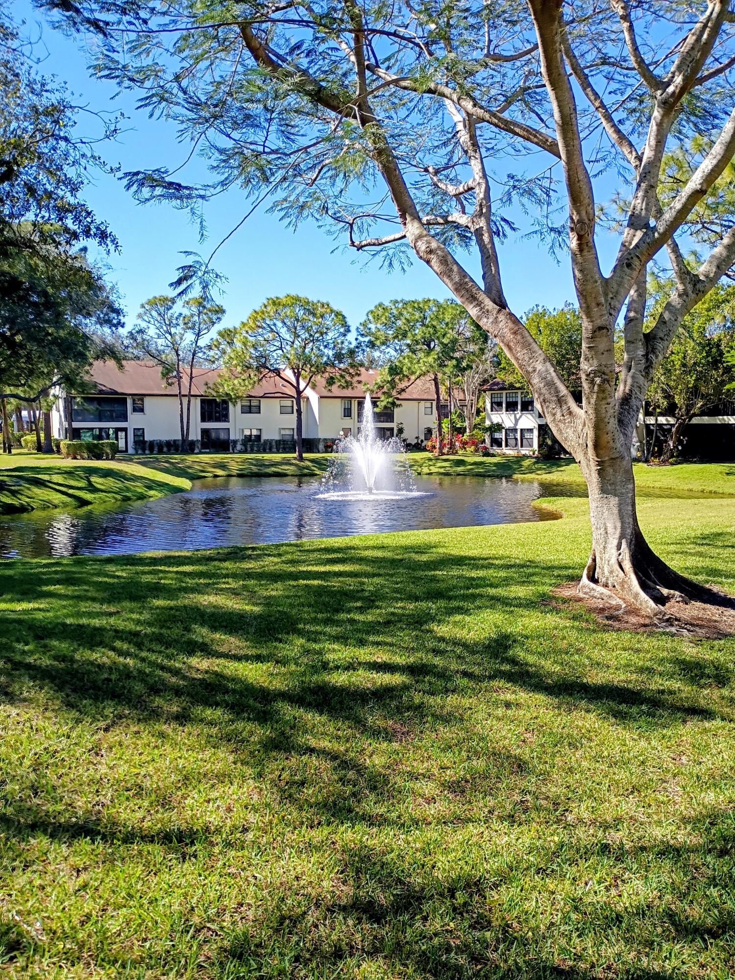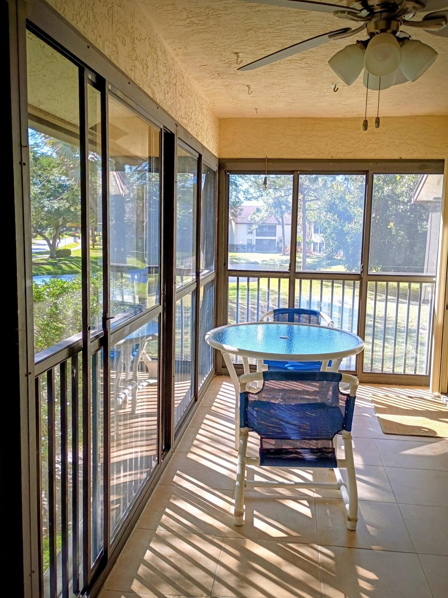 Beautifully updated and bright with a great water view! Cathedral ceilings give this condo a spacious and airy feeling. The kitchen is wonderfully done with granite counter tops, stainless steel appliances, loads of custom wood cabinetry, new cooktop, uplighting and sliding glass doors leading to porch. Porch is fully screened with vinyl sliders and tile flooring. There are impact windows in the living room with electric Hunter Douglas shades, accordian shutters protect the remaining windows, ceiling fans throughout. Luxury vinyl plank flooring was installed 2 years ago in the main living areas plus 1bedroom which can also be used as an office and brand new carpet in two of the bedrooms. The master bedroom has double sinks with corian tops, walk-in closet and walk-in shower. Guest bathroom has custom sink with combination tub and shower. There is a community clubhouse with pool, shuffleboard, billiards, tennis courts, fitness center and more. This condo is sure to please!