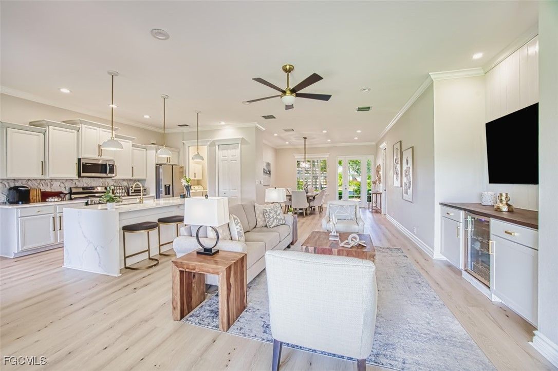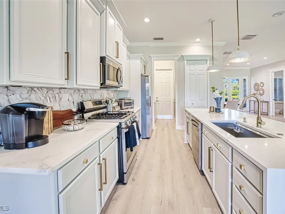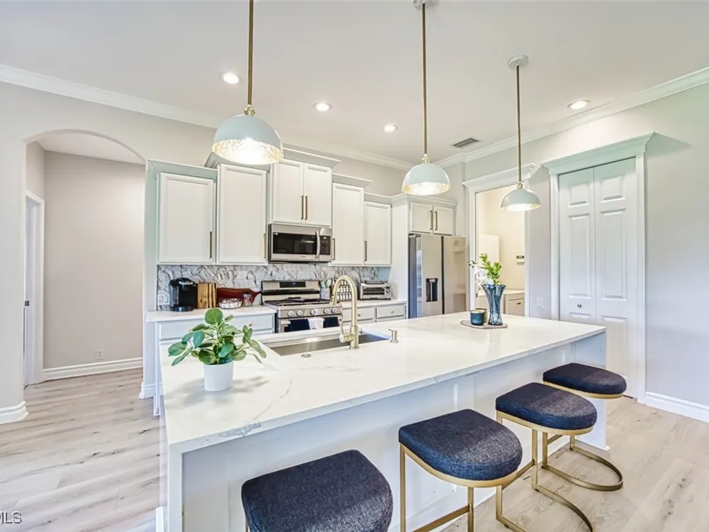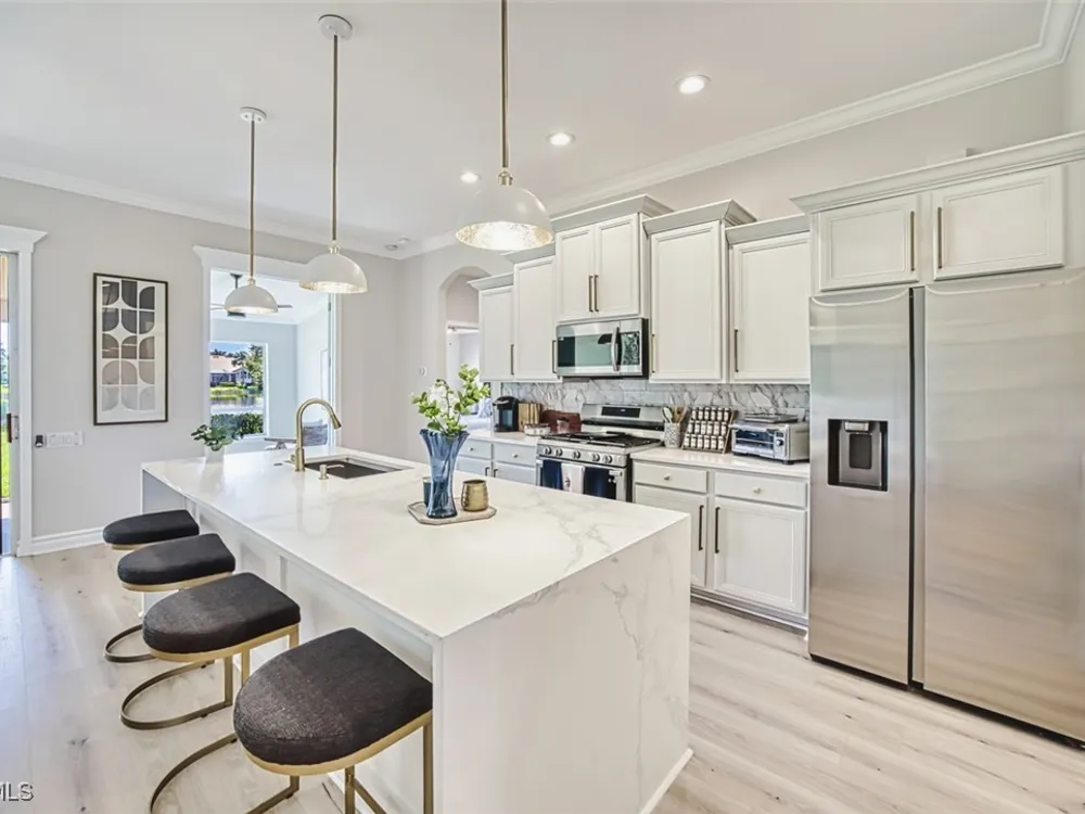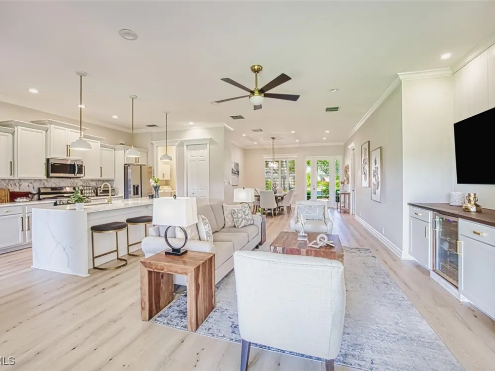 REDUCED PRICE - Lakefront Arthur Rutenberg home on large lot in prestigious Verandah. 4 bedrooms + a sitting room/office/breakfast nook. 3 full baths, including a custom ensuite bath for guests. Completely renovated from top to bottom - new flooring, chef’s kitchen with new stainless-steel appliances, waterfall quartz countertops, freestanding bar area with wine fridge, crown molding, plantation shutters, and natural gas. Professionally decorated and turnkey. U-shaped driveway (plenty of parking) and an open-air lanai with stunning lake view and tons of room for pool/spa on one of the most sough-after streets in the community. Amenities: 36 holes of golf, tennis, pickleball, fitness center, bocce, kayaking, dog park, playground, restaurants, and full social calendar. Act fast opportunities like this don’t last!