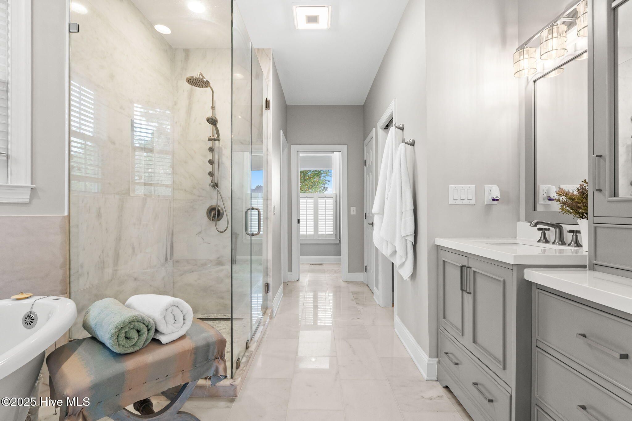 - Bookcases, Vaulted Ceiling(s), Walk-In Closet(s), Walk-in Shower, Entrance Foyer, Master Downstairs, High Ceilings, Gas Log, Ceiling Fan(s)