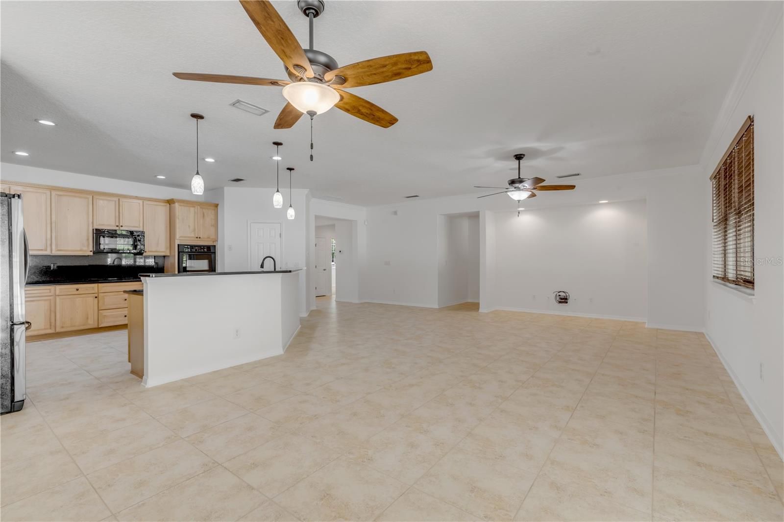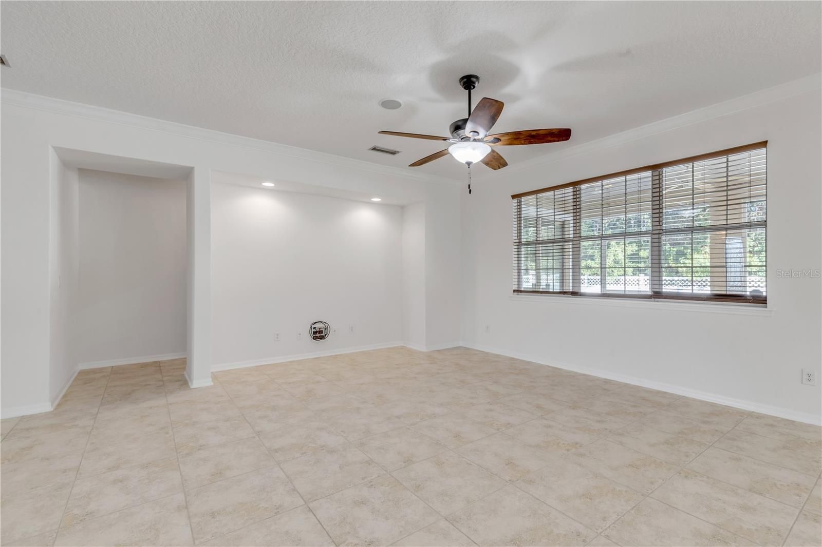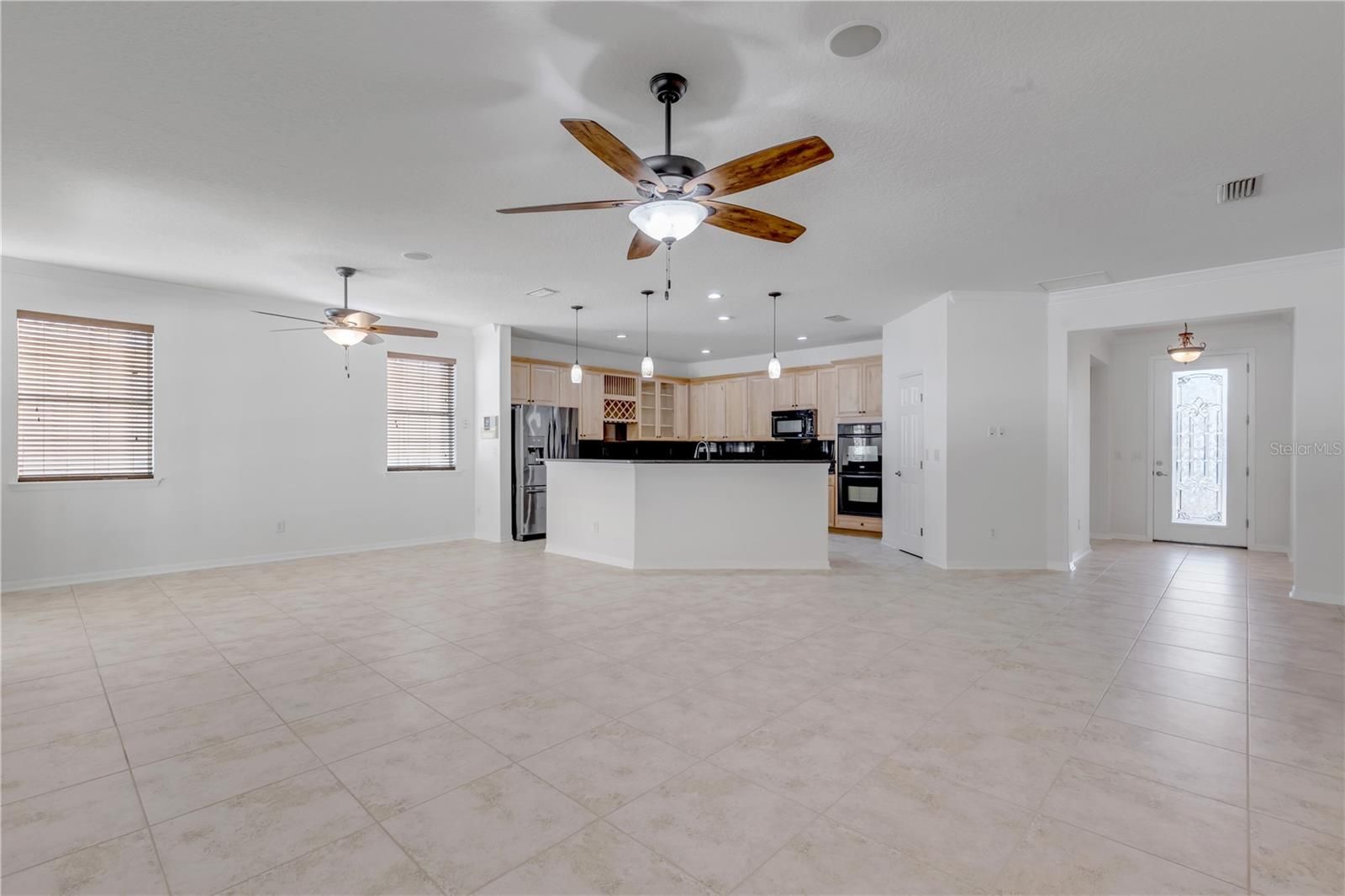 - Ceiling Fan(s), Crown Molding, High Ceilings, Kitchen/Family Room Combo, Living/Dining Room, Open Floorplan, Main Level Primary, Window Treatments