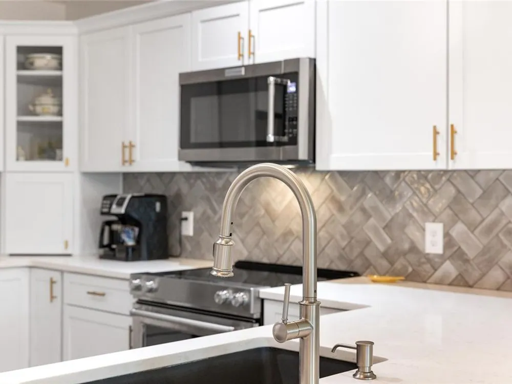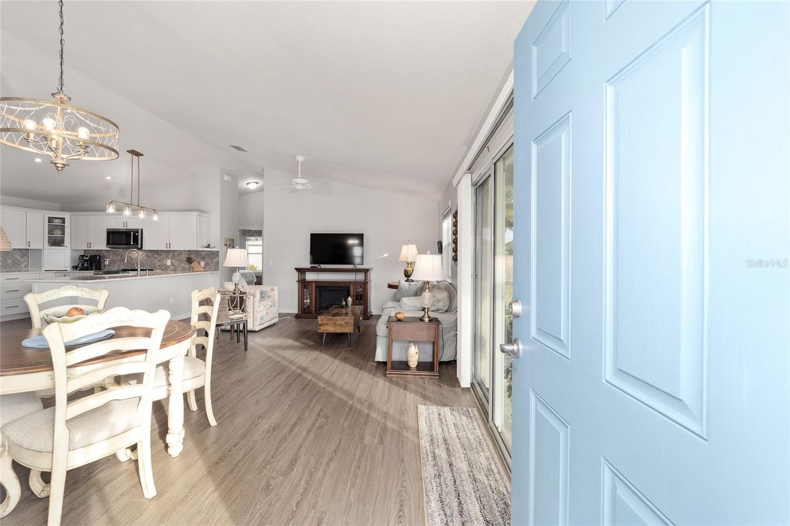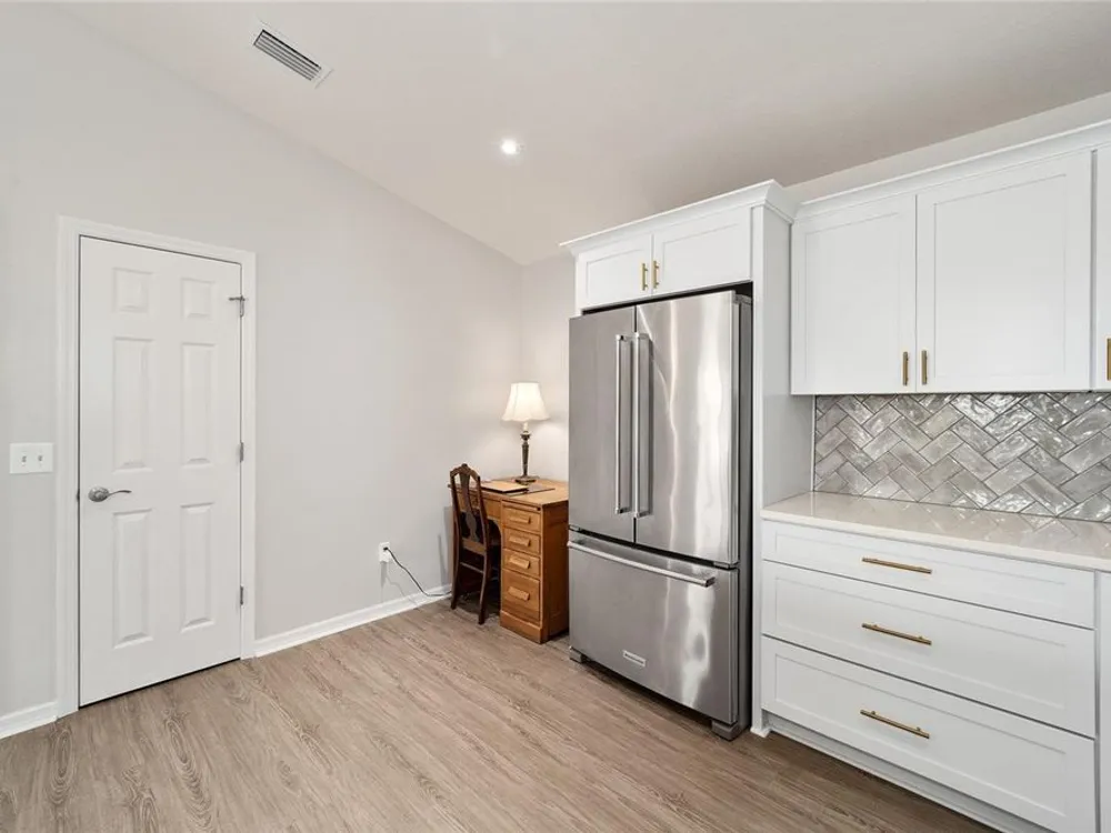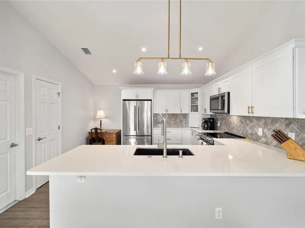The Village of Collier – Carrabelle Villas – All Electric Colony Patio Villa with Vaulted Ceilings, Luxury Vinyl Plank, Ceiling Fans and Upgraded Lighting – CORNER LOT with ROOM FOR A POOL!! – Expanded Front Patio with a Covered Porch and Side Screened Lanai with NEWLY PAINTED FLOOR!! ** The Kitchen was Remodeled & Upgraded in 2022!! Stainless Steel Appliances (KitchenAid Refrigerator, Range, Microwave 2022), White Shaker Style Cabinets with Crown Molding, Soft Close, Pot Drawers, Upgraded Pulls, Corner Lazy Susan Cabinet, Corner Appliance Barn & Glass Front Display Cabinet, Upgraded Chandelier Light Over Kitchen Sink, Quartz Countertop (Breakfast Bar at Same Level), Tile Backsplash in Herringbone Pattern, Large Granite Composite Sink with Gooseneck Faucet, Mounted Sprayer & Mounted Push Button for Disposal, Closet Pantry with Mounted Rack on Door. NEW PLANTATION SHUTTERS in the Dining Room & Living Room!! -- 2 Bedrooms both with Ceiling Fans, Carpet, Windows and Vaulted Ceilings. Primary Bedroom with a Walk-in Closet -- Primary Bath with Vaulted Ceiling, Recessed Light, Sconce Lighting, Exhaust Fan, Single Vanity with Laminate Top, Medicine Cabinet, All in One Step-in Shower with Grab Bar & Handheld Showerhead -- Guest Bath with Vaulted Ceiling, Recessed Light, Sconce Lighting, Single Vanity with Laminate Top, Tub/Shower Combo All-in-one, Exhaust Fan -- Garage with LG Top-Load Washer & LG Electric Dryer, NEWLY PAINTED FLOOR, Utility Sink, Attic Access and HVAC/Water Heater Closet - - Tastefully Remodeled and in a GREAT LOCATION!! Don’t miss this GEM of a home!!