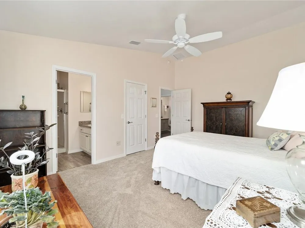 - Ceiling Fan(s), Open Floorplan, Main Level Primary, Stone Counters, Thermostat, Vaulted Ceiling(s), Walk-In Closet(s), Window Treatments