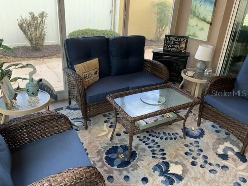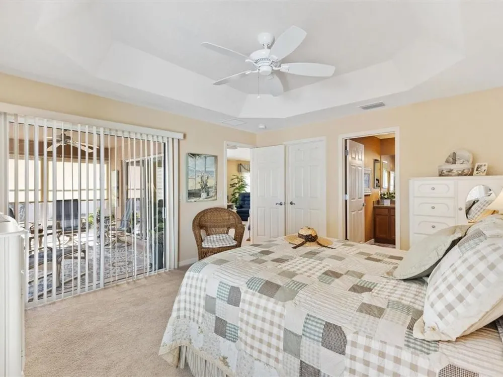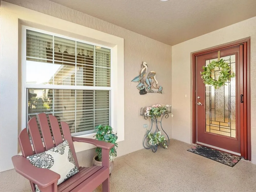 Beautiful turn-key ( personal items excluded ) Courtyard Villa. Move in ready! Highly sought after Marianna Villas in The Village of Collier. Close to Brownwood Town Square with shopping, restaurants and nightly entertainment. Walk up the epoxy driveway to the cozy front porch. Enter through the upgraded leaded glass front door w/sliding screen for cooler nights. Notice the large kitchen with stainless steel appliances. Large counter top with barstools for extra seating.Kitchen dining room area with sliding glass door wall lets in plenty of natural lighting. High ceilings adds an open airy feeling throughout. Large primary bedroom en-suite bathroom with walk in closet, eye catching tray ceiling. A door-wall leads to the upgraded ( 2025 ) glass enclosure lanai with UV extra fine screening plus tinted glass windows adding extra value and living area to enjoy. Convenient Split floor plan is great for privacy when guests visit with two guest bedrooms and guest bathroom separated from the primary bedroom. Indoor laundry with utility sink are a big plus. New Water filtration system to be installed. Garage has epoxy floors. Start your Villages lifestyle. Very social neighborhood with a men’s golf league, mixed golfing, women’s golf get togethers every week plus Thirsty Thursdays every other week. Lots of fun and new friends to meet! Call for a private showing.
