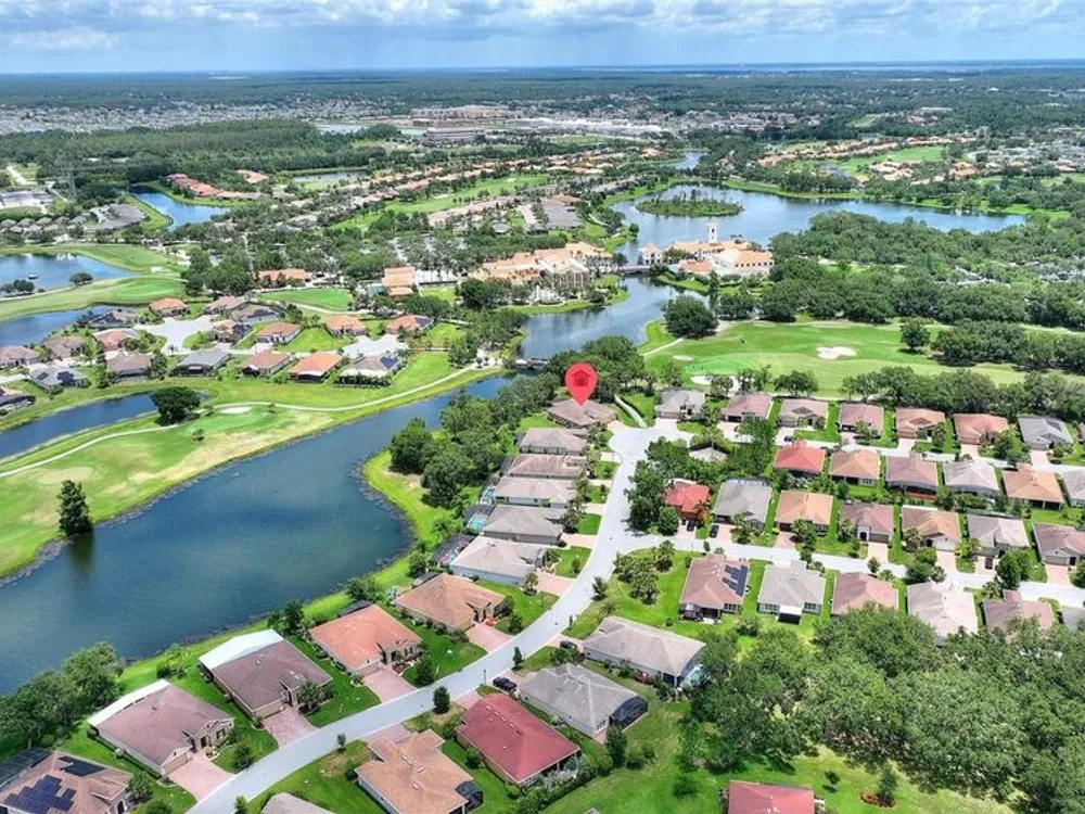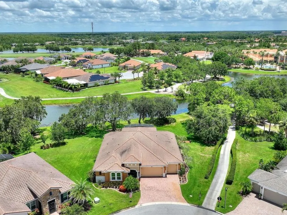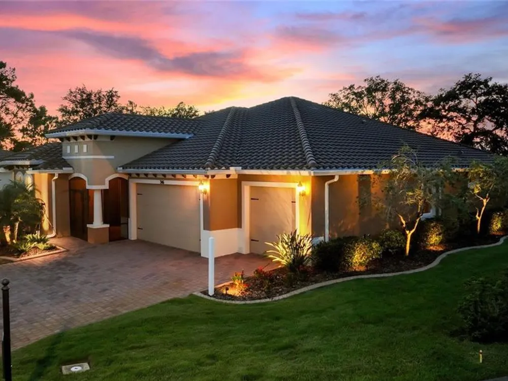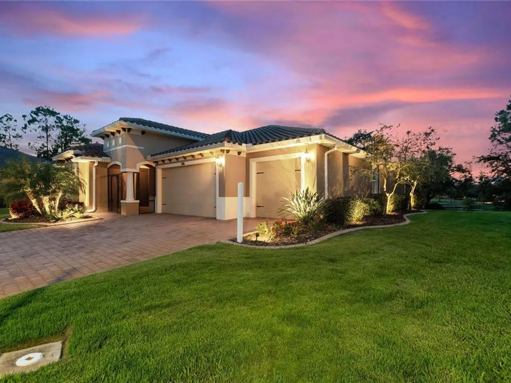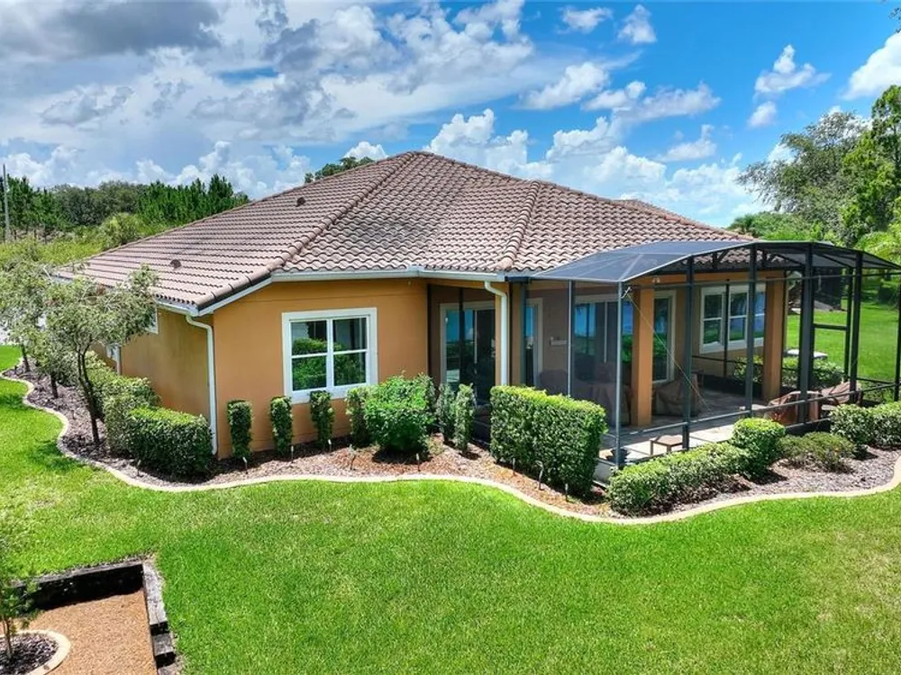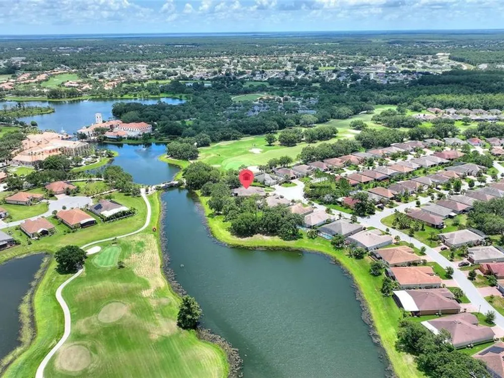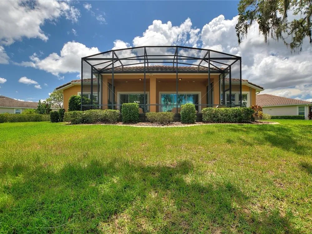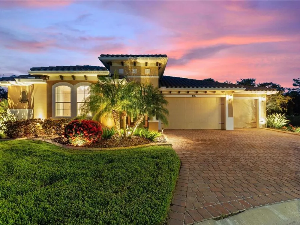 Discover luxury living in Solivita at 346 Treviso Drive with this rarely available MARSALA model, featuring a PRIVATE MULTI-GEN SUITE and sweeping WATER & GOLF VIEWS on a spacious pie-shaped lot. This unique home provides the ultimate private WORK-FROM-HOME option, in-law arrangement, or spacious retreat for family and friends! Find breathtaking views in every direction and the charming Solivita village, a short walk away. Step inside a large welcoming foyer and find thoughtful upgrades throughout; from a leaded glass entry door to 8-foot interior doors and custom trim work; every detail meticulously considered. The great room impresses with twin 12’ triple sliders with views to the water, creating a seamless indoor-outdoor experience into a large lanai featuring travertine flooring and recessed lighting. The home is open plan, the kitchen displays upgraded cabinetry, premium hardware, a striking backsplash, and a custom glass pantry entry—a perfect mix of style and practicality. Retreat to the deluxe over-sized owner’s suite, and a spa-inspired bathroom including a step-in hydro tub and separate shower, dual sinks, a water closet, and a spacious walk-in closet that has a convenient with direct access to the well-designed laundry room. The rest of the main home includes a well-sized guest bedroom with walk-in closet, a full bath with a transom window, and an adjacent double-door den/flex space with large windows. The STANDOUT FEATURE that makes this luxurious home unique is the fully functional private suite with southern exposure, with separate portico entry, a cozy living room, a galley-style kitchenette, well-appointed bath complete with a shower, double vanity sink, walk-in closet, and bedroom. This separate space offers comfort and privacy, making it perfect for hosting family or friends. Additional practical luxuries include dual AC controllers, a Propane Tankless Hot-Water Heater switchable to the standard electric hot water heater, and a Pentair whole-house cartridge water filtration system, a hardwired security system, a handy drop zone at the garage entry, and propane Automatic Whole-House Generator for peace of mind. The spacious 3-car garage features a new epoxy coating with decorative chips, Saf-T-Racking for storage. Other items upgrade exterior landscaping with border curbing and extensive nighttime lighting, full tile roof, and fresh exterior paint, rounding out this amazing package. Don’t let the opportunity slip by to own this incredible property; schedule your private tour of 346 Treviso today and start living your Florida dream. **PLEASE SEE THE 3D MATTERPORT TOUR** Make the award-winning Active 55+ Community of Solivita your new home today. Featuring 14 Pools, 2 Championship 18 Hole Golf Courses, Tennis, Pickleball, basketball, softball, over 240 clubs, spa services, state-of-the-art exercise facilities on 4,200 acres of conservation. Take your golf cart for a spin to dine and share a cocktail with friends; or to enjoy the many activities that Solivita COMMUNITY enjoys. The HOA includes landscaping, irrigation AND high-speed fiber TV and Internet. HCA Florida Poinciana Hospital is directly across the street along with the new Poinciana Lakes Plaza, with lots of shopping and restaurants.