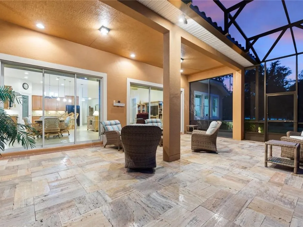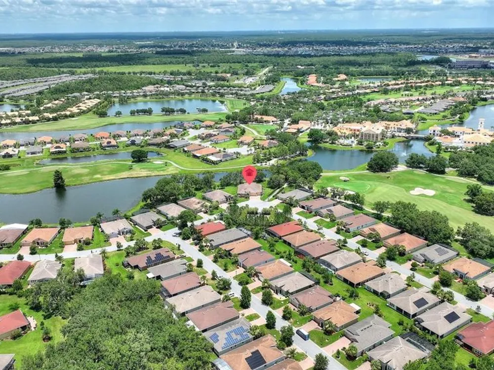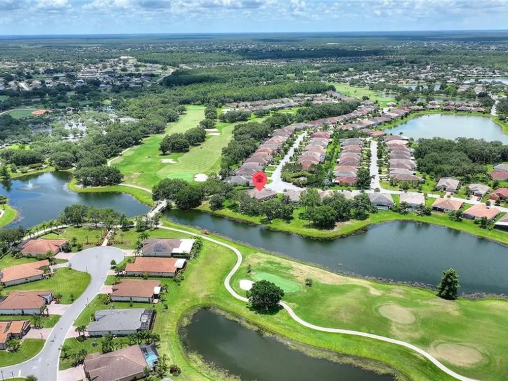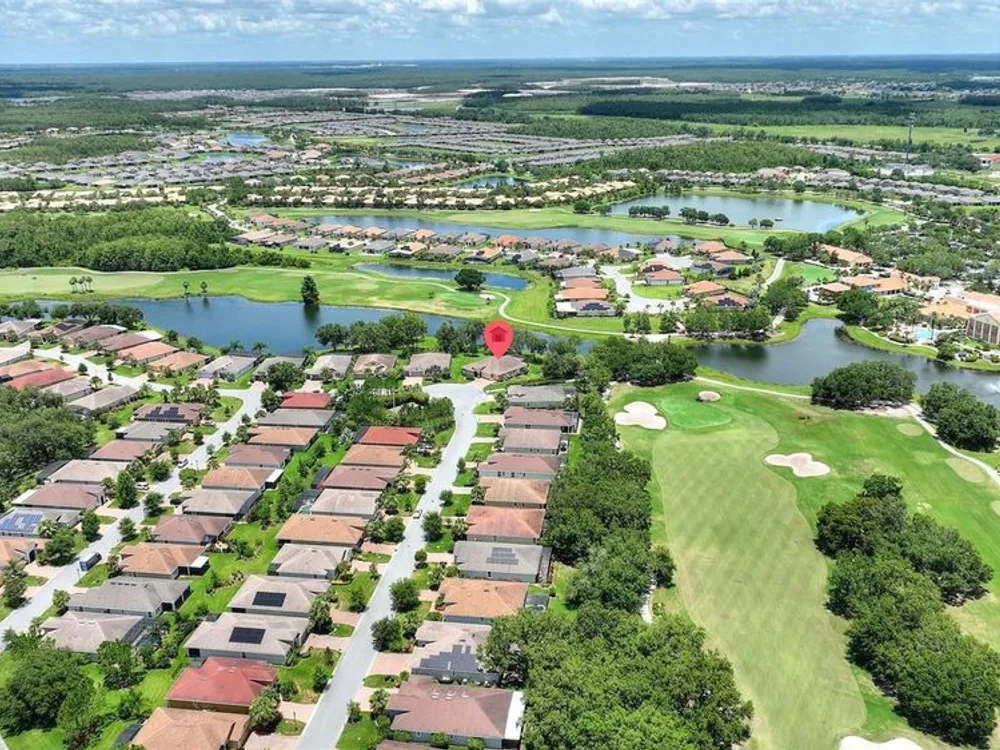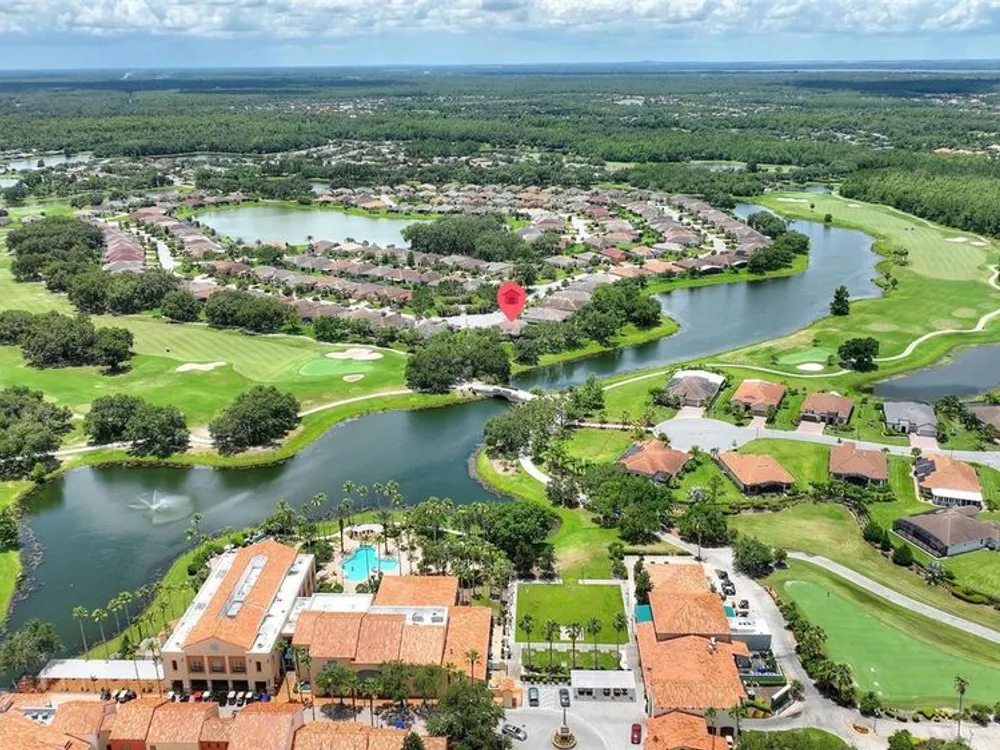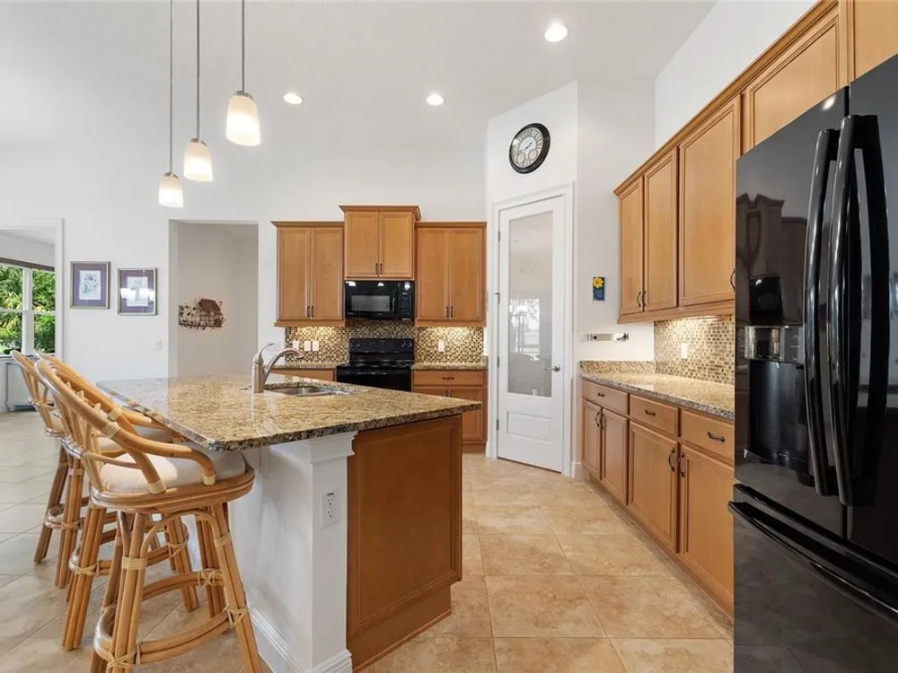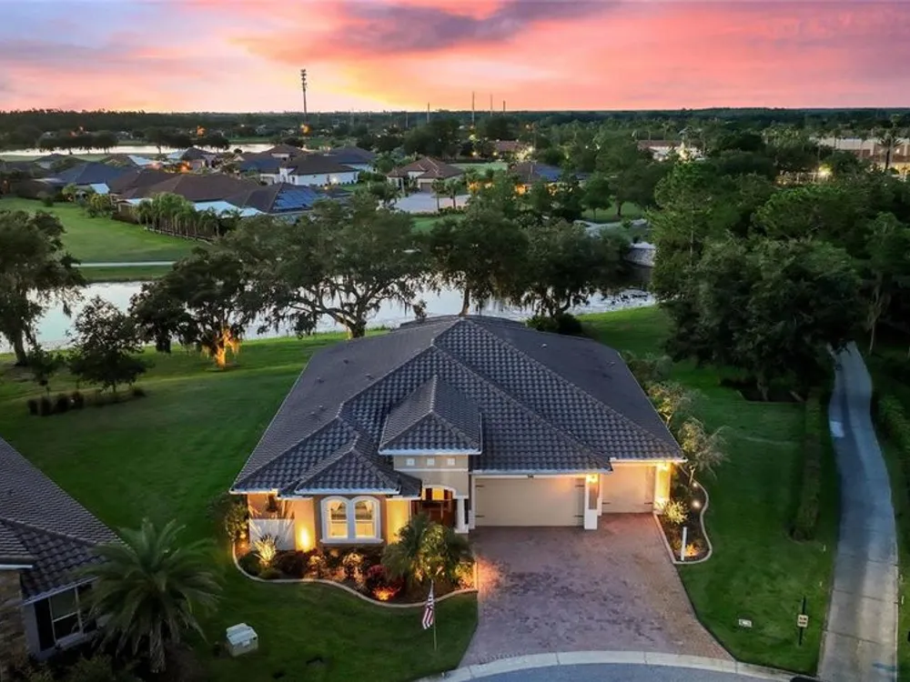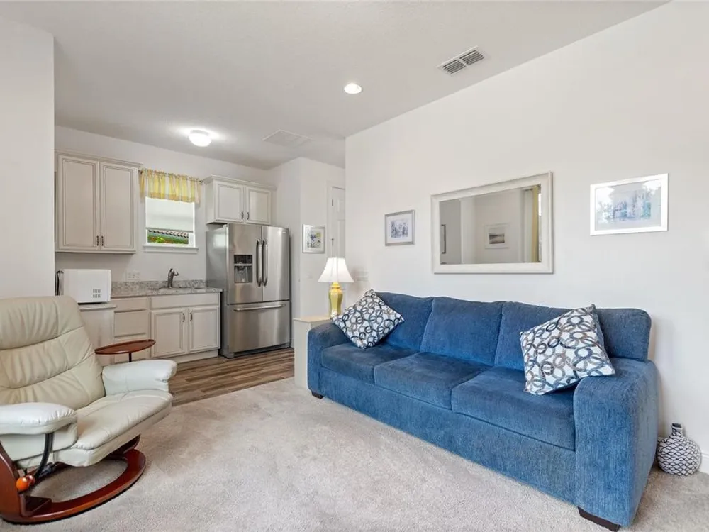 Discover luxury living in Solivita at 346 Treviso Drive with this rarely available MARSALA model, featuring a PRIVATE MULTI-GEN SUITE and sweeping WATER & GOLF VIEWS on a spacious pie-shaped lot. This unique home provides the ultimate private WORK-FROM-HOME option, in-law arrangement, or spacious retreat for family and friends! Find breathtaking views in every direction and the charming Solivita village, a short walk away. Step inside a large welcoming foyer and find thoughtful upgrades throughout; from a leaded glass entry door to 8-foot interior doors and custom trim work; every detail meticulously considered. The great room impresses with twin 12’ triple sliders with views to the water, creating a seamless indoor-outdoor experience into a large lanai featuring travertine flooring and recessed lighting. The home is open plan, the kitchen displays upgraded cabinetry, premium hardware, a striking backsplash, and a custom glass pantry entry—a perfect mix of style and practicality. Retreat to the deluxe over-sized owner’s suite, and a spa-inspired bathroom including a step-in hydro tub and separate shower, dual sinks, a water closet, and a spacious walk-in closet that has a convenient with direct access to the well-designed laundry room. The rest of the main home includes a well-sized guest bedroom with walk-in closet, a full bath with a transom window, and an adjacent double-door den/flex space with large windows. The STANDOUT FEATURE that makes this luxurious home unique is the fully functional private suite with southern exposure, with separate portico entry, a cozy living room, a galley-style kitchenette, well-appointed bath complete with a shower, double vanity sink, walk-in closet, and bedroom. This separate space offers comfort and privacy, making it perfect for hosting family or friends. Additional practical luxuries include dual AC controllers, a Propane Tankless Hot-Water Heater switchable to the standard electric hot water heater, and a Pentair whole-house cartridge water filtration system, a hardwired security system, a handy drop zone at the garage entry, and propane Automatic Whole-House Generator for peace of mind. The spacious 3-car garage features a new epoxy coating with decorative chips, Saf-T-Racking for storage. Other items upgrade exterior landscaping with border curbing and extensive nighttime lighting, full tile roof, and fresh exterior paint, rounding out this amazing package. Don’t let the opportunity slip by to own this incredible property; schedule your private tour of 346 Treviso today and start living your Florida dream. **PLEASE SEE THE 3D MATTERPORT TOUR** Make the award-winning Active 55+ Community of Solivita your new home today. Featuring 14 Pools, 2 Championship 18 Hole Golf Courses, Tennis, Pickleball, basketball, softball, over 240 clubs, spa services, state-of-the-art exercise facilities on 4,200 acres of conservation. Take your golf cart for a spin to dine and share a cocktail with friends; or to enjoy the many activities that Solivita COMMUNITY enjoys. The HOA includes landscaping, irrigation AND high-speed fiber TV and Internet. HCA Florida Poinciana Hospital is directly across the street along with the new Poinciana Lakes Plaza, with lots of shopping and restaurants.