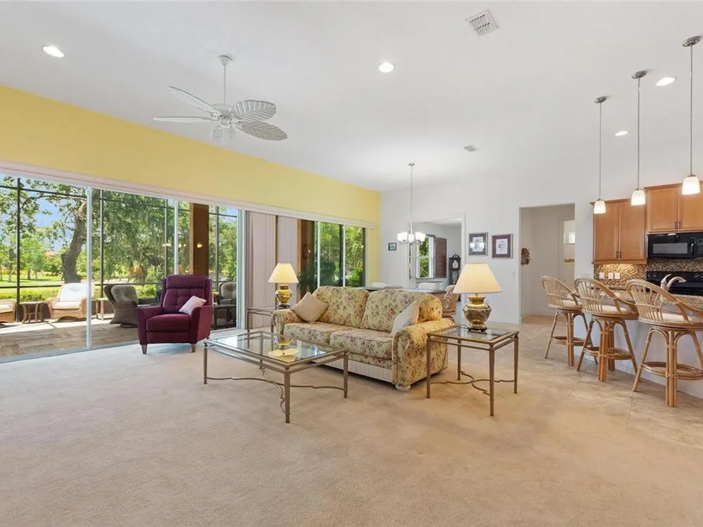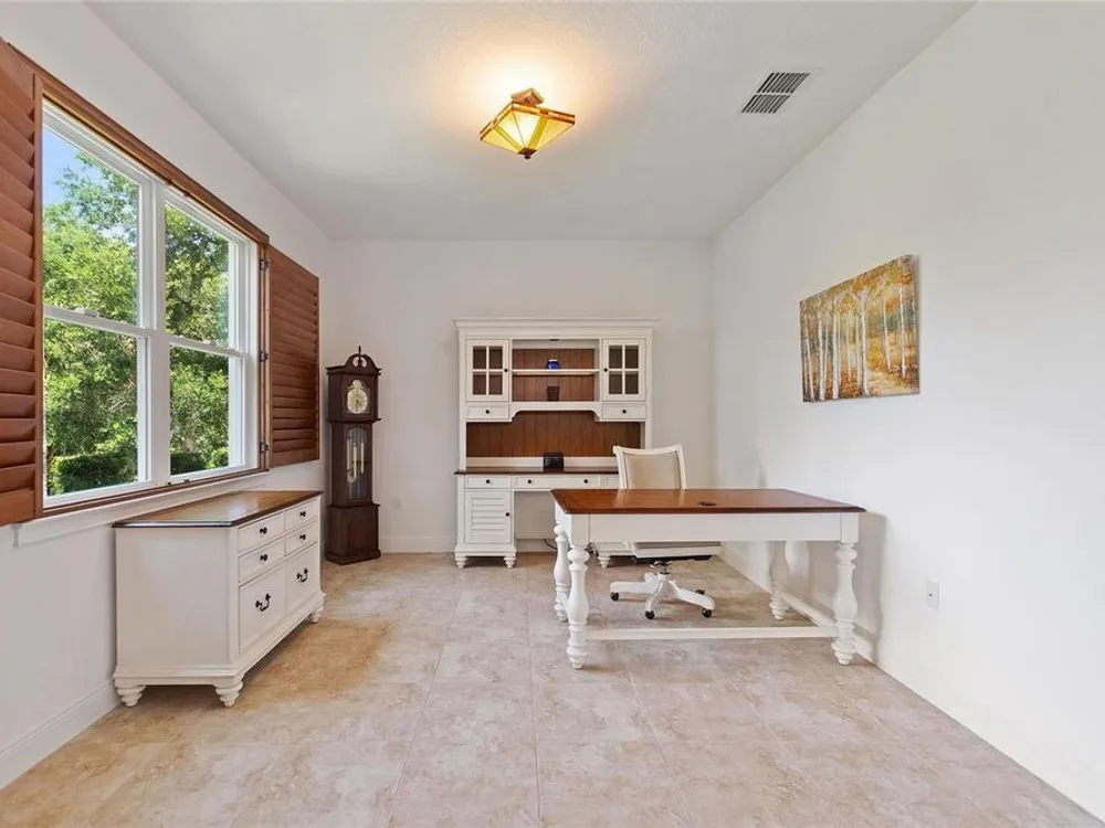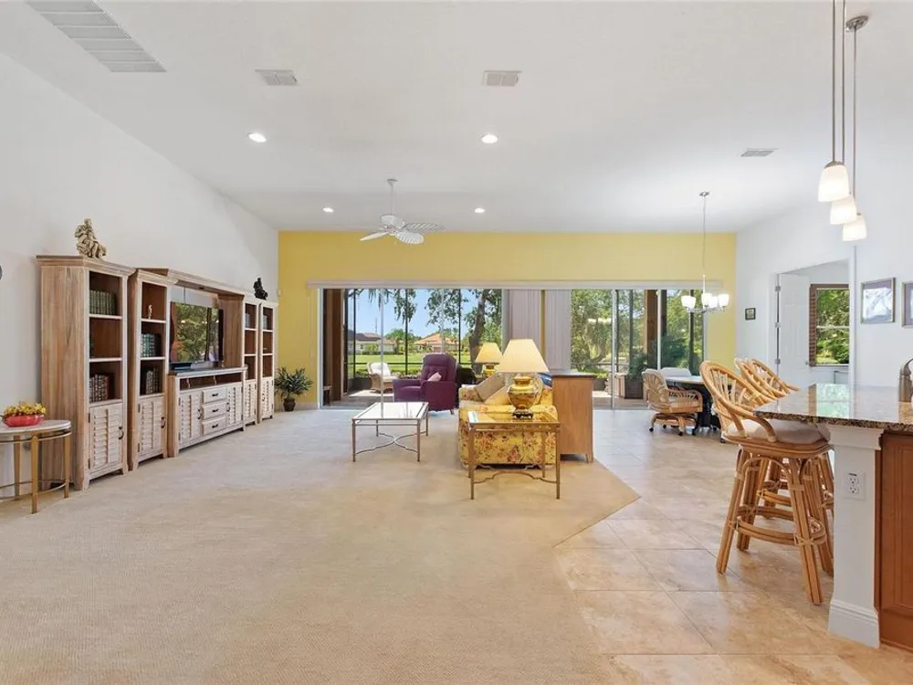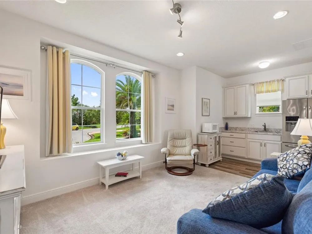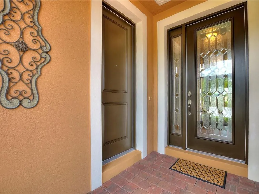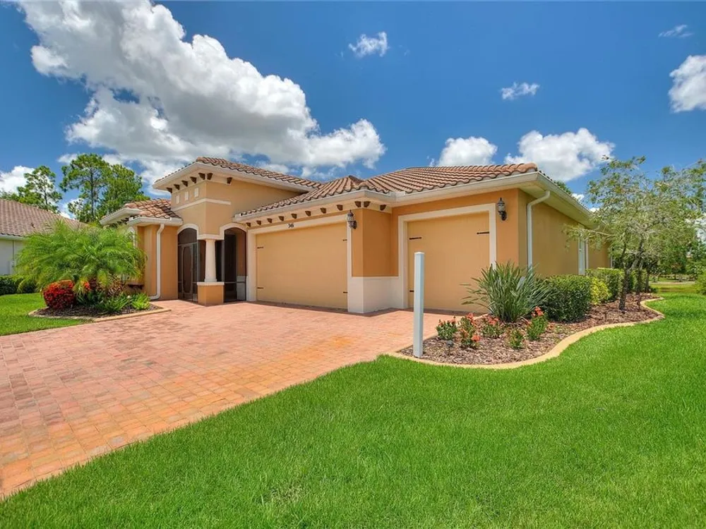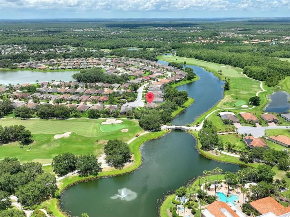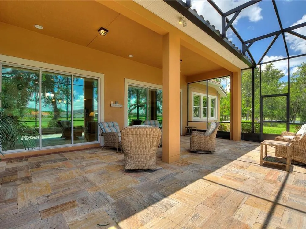 Discover luxury living in Solivita at 346 Treviso Drive with this rarely available MARSALA model, featuring a PRIVATE MULTI-GEN SUITE and sweeping WATER & GOLF VIEWS on a spacious pie-shaped lot. This unique home provides the ultimate private WORK-FROM-HOME option, in-law arrangement, or spacious retreat for family and friends! Find breathtaking views in every direction and the charming Solivita village, a short walk away. Step inside a large welcoming foyer and find thoughtful upgrades throughout; from a leaded glass entry door to 8-foot interior doors and custom trim work; every detail meticulously considered. The great room impresses with twin 12’ triple sliders with views to the water, creating a seamless indoor-outdoor experience into a large lanai featuring travertine flooring and recessed lighting. The home is open plan, the kitchen displays upgraded cabinetry, premium hardware, a striking backsplash, and a custom glass pantry entry—a perfect mix of style and practicality. Retreat to the deluxe over-sized owner’s suite, and a spa-inspired bathroom including a step-in hydro tub and separate shower, dual sinks, a water closet, and a spacious walk-in closet that has a convenient with direct access to the well-designed laundry room. The rest of the main home includes a well-sized guest bedroom with walk-in closet, a full bath with a transom window, and an adjacent double-door den/flex space with large windows. The STANDOUT FEATURE that makes this luxurious home unique is the fully functional private suite with southern exposure, with separate portico entry, a cozy living room, a galley-style kitchenette, well-appointed bath complete with a shower, double vanity sink, walk-in closet, and bedroom. This separate space offers comfort and privacy, making it perfect for hosting family or friends. Additional practical luxuries include dual AC controllers, a Propane Tankless Hot-Water Heater switchable to the standard electric hot water heater, and a Pentair whole-house cartridge water filtration system, a hardwired security system, a handy drop zone at the garage entry, and propane Automatic Whole-House Generator for peace of mind. The spacious 3-car garage features a new epoxy coating with decorative chips, Saf-T-Racking for storage. Other items upgrade exterior landscaping with border curbing and extensive nighttime lighting, full tile roof, and fresh exterior paint, rounding out this amazing package. Don’t let the opportunity slip by to own this incredible property; schedule your private tour of 346 Treviso today and start living your Florida dream. **PLEASE SEE THE 3D MATTERPORT TOUR** Make the award-winning Active 55+ Community of Solivita your new home today. Featuring 14 Pools, 2 Championship 18 Hole Golf Courses, Tennis, Pickleball, basketball, softball, over 240 clubs, spa services, state-of-the-art exercise facilities on 4,200 acres of conservation. Take your golf cart for a spin to dine and share a cocktail with friends; or to enjoy the many activities that Solivita COMMUNITY enjoys. The HOA includes landscaping, irrigation AND high-speed fiber TV and Internet. HCA Florida Poinciana Hospital is directly across the street along with the new Poinciana Lakes Plaza, with lots of shopping and restaurants.