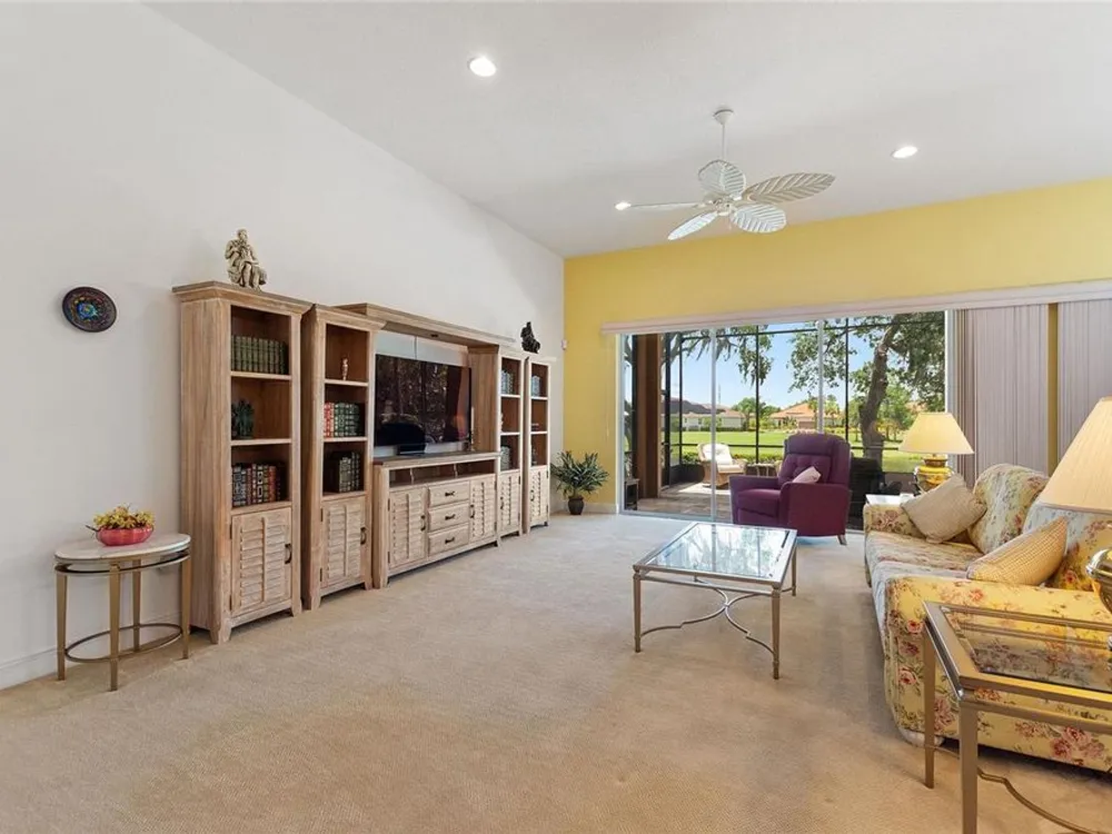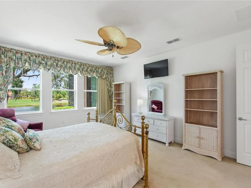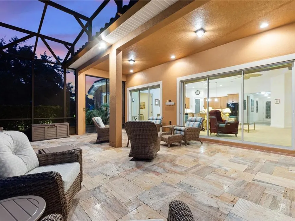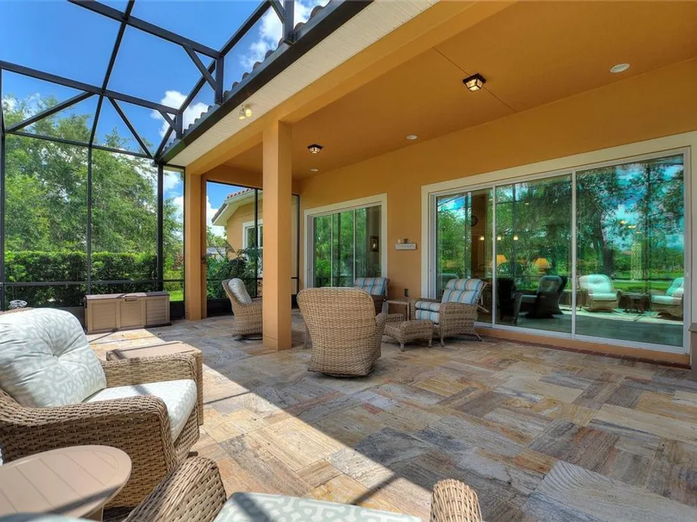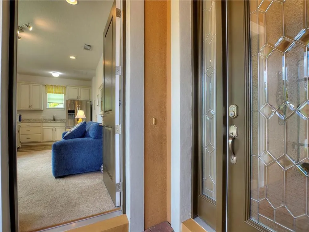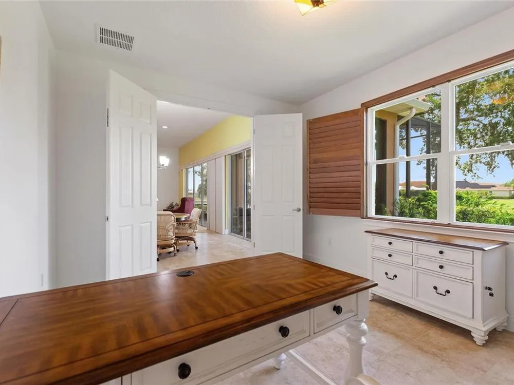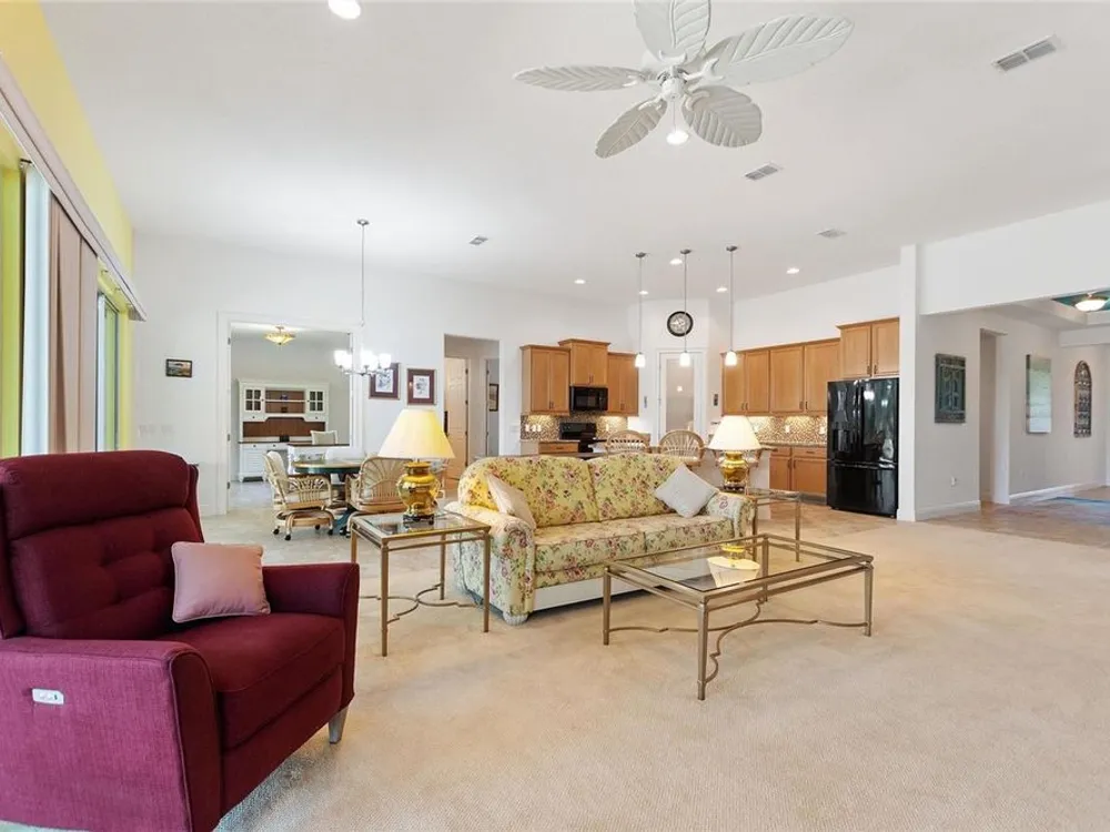 Discover luxury living in Solivita at 346 Treviso Drive with this rarely available MARSALA model, featuring a PRIVATE MULTI-GEN SUITE and sweeping WATER & GOLF VIEWS on a spacious pie-shaped lot. This unique home provides the ultimate private WORK-FROM-HOME option, in-law arrangement, or spacious retreat for family and friends! Find breathtaking views in every direction and the charming Solivita village, a short walk away. Step inside a large welcoming foyer and find thoughtful upgrades throughout; from a leaded glass entry door to 8-foot interior doors and custom trim work; every detail meticulously considered. The great room impresses with twin 12’ triple sliders with views to the water, creating a seamless indoor-outdoor experience into a large lanai featuring travertine flooring and recessed lighting. The home is open plan, the kitchen displays upgraded cabinetry, premium hardware, a striking backsplash, and a custom glass pantry entry—a perfect mix of style and practicality. Retreat to the deluxe over-sized owner’s suite, and a spa-inspired bathroom including a step-in hydro tub and separate shower, dual sinks, a water closet, and a spacious walk-in closet that has a convenient with direct access to the well-designed laundry room. The rest of the main home includes a well-sized guest bedroom with walk-in closet, a full bath with a transom window, and an adjacent double-door den/flex space with large windows. The STANDOUT FEATURE that makes this luxurious home unique is the fully functional private suite with southern exposure, with separate portico entry, a cozy living room, a galley-style kitchenette, well-appointed bath complete with a shower, double vanity sink, walk-in closet, and bedroom. This separate space offers comfort and privacy, making it perfect for hosting family or friends. Additional practical luxuries include dual AC controllers, a Propane Tankless Hot-Water Heater switchable to the standard electric hot water heater, and a Pentair whole-house cartridge water filtration system, a hardwired security system, a handy drop zone at the garage entry, and propane Automatic Whole-House Generator for peace of mind. The spacious 3-car garage features a new epoxy coating with decorative chips, Saf-T-Racking for storage. Other items upgrade exterior landscaping with border curbing and extensive nighttime lighting, full tile roof, and fresh exterior paint, rounding out this amazing package. Don’t let the opportunity slip by to own this incredible property; schedule your private tour of 346 Treviso today and start living your Florida dream. **PLEASE SEE THE 3D MATTERPORT TOUR** Make the award-winning Active 55+ Community of Solivita your new home today. Featuring 14 Pools, 2 Championship 18 Hole Golf Courses, Tennis, Pickleball, basketball, softball, over 240 clubs, spa services, state-of-the-art exercise facilities on 4,200 acres of conservation. Take your golf cart for a spin to dine and share a cocktail with friends; or to enjoy the many activities that Solivita COMMUNITY enjoys. The HOA includes landscaping, irrigation AND high-speed fiber TV and Internet. HCA Florida Poinciana Hospital is directly across the street along with the new Poinciana Lakes Plaza, with lots of shopping and restaurants.