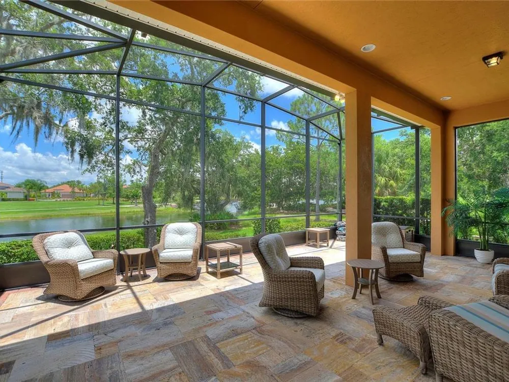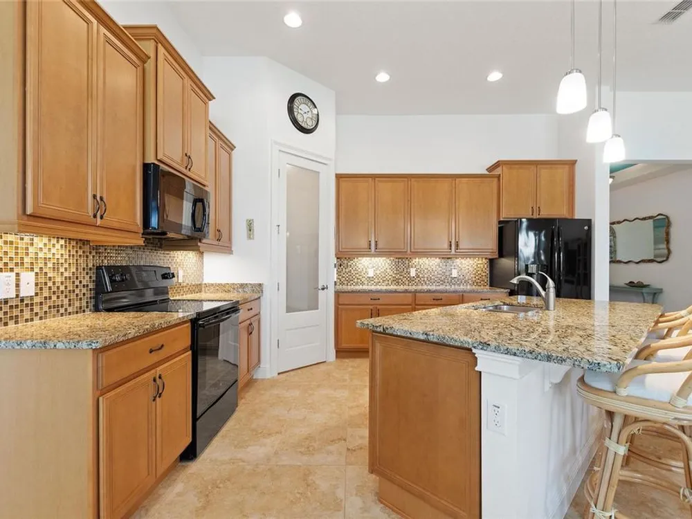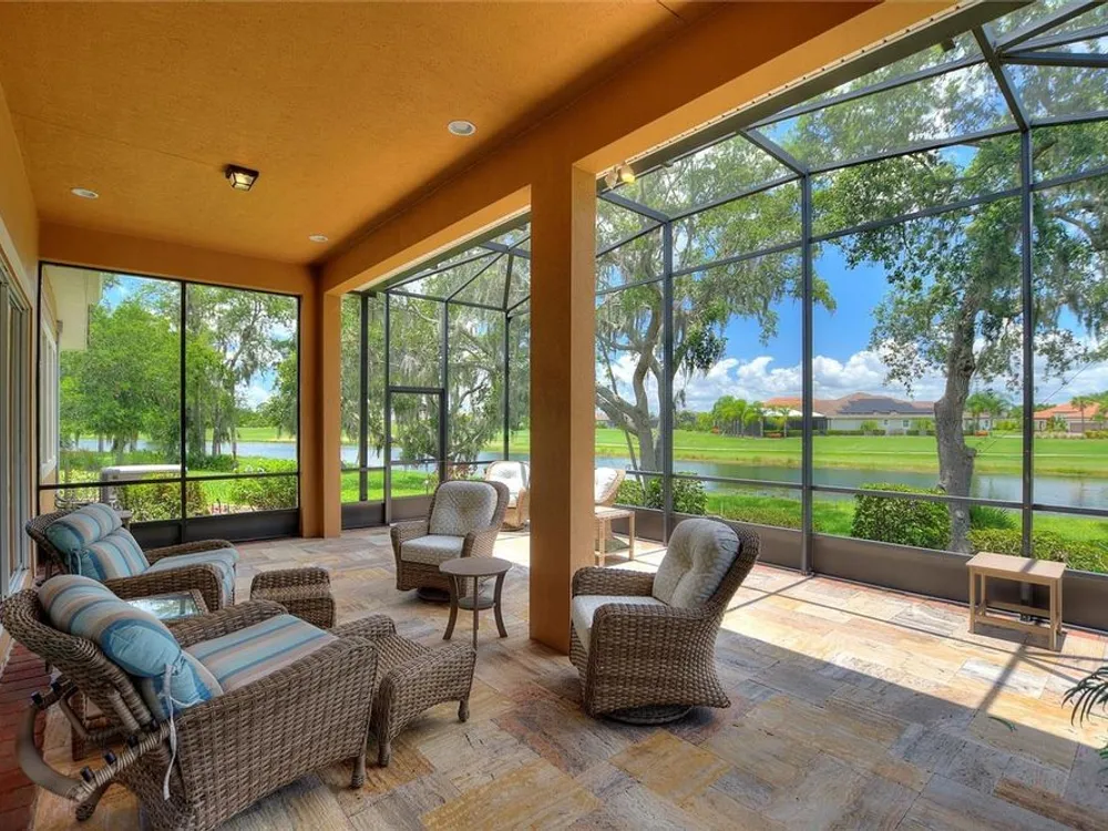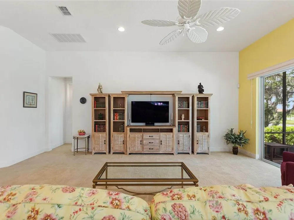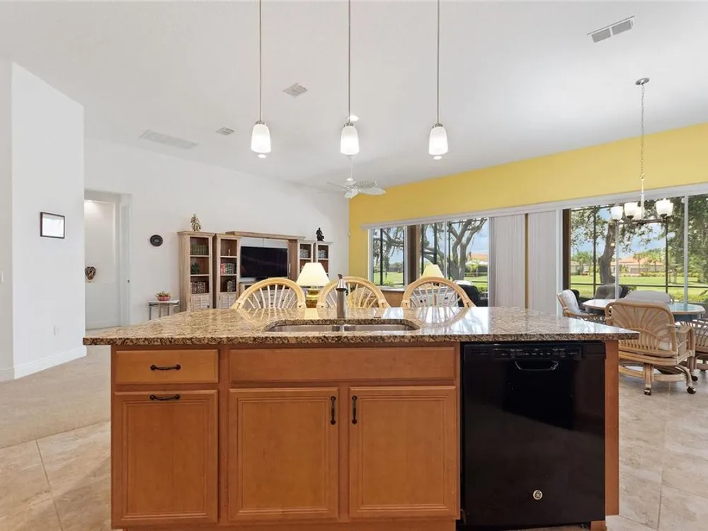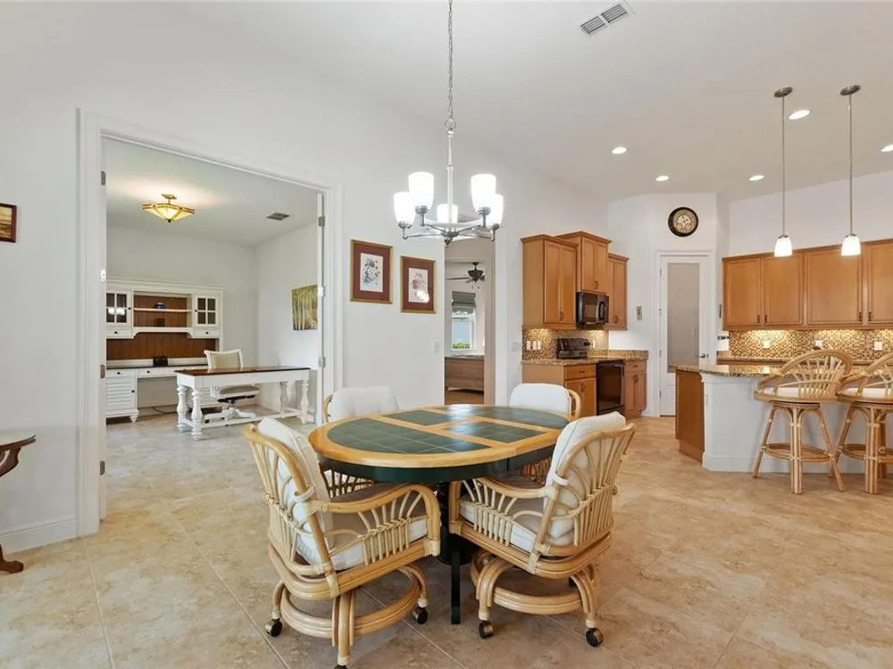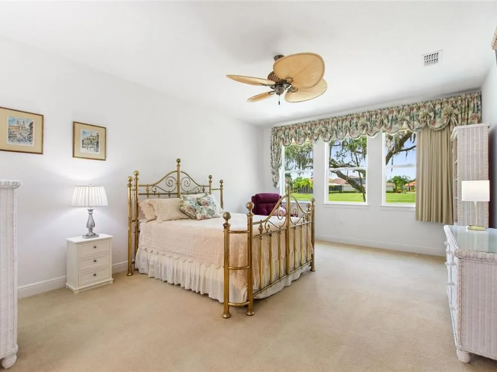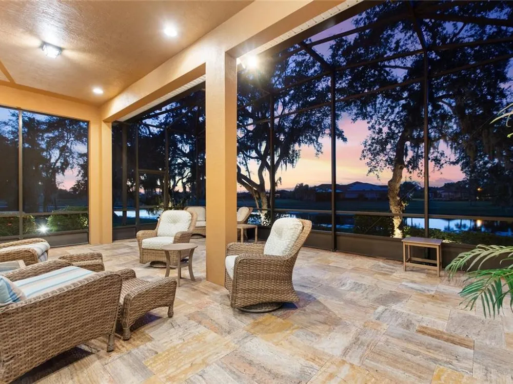 Discover luxury living in Solivita at 346 Treviso Drive with this rarely available MARSALA model, featuring a PRIVATE MULTI-GEN SUITE and sweeping WATER & GOLF VIEWS on a spacious pie-shaped lot. This unique home provides the ultimate private WORK-FROM-HOME option, in-law arrangement, or spacious retreat for family and friends! Find breathtaking views in every direction and the charming Solivita village, a short walk away. Step inside a large welcoming foyer and find thoughtful upgrades throughout; from a leaded glass entry door to 8-foot interior doors and custom trim work; every detail meticulously considered. The great room impresses with twin 12’ triple sliders with views to the water, creating a seamless indoor-outdoor experience into a large lanai featuring travertine flooring and recessed lighting. The home is open plan, the kitchen displays upgraded cabinetry, premium hardware, a striking backsplash, and a custom glass pantry entry—a perfect mix of style and practicality. Retreat to the deluxe over-sized owner’s suite, and a spa-inspired bathroom including a step-in hydro tub and separate shower, dual sinks, a water closet, and a spacious walk-in closet that has a convenient with direct access to the well-designed laundry room. The rest of the main home includes a well-sized guest bedroom with walk-in closet, a full bath with a transom window, and an adjacent double-door den/flex space with large windows. The STANDOUT FEATURE that makes this luxurious home unique is the fully functional private suite with southern exposure, with separate portico entry, a cozy living room, a galley-style kitchenette, well-appointed bath complete with a shower, double vanity sink, walk-in closet, and bedroom. This separate space offers comfort and privacy, making it perfect for hosting family or friends. Additional practical luxuries include dual AC controllers, a Propane Tankless Hot-Water Heater switchable to the standard electric hot water heater, and a Pentair whole-house cartridge water filtration system, a hardwired security system, a handy drop zone at the garage entry, and propane Automatic Whole-House Generator for peace of mind. The spacious 3-car garage features a new epoxy coating with decorative chips, Saf-T-Racking for storage. Other items upgrade exterior landscaping with border curbing and extensive nighttime lighting, full tile roof, and fresh exterior paint, rounding out this amazing package. Don’t let the opportunity slip by to own this incredible property; schedule your private tour of 346 Treviso today and start living your Florida dream. **PLEASE SEE THE 3D MATTERPORT TOUR** Make the award-winning Active 55+ Community of Solivita your new home today. Featuring 14 Pools, 2 Championship 18 Hole Golf Courses, Tennis, Pickleball, basketball, softball, over 240 clubs, spa services, state-of-the-art exercise facilities on 4,200 acres of conservation. Take your golf cart for a spin to dine and share a cocktail with friends; or to enjoy the many activities that Solivita COMMUNITY enjoys. The HOA includes landscaping, irrigation AND high-speed fiber TV and Internet. HCA Florida Poinciana Hospital is directly across the street along with the new Poinciana Lakes Plaza, with lots of shopping and restaurants.