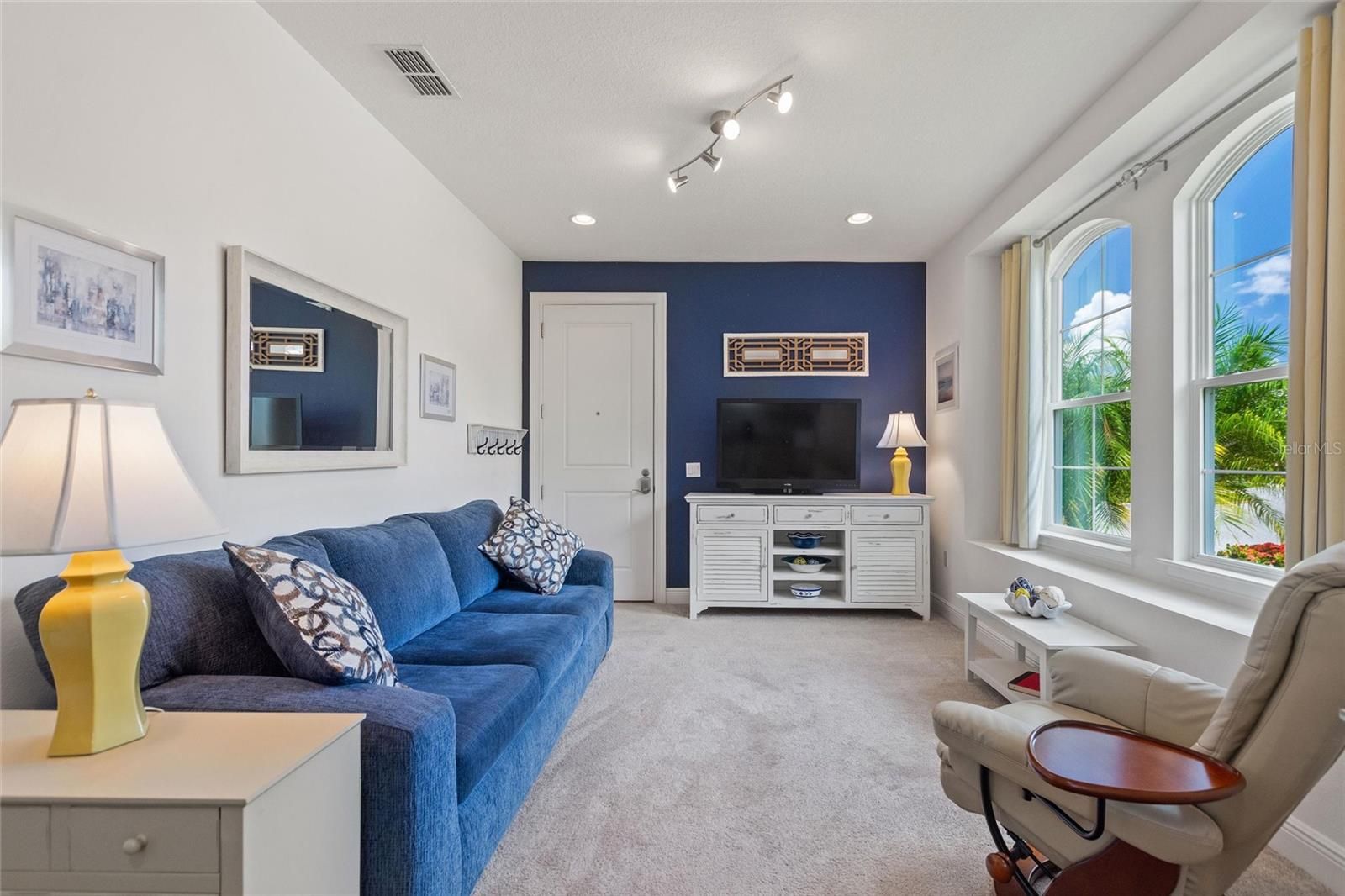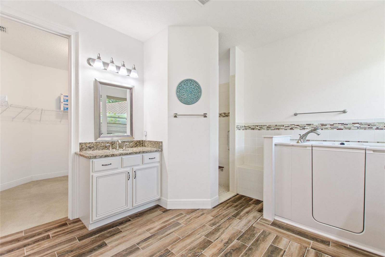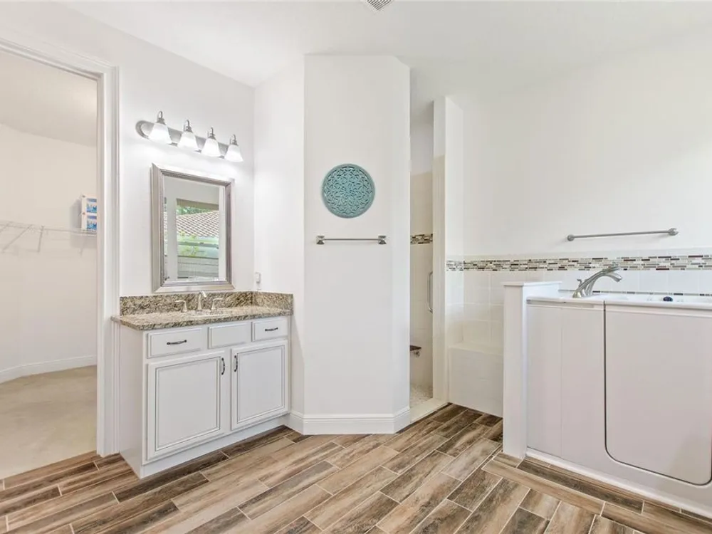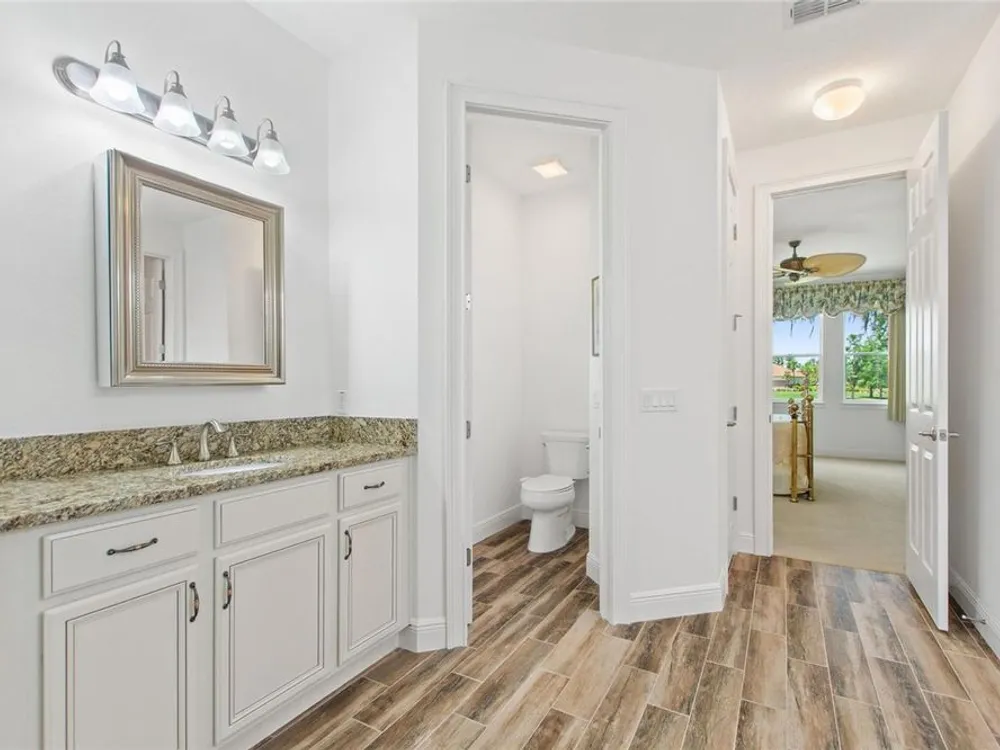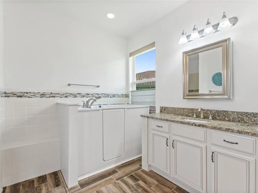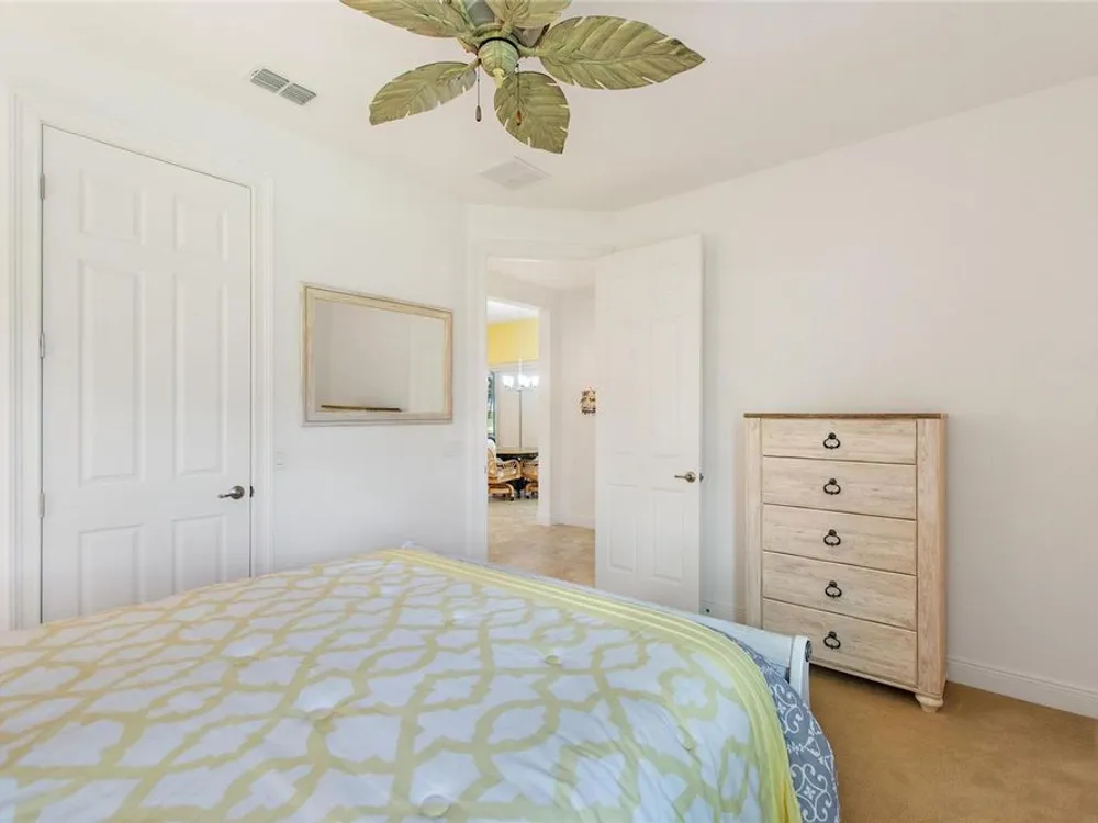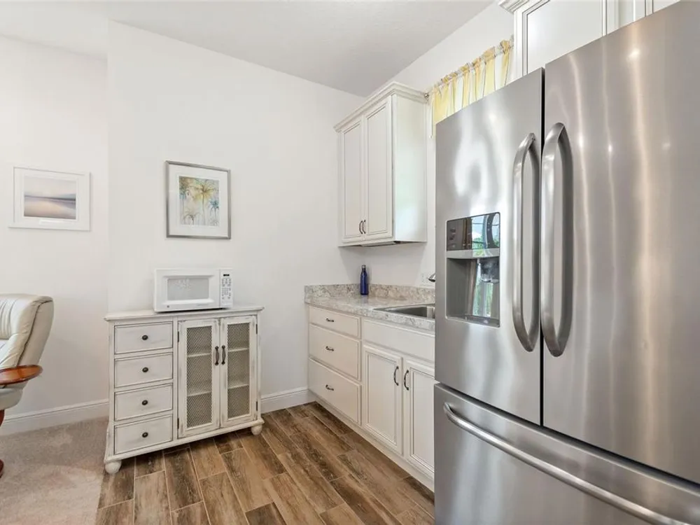 Discover luxury living in Solivita at 346 Treviso Drive with this rarely available MARSALA model, featuring a PRIVATE MULTI-GEN SUITE and sweeping WATER & GOLF VIEWS on a spacious pie-shaped lot. This unique home provides the ultimate private WORK-FROM-HOME option, in-law arrangement, or spacious retreat for family and friends! Find breathtaking views in every direction and the charming Solivita village, a short walk away. Step inside a large welcoming foyer and find thoughtful upgrades throughout; from a leaded glass entry door to 8-foot interior doors and custom trim work; every detail meticulously considered. The great room impresses with twin 12’ triple sliders with views to the water, creating a seamless indoor-outdoor experience into a large lanai featuring travertine flooring and recessed lighting. The home is open plan, the kitchen displays upgraded cabinetry, premium hardware, a striking backsplash, and a custom glass pantry entry—a perfect mix of style and practicality. Retreat to the deluxe over-sized owner’s suite, and a spa-inspired bathroom including a step-in hydro tub and separate shower, dual sinks, a water closet, and a spacious walk-in closet that has a convenient with direct access to the well-designed laundry room. The rest of the main home includes a well-sized guest bedroom with walk-in closet, a full bath with a transom window, and an adjacent double-door den/flex space with large windows. The STANDOUT FEATURE that makes this luxurious home unique is the fully functional private suite with southern exposure, with separate portico entry, a cozy living room, a galley-style kitchenette, well-appointed bath complete with a shower, double vanity sink, walk-in closet, and bedroom. This separate space offers comfort and privacy, making it perfect for hosting family or friends. Additional practical luxuries include dual AC controllers, a Propane Tankless Hot-Water Heater switchable to the standard electric hot water heater, and a Pentair whole-house cartridge water filtration system, a hardwired security system, a handy drop zone at the garage entry, and propane Automatic Whole-House Generator for peace of mind. The spacious 3-car garage features a new epoxy coating with decorative chips, Saf-T-Racking for storage. Other items upgrade exterior landscaping with border curbing and extensive nighttime lighting, full tile roof, and fresh exterior paint, rounding out this amazing package. Don’t let the opportunity slip by to own this incredible property; schedule your private tour of 346 Treviso today and start living your Florida dream. **PLEASE SEE THE 3D MATTERPORT TOUR** Make the award-winning Active 55+ Community of Solivita your new home today. Featuring 14 Pools, 2 Championship 18 Hole Golf Courses, Tennis, Pickleball, basketball, softball, over 240 clubs, spa services, state-of-the-art exercise facilities on 4,200 acres of conservation. Take your golf cart for a spin to dine and share a cocktail with friends; or to enjoy the many activities that Solivita COMMUNITY enjoys. The HOA includes landscaping, irrigation AND high-speed fiber TV and Internet. HCA Florida Poinciana Hospital is directly across the street along with the new Poinciana Lakes Plaza, with lots of shopping and restaurants.