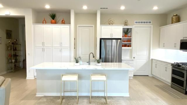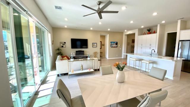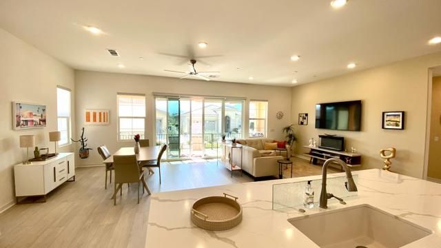 Seller says, 'SELL!' Highly motivated with a $66,000 price reduction! This extensively upgraded, south-facing, free-standing elegant Milano floor plan welcomes you with a dramatic formal entry and an expansive open-concept design. Located in Villa Portofino which is a highly sought-after 55+ gated community, in the heart of beautiful Palm Desert. The home features 2 bedrooms, 2 custom baths plus powder room, and two versatile flex rooms ideal for a den, office, or hobby space. The spacious Great Room with high ceilings flows seamlessly into the dining area and gourmet kitchen, creating an ideal setting for both everyday living and entertaining.The chef's kitchen features high end stainless steel appliances, custom quartz countertops, a full custom tile backsplash, and a large center island with a single-basin sink. Large walk-in pantry and lots of storage cabinetry. The Great Room, dining area, and Primary Suite all enjoy south-facing exposure with panoramic mountain views.The Primary Suite is highlighted by a spa-like bath with a freestanding luxury soaking tub, dual vanities with quartz countertops, an oversized walk-in shower, and a generous walk-in closet. The guest bedroom is bright and welcoming and is conveniently located adjacent to the guest bath.Additional highlights include high-end luxury vinyl plank flooring throughout, recessed lighting, custom window treatments, a separate laundry room, tankless water heater, leased solar, and a garage mini-split A/C. Outdoor features include a paver driveway & patios, colorful custom landscaping in both the front and back, and pet-friendly fencing for the side and rear patios.Relax on the back patio and take in the spectacular south and west facing mountain views! Villa Portofino residents enjoy many resort-style amenities including a large community pool and spa, theater, fitness center, clubhouse, on-site restaurant, and a wide variety of clubs and social activities. Ideally located near shopping, El Paseo, dining, and entertainment.
