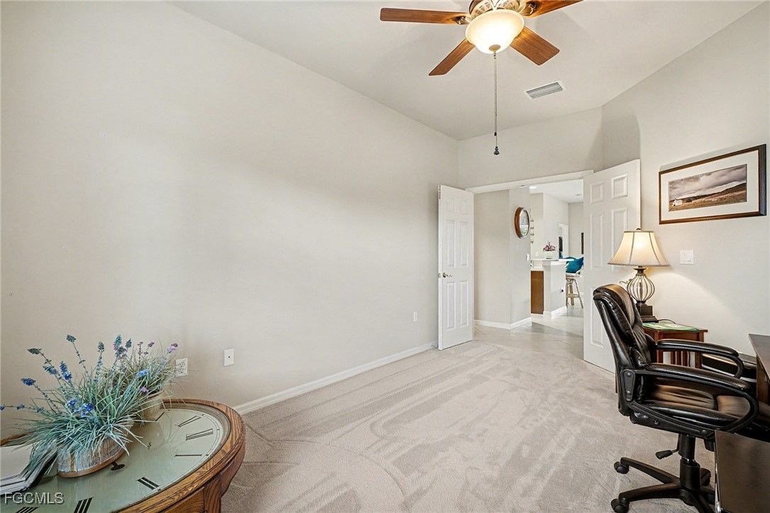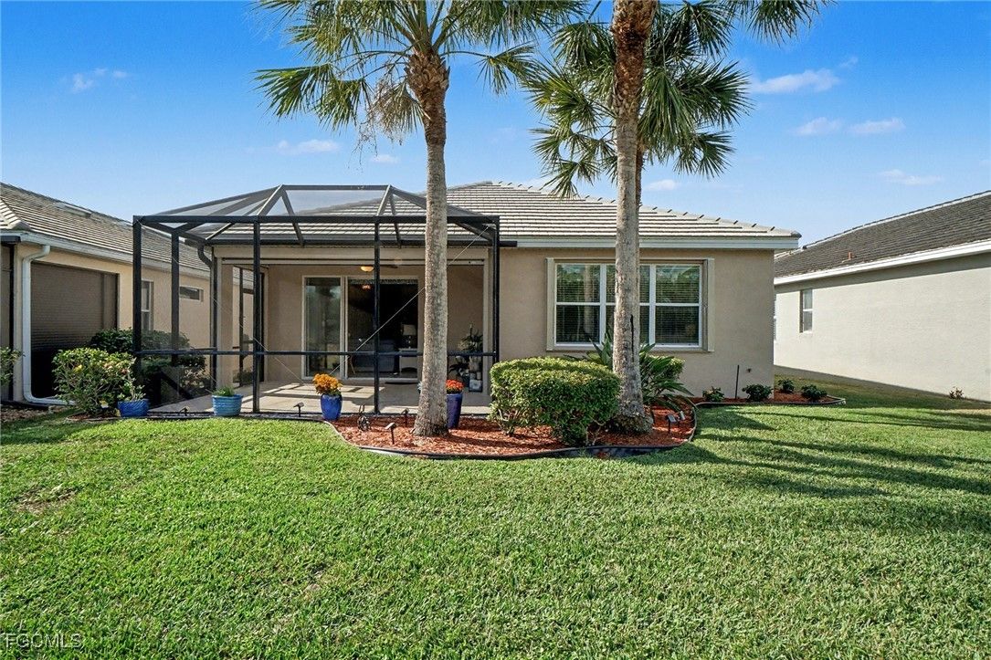 PRICED TO SELL! EXPANDED LANAI - STORM PROTECTION & MOVE IN READY! ***Enjoy your piece of Florida paradise in this charming 2-bedroom + den home with beautiful GOLF and WATER VIEWS, offered FURNISHED. Nestled in a quiet setting within the resort-style, gated community of Magnolia Landing, this deed-restricted neighborhood offers the Florida lifestyle at its finest. This meticulously maintained, move-in-ready home features numerous upgrades, including ELECTRIC STORM SHUTTERS on the LANAI (approximately 2 months old), ACCORDION SHUTTERS on windows, a LARGE, EXPANDED SCREENED-IN LANAI with epoxy-finished flooring, tile flooring in the main living areas, and new carpet less than one year old. Recent improvements also include a new LG dishwasher, water heater, and garage door opener. The open kitchen is ideal for entertaining and features 42" cabinetry, stainless steel appliances, a light-colored solid-surface countertop, a closet pantry, and a convenient breakfast bar. The spacious layout includes a comfortable living area, formal dining space, interior laundry room, generous guest bedrooms, and a private primary suite. Additional highlights include meticulously maintained mature landscaping and a peaceful outdoor living space perfect for relaxing or entertaining. Golf enthusiasts will appreciate views of the 17th GREEN and the flexibility of optional golf membership or pay-to-play access to the championship course. Magnolia Landing offers an impressive array of amenities, including resort-style and lap pools, fitness center, clubhouse dining, on-site restaurant, pickleball and bocce courts, and a golf-cart-friendly community. Basic lawn care, irrigation maintenance, and fertilization are included. Conveniently located near golfing, dining, shopping, and entertainment, this home offers comfort, value, and an exceptional lifestyle.