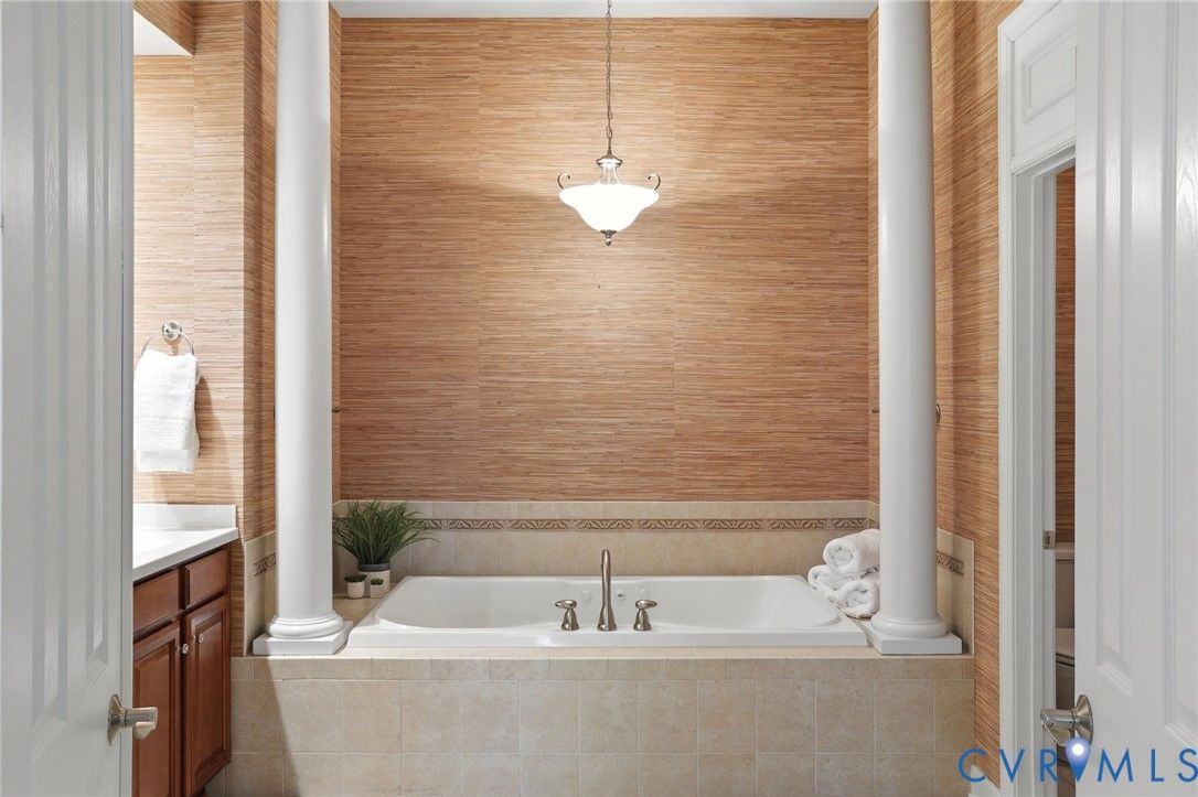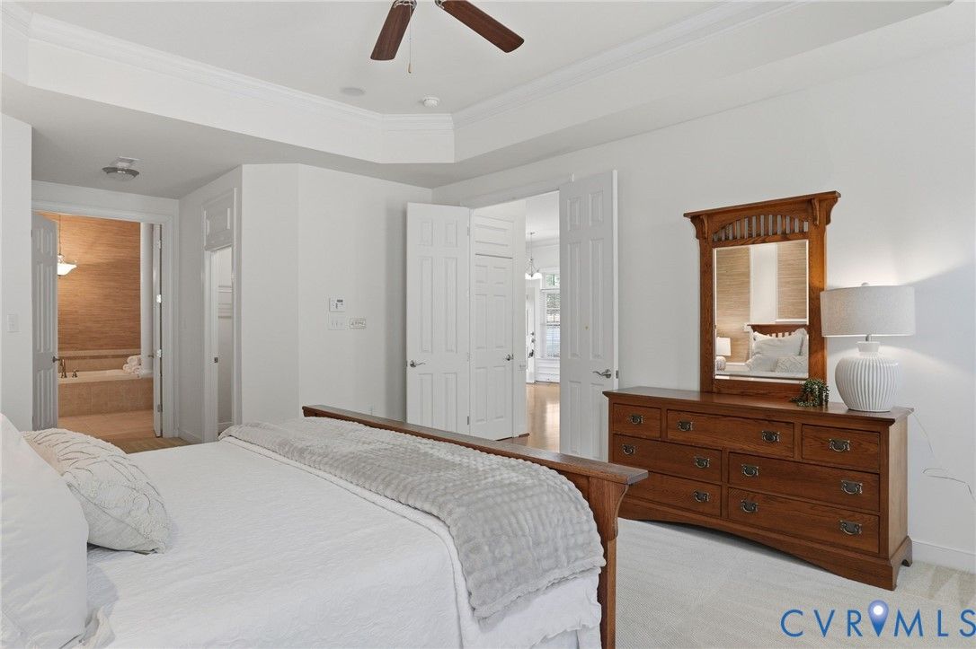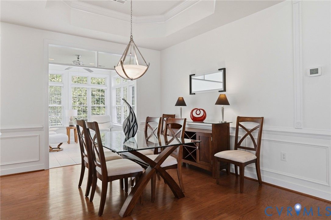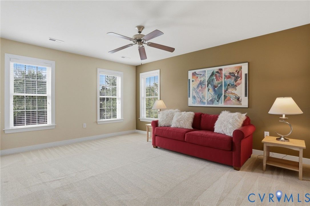 Welcome to 3465 Manor Grove Circle in the 55+ community of The Manor at Hunton Park. This quaint community is tucked at the back of Hunton Park conveniently located at route 33/295 interchange. The gated community offers easy living with quiet walks through the neighborhood, its own pool and club house. First level living at its best with a large primary bedroom that has dual closets and a generous en suite bathroom. The tiled bathroom has an oversized double vanity with plenty of storage, big jetted tub for relaxing, separate shower and water closet for privacy. The open living space downstairs contains wood floors, lots of windows for natural light, recessed lighting, ceiling fan, fireplace and crown/picture molding. The half bath and laundry room are located at the front between the front door and attached garage for convenience. The oversized , 2 car garage is perfect for storing your vehicle as well as recreational equipment and overhead storage if needed. The eat in kitchen has granite countertops, island, bar to the living room, double oven, Palladian window and pantry. Formal dining with tray ceiling, molding and a morning room that offers more space, natural light and easy access to the private patio for indoor/outdoor entertaining. Upstairs you will find a loft space for additional living, a closet for storage and two bedrooms that share a Jack & Jill bathroom, each one with their own vanity and toilet for privacy. The front bedroom has two large closets, one being used for a sewing/craft room. The third floor has been partially finished to use as an office/studio/workout/meditation room and perfect for a caregiver or guest room. Adjacent attic space remains unfinished and ideal for additional storage. Easy to show and ready for you to call it home!