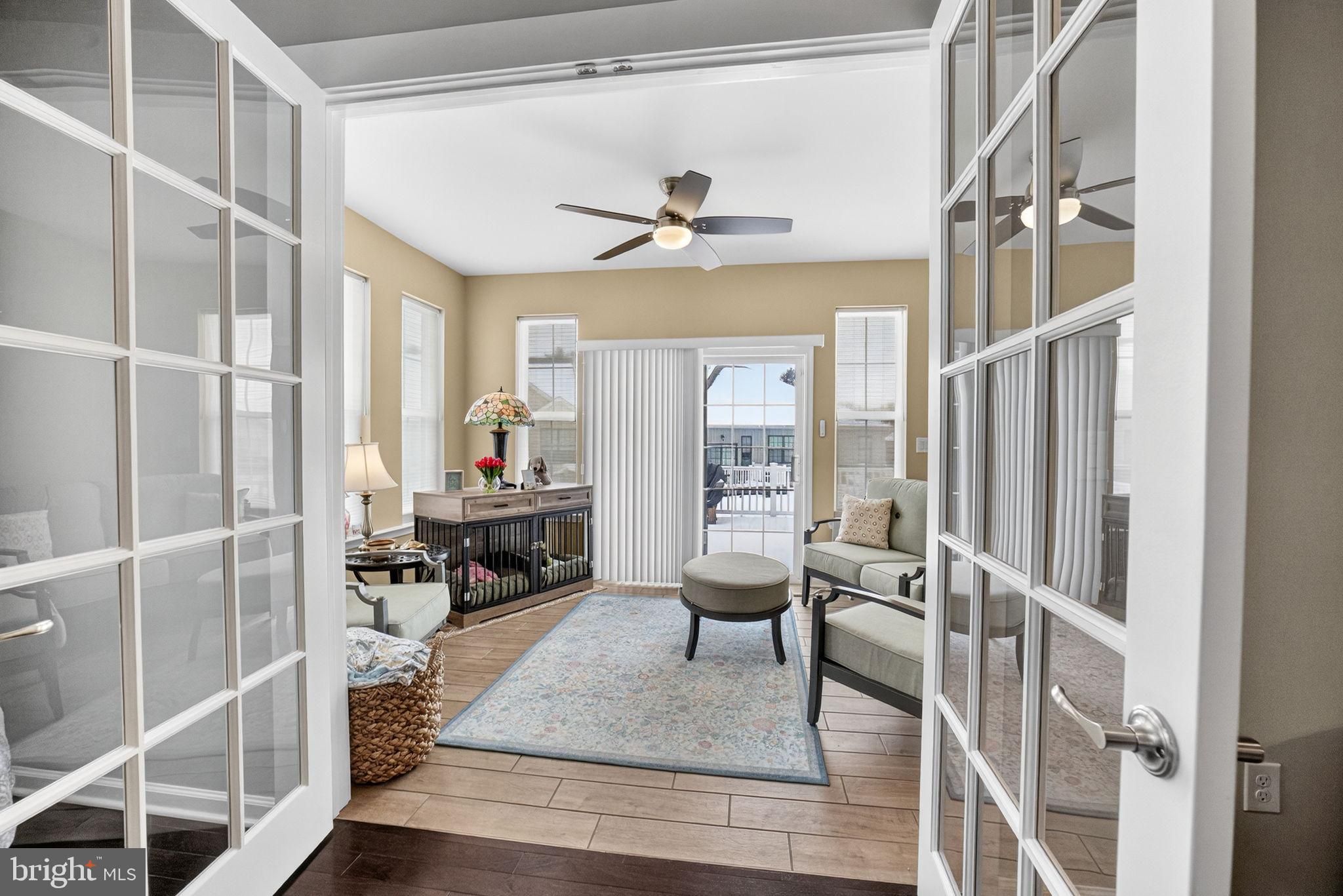 Welcome to easy one-floor living in the desirable Fields of Indian Creek in Upper Milford Township. This beautifully designed home offers an open-concept living room, dining area, and stunning kitchen—perfect for entertaining. The kitchen features an 11-foot quartz island, black stainless appliances, microwave/convection oven, traditional/convection oven, pantry, and a striking wine wall with quartz counter and beverage fridge. Hardwood floors run from the foyer through the main living areas. A tiled sunroom provides the perfect spot to relax year-round. The spacious primary suite offers two walk-in closets, a private office or sitting area, and a luxurious bath with double vanity, walk-in shower with seat, and water closet. An additional bedroom and office/den share a full hall bath. Enjoy a mudroom entry from the oversized garage, a laundry room with sink and cabinetry, and abundant storage throughout. Step outside to the extended 16x24 Trex deck with electric awning and manual sun screen—ideal for outdoor entertaining. Community amenities include a clubhouse, pool, pickleball, bocce, exercise room, clubs, and planned activities. Low-maintenance living at its finest!