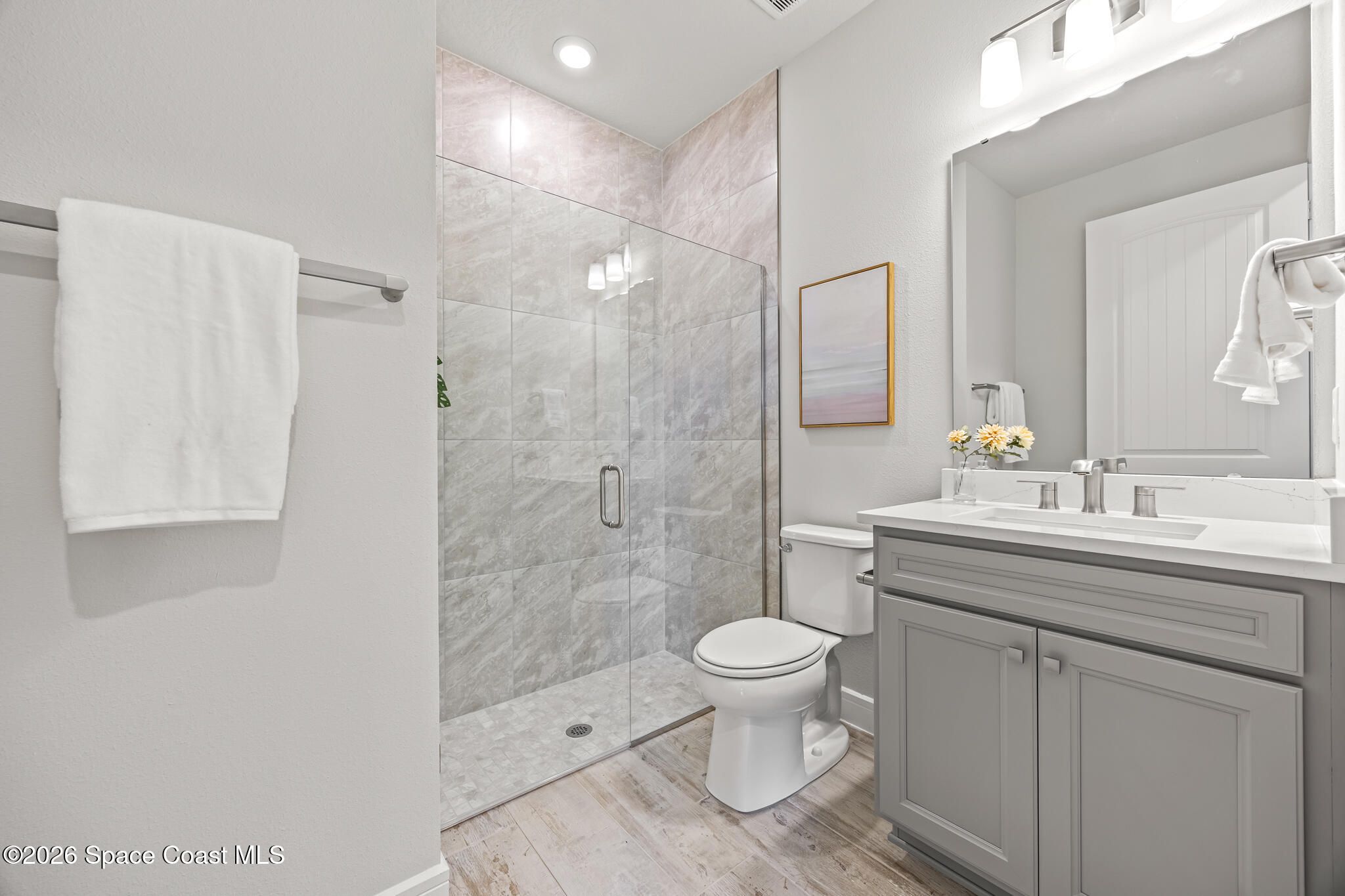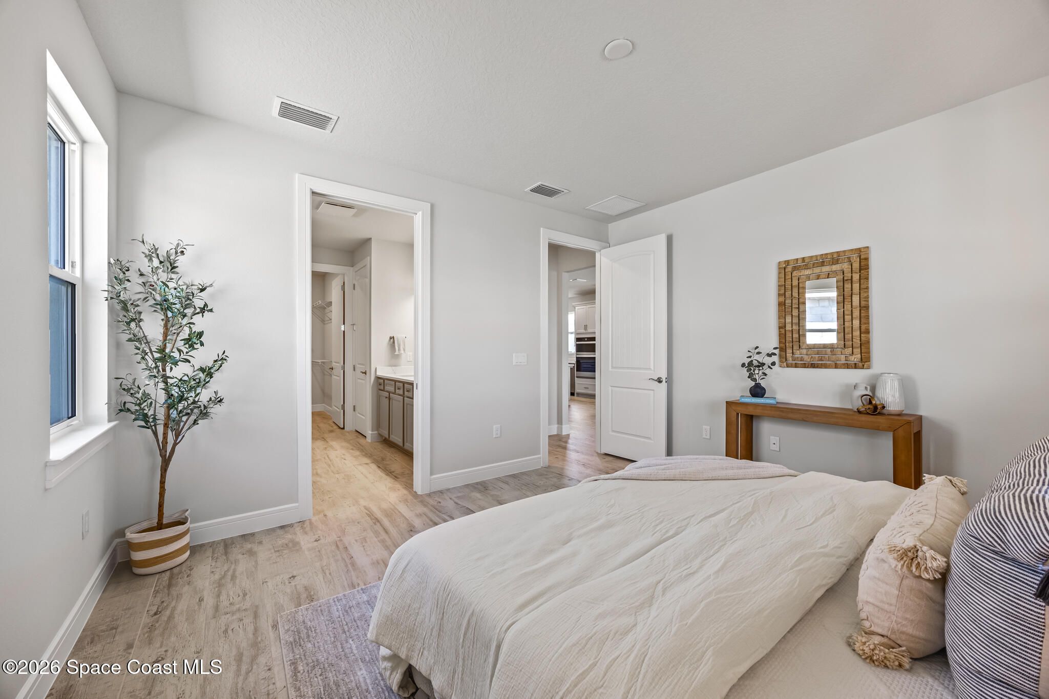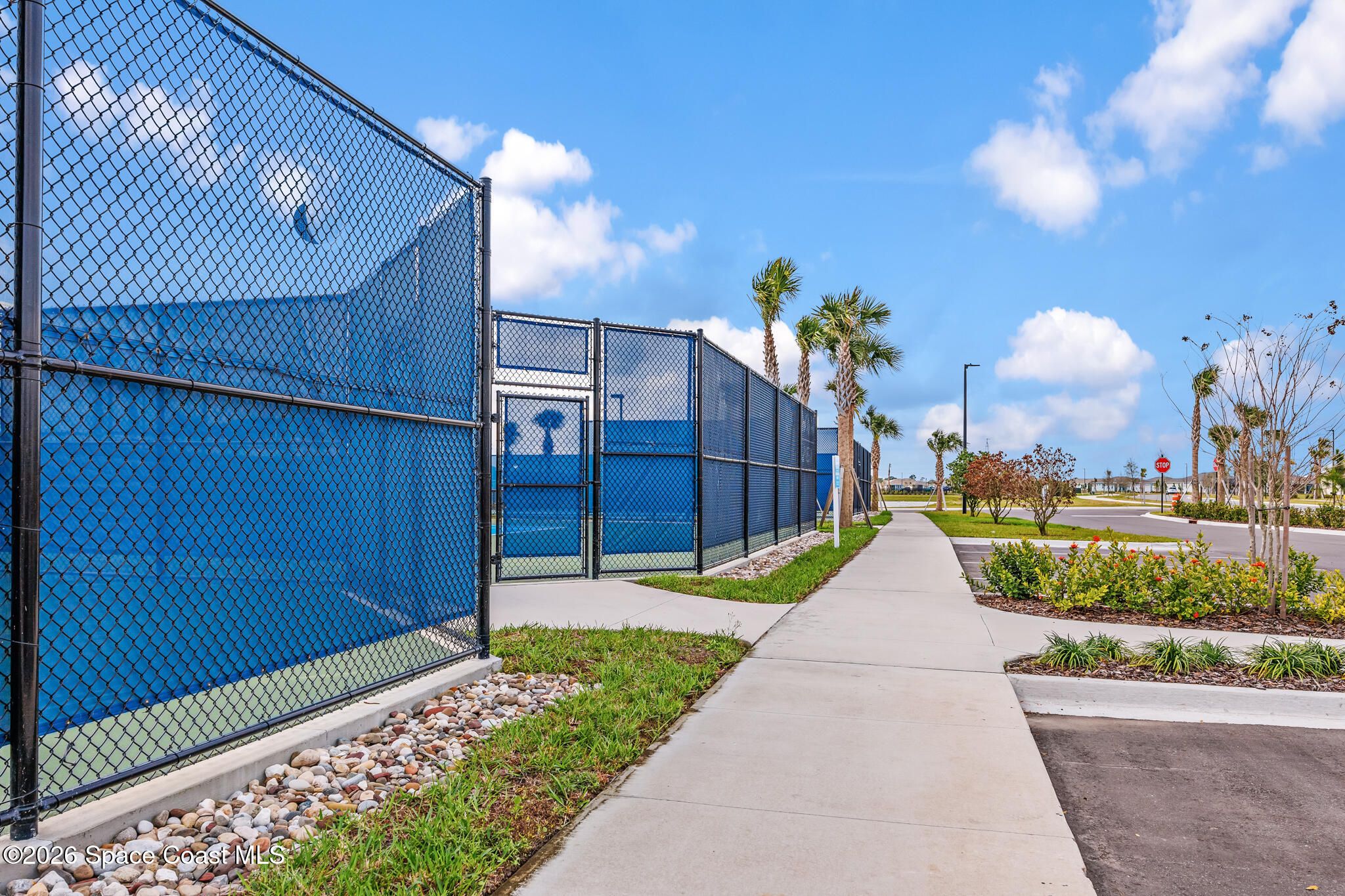 Brand New home never lived in!! Amazing upgrades, hurricane rated impact windows/doors, located on a pond with back porch facing North for beautiful Launch views! Built and finished December 2025, this is a 2 bedroom 2 bathroom home with a front office that could be turned into a 3rd bedroom that would fit a twin bed or Murphy bed. Porcelain (wood look) tile throughout the home. There are 2 showers and no baths in home. This Contour model has the extended living area giving more room for the dining room area and larger couch sectional or larger living room set! All landscaping and lawn care is covered in your HOA fees. You pay $840 a year towards your restaurant bill in the clubhouse. This encourages residents to socialize and make friends and what makes this community more unique and stand apart from other local 55+ communities. You have Publix and Viera Hospital within 2 miles of your home!