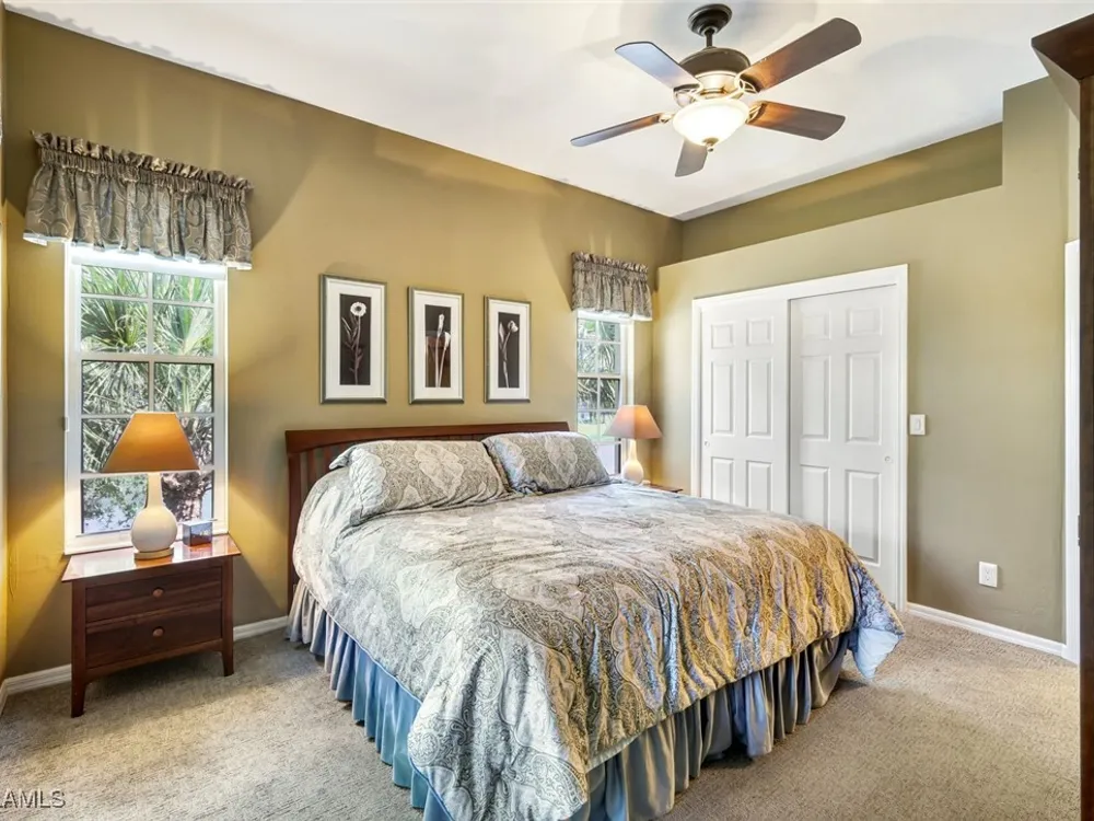 Enjoy one of the MOST AMAZING VIEWS IN Pelican Landing... From the moment you enter this Lovely “Turnkey” 3 bedroom, 2 bath, 1 car Attached garage you will feel a sigh as you look out at this beautiful, serene lake setting with Breathtaking Lake Fountains, right outside your Lanai! This home has High ceilings, Plantation Shutters and So Much More… Pelican Landing amenities are about the best in SW FL offering a private beach with boat shuttle, Clubhouse, Fitness Center, Bocce, Pickleball and options to join the Pelican's Nest Golf Club with two 18-hole championship golf courses! Neighborhood pool and spa included. Whether you are in the mood for a quaint dinner or a relaxing day at the beautiful white sand beaches, you'll find everything you are looking for just steps away.