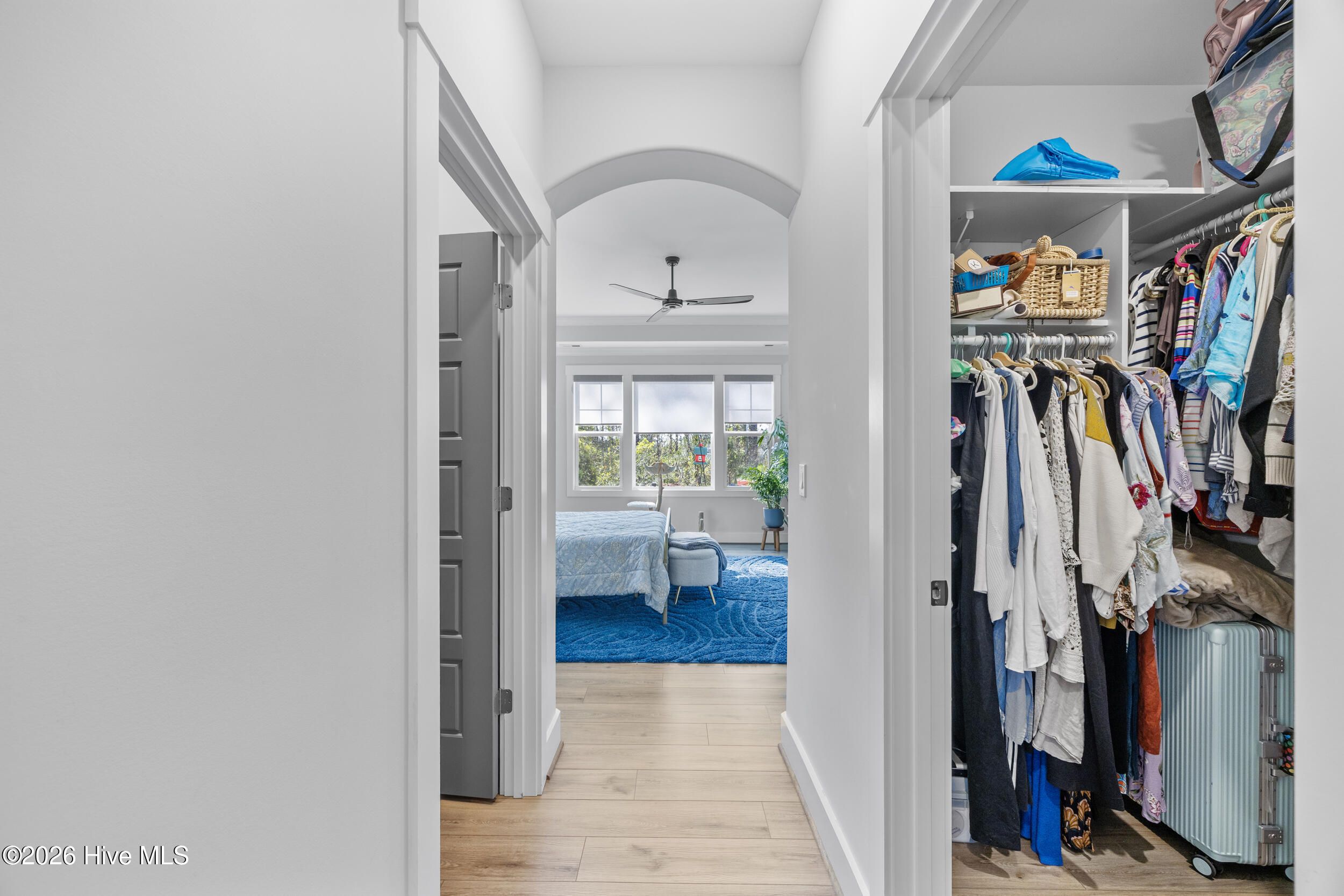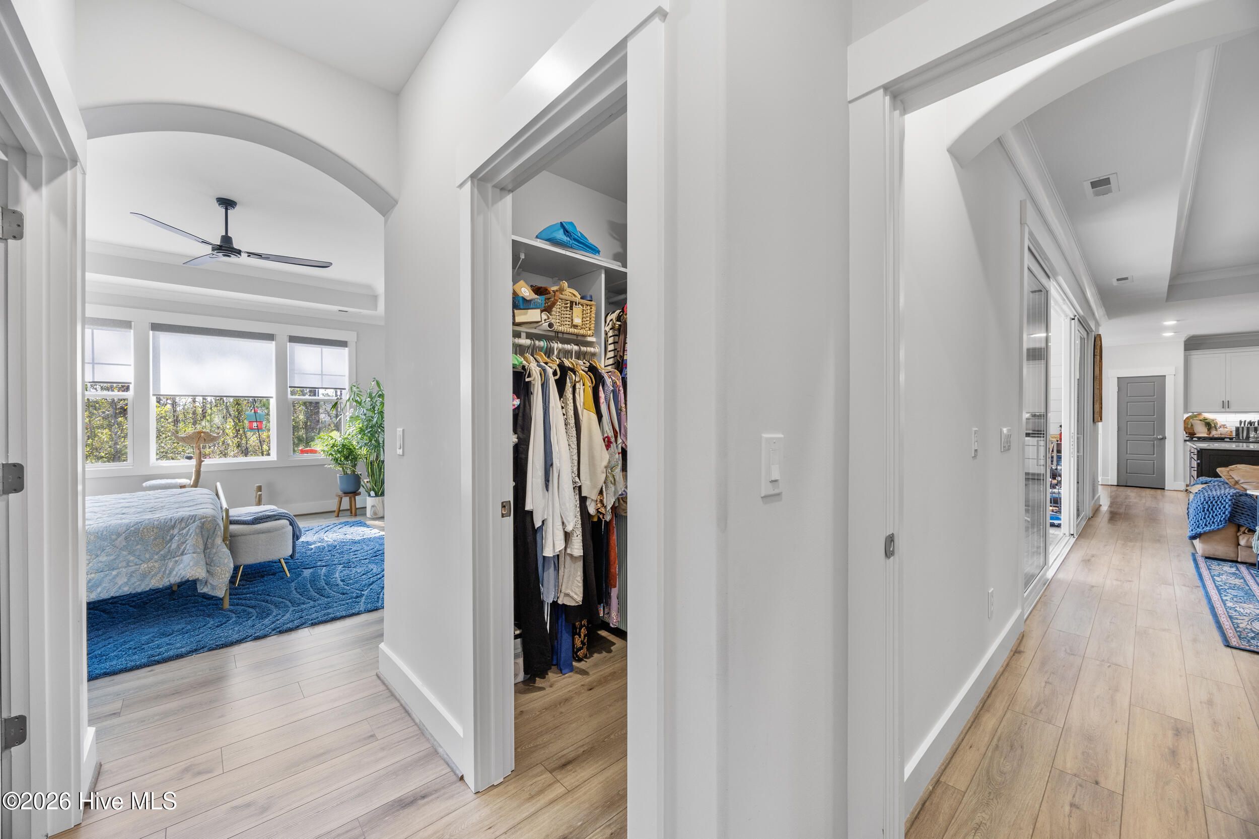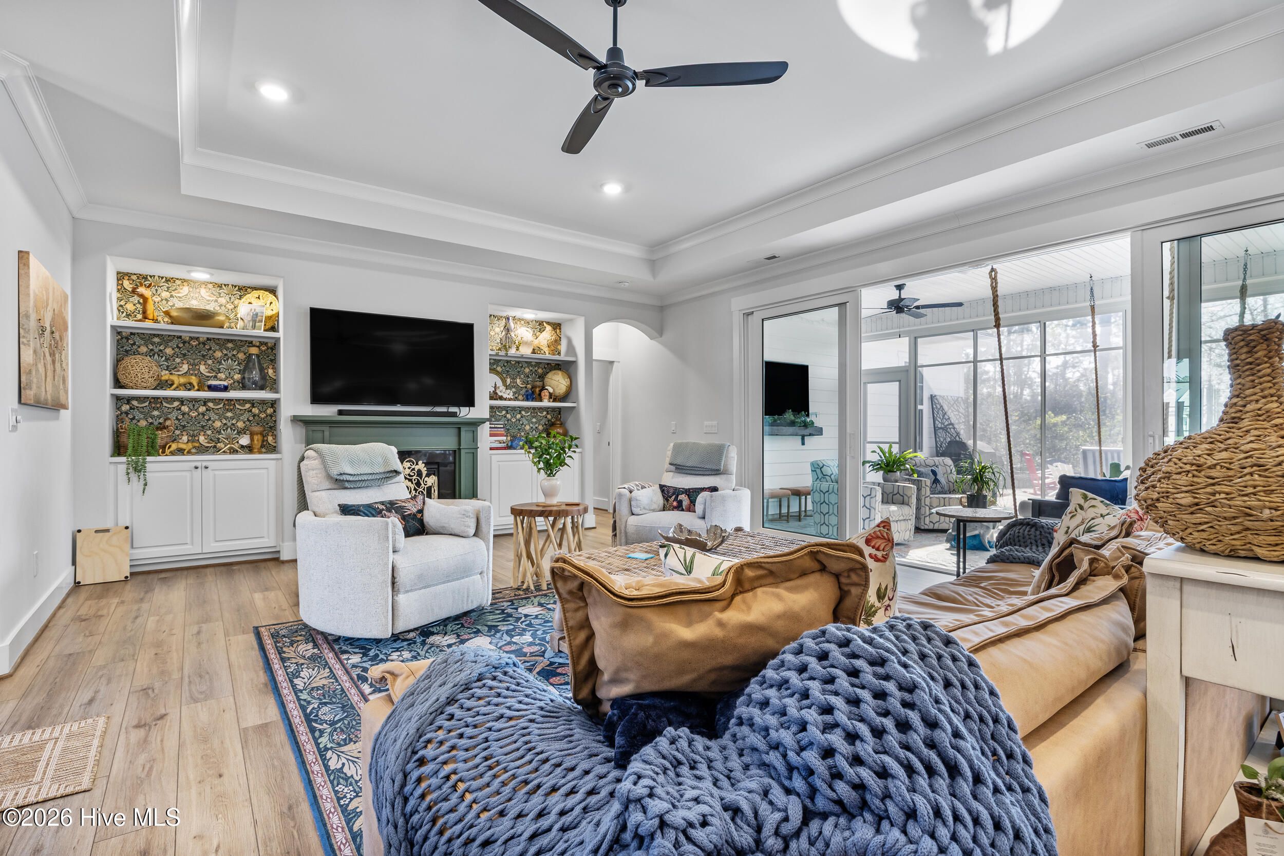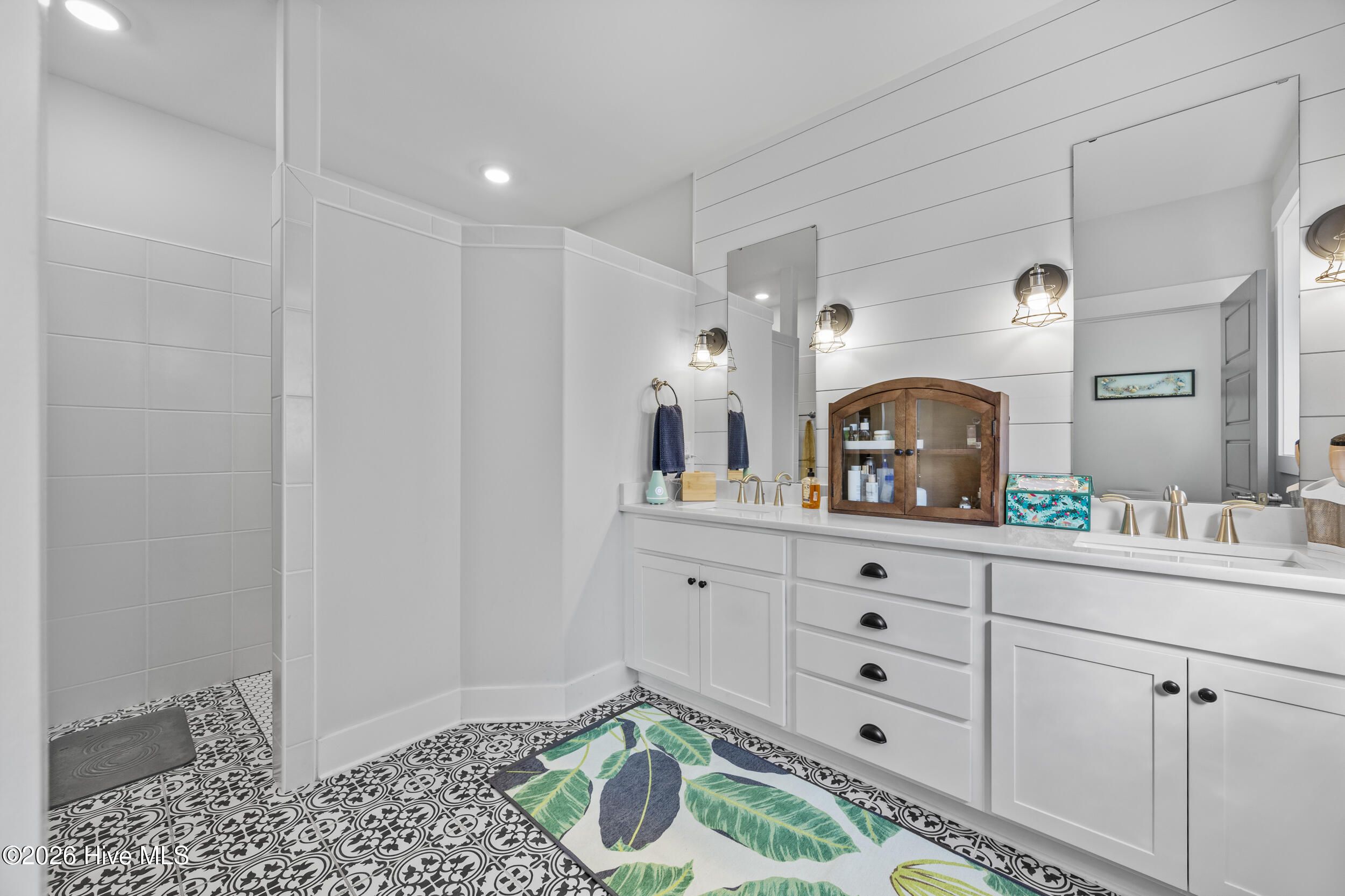 A standout in Egret Cove in Brunswick Forest, this striking white farmhouse with bold black trim offers a refreshing alternative to the typical cookie-cutter home, designed with character and thoughtful detail at every turn. Built in 2021, this nearly 2,500 sq ft residence features 3 bedrooms, 3 full bathrooms, and a spacious bonus room. From the moment you step inside, the foyer sets the tone with elevated finishes and a welcoming layout. A front bedroom with two closets sits just off the entry, with a full bathroom nearby showcasing colorful wallpaper. Throughout the home, you'll find wide plank LVP flooring (perfect for coastal living) paired with design elements like arched doorways, tray ceilings, wainscoting, barn doors, shiplap accents, and eye-catching wallpaper that add warmth and personality. The main living area is open and inviting, ideal for both everyday living and entertaining. The kitchen is a true centerpiece, featuring an expansive island with seating, built-in cabinetry and shelving, a microwave drawer, subway tile backsplash, and high-end appliances including a gas cooktop with vent hood. The adjoining living room offers a cozy gas log fireplace flanked by custom built-ins, accented with stylish wallpaper and lighting. Seamlessly extending the living space, a four-panel sliding glass door opens to a screened-in porch with EZ Breeze panels, creating the perfect year-round retreat. Whether you're relaxing on the daybed swing or catching a game, this space is made for unwinding. The primary suite is a serene escape with a shiplap accent wall, dual walk-in closets, and a spacious ensuite featuring dual vanities and a zero-entry walk-in shower. Upstairs, you'll find an additional bedroom, full bathroom, and a large bonus room that easily functions as a fourth bedroom, media room, or home office. Out back, the yard is ready for entertaining with a generous patio, fire pit area, and even a private putting green--bringing a touch of resort living right to your backyard. Additional highlights include a functional mudroom off the garage and a floored walk-in attic for ample storage. Located in the Egret Cove section of Brunswick Forest, this home offers access to one of the area's most amenity-rich communities. Residents enjoy multiple outdoor pools, an indoor pool, fitness centers, miles of walking and biking trails, tennis and pickleball courts, parks, and a full calendar of social events. The community also features convenient on-site shopping, dining, and medical offices, along with the renowned Cape Fear National Golf Course. Just minutes from downtown Wilmington, area beaches, and I-40, this home truly offers the best of coastal living.