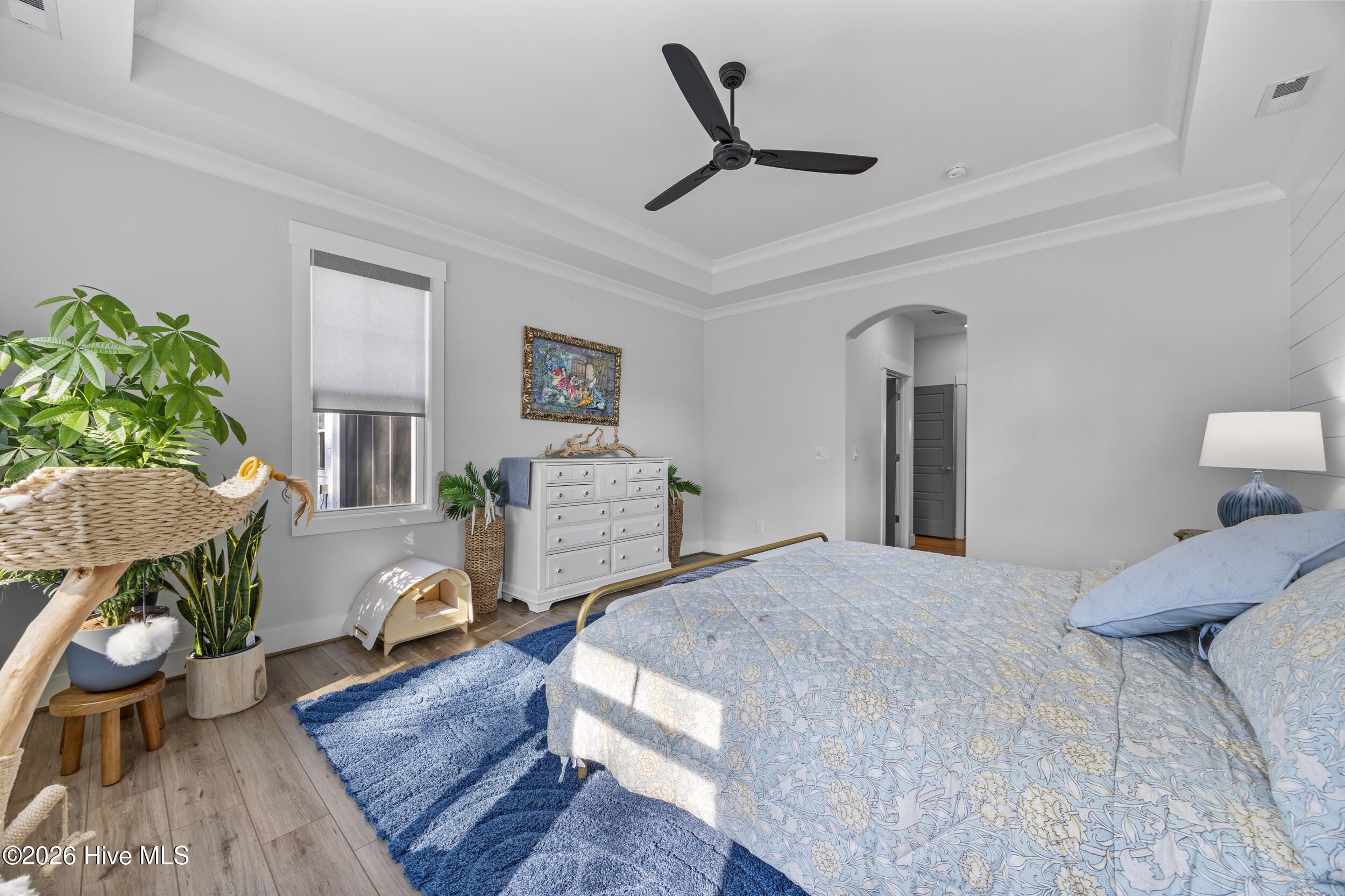 - Master Downstairs, Walk-In Closet(s), Tray Ceiling(s), High Ceilings, Solid Surface Counters, Kitchen Island, Ceiling Fan(s), Pantry, Sauna, Walk-In Shower, Blinds, Built-in Features