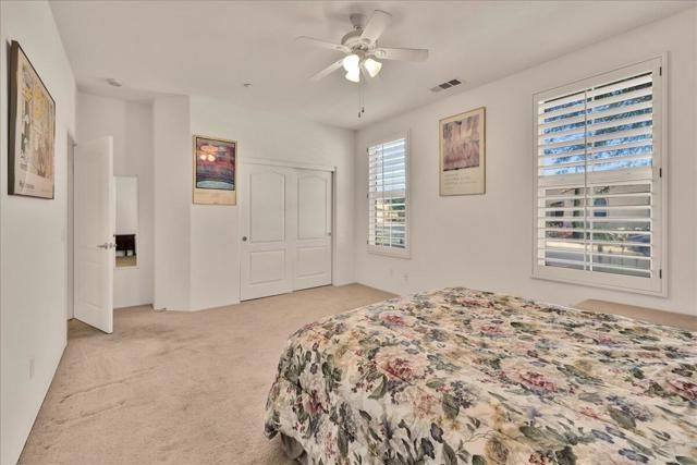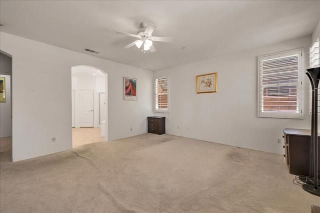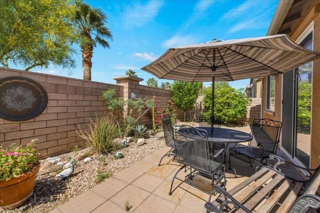 A Clean Slate with Panoramic Mountain View in Palm Springs with Owned Solar! Spacious open floorplan, tiled floors. Located in gated Four Seasons 55+ active adult community, with social activities, near the focal point 14,000 sq ft clubhouse. Gourmet kitchen with abundant storage, a breakfast bar, walk in pantry, bar seating, corian countertops, stainless steel appliances. Low HOA fees include Frontier fiber optic internet. Close to downtown Palm Springs and all its attractions.
