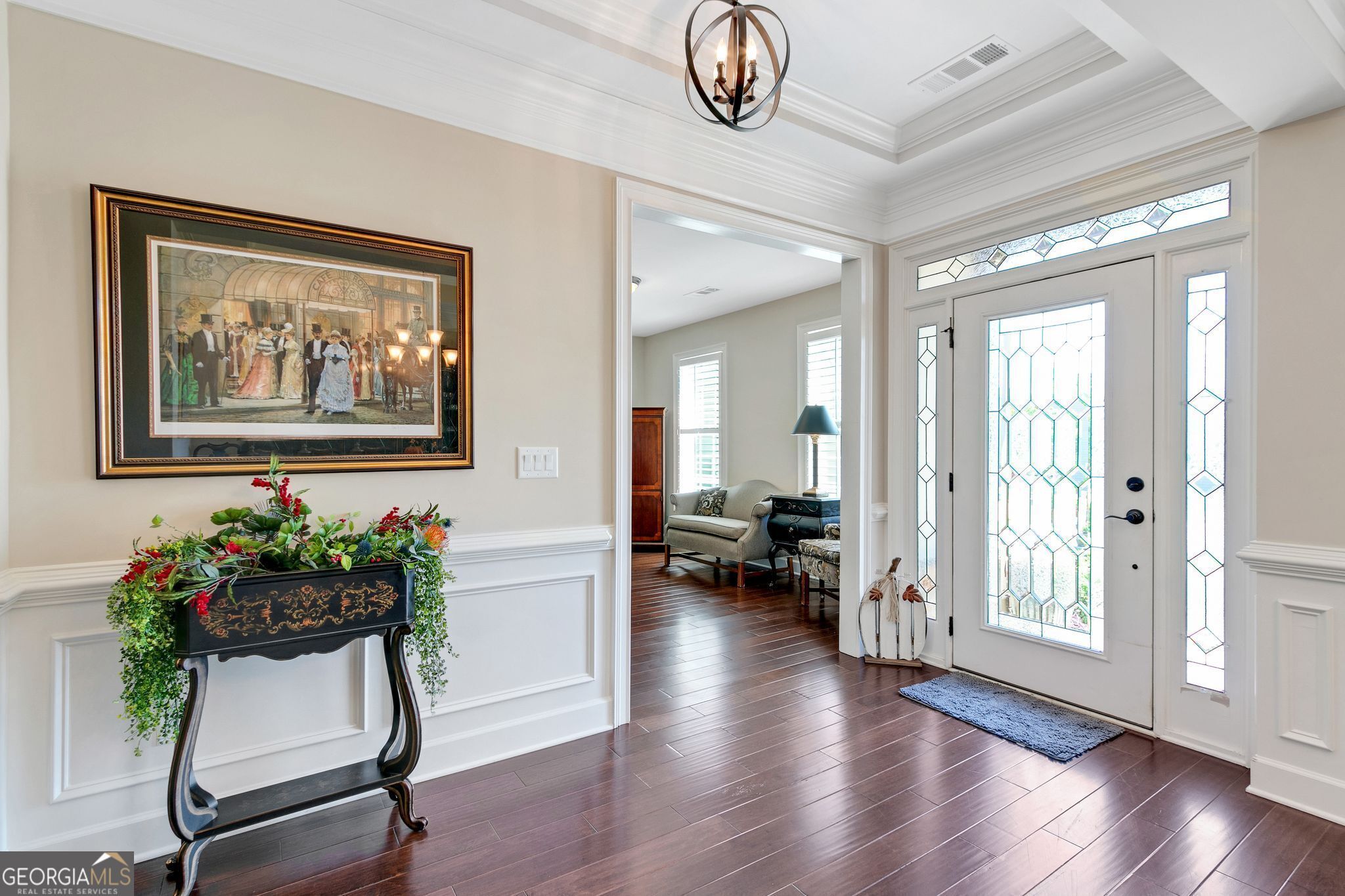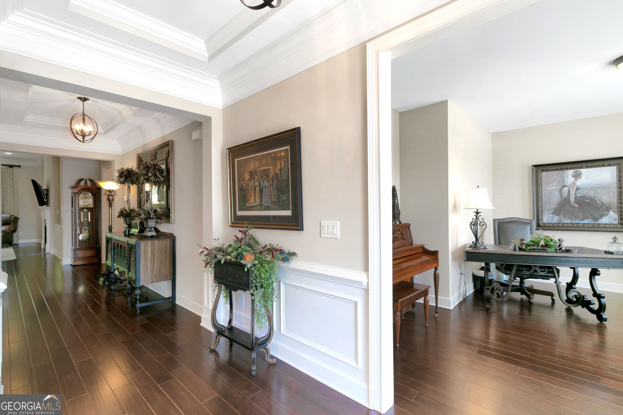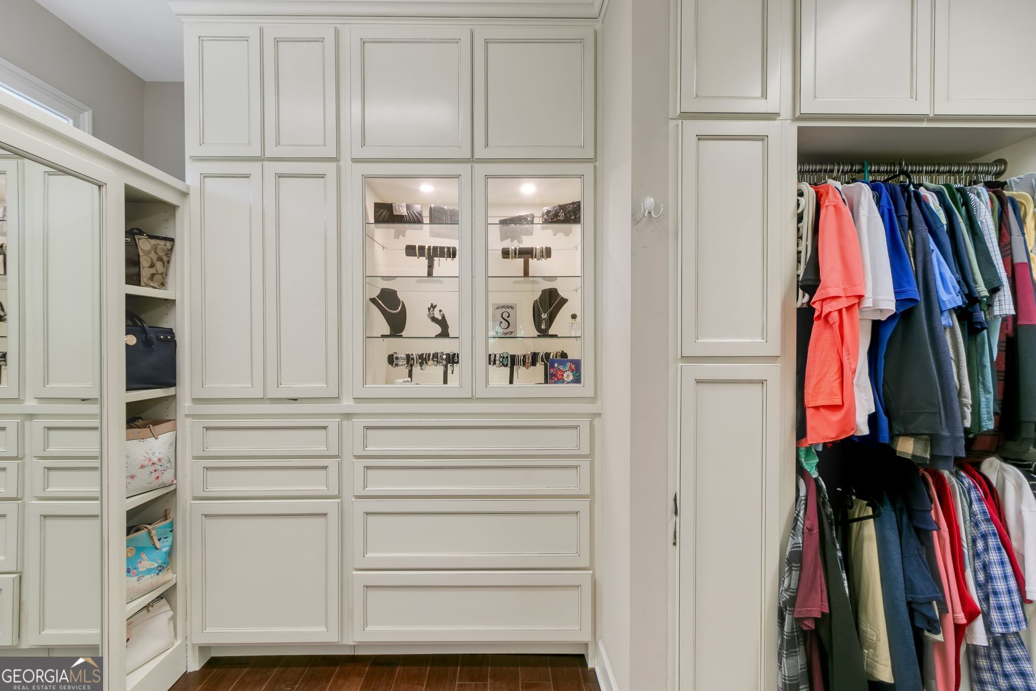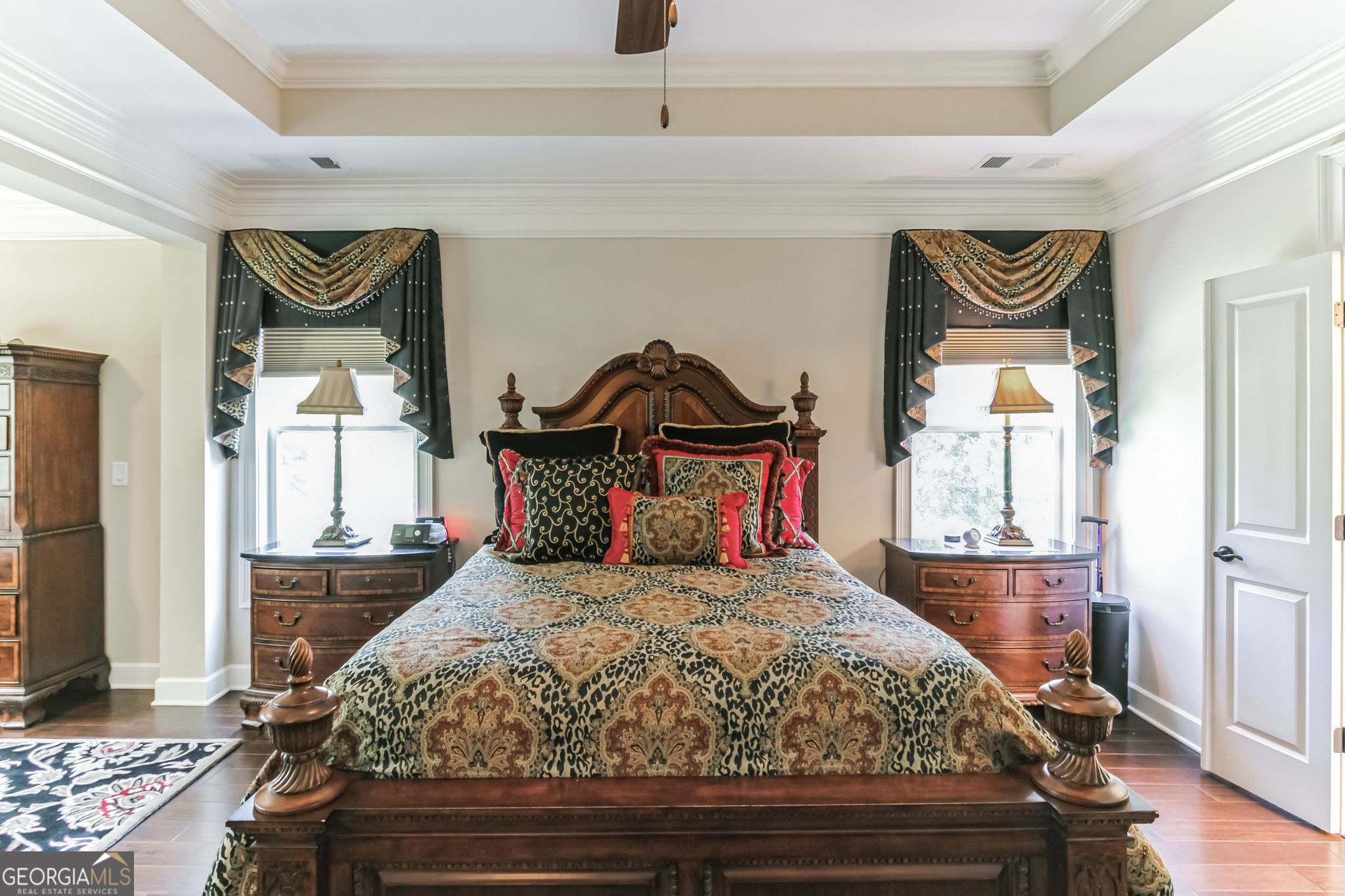 - Bookcases, Double Vanity, In-Law Floorplan, Main Level Primary, Split Bedrooms, Tile Bath, Tray Ceiling(s), Walk-In Closet(s), Wet Bar, Window Treatments, Family Room, Entrance Foyer, Game Room, Laundry Facility, Media Room, Home Office, Home Theater