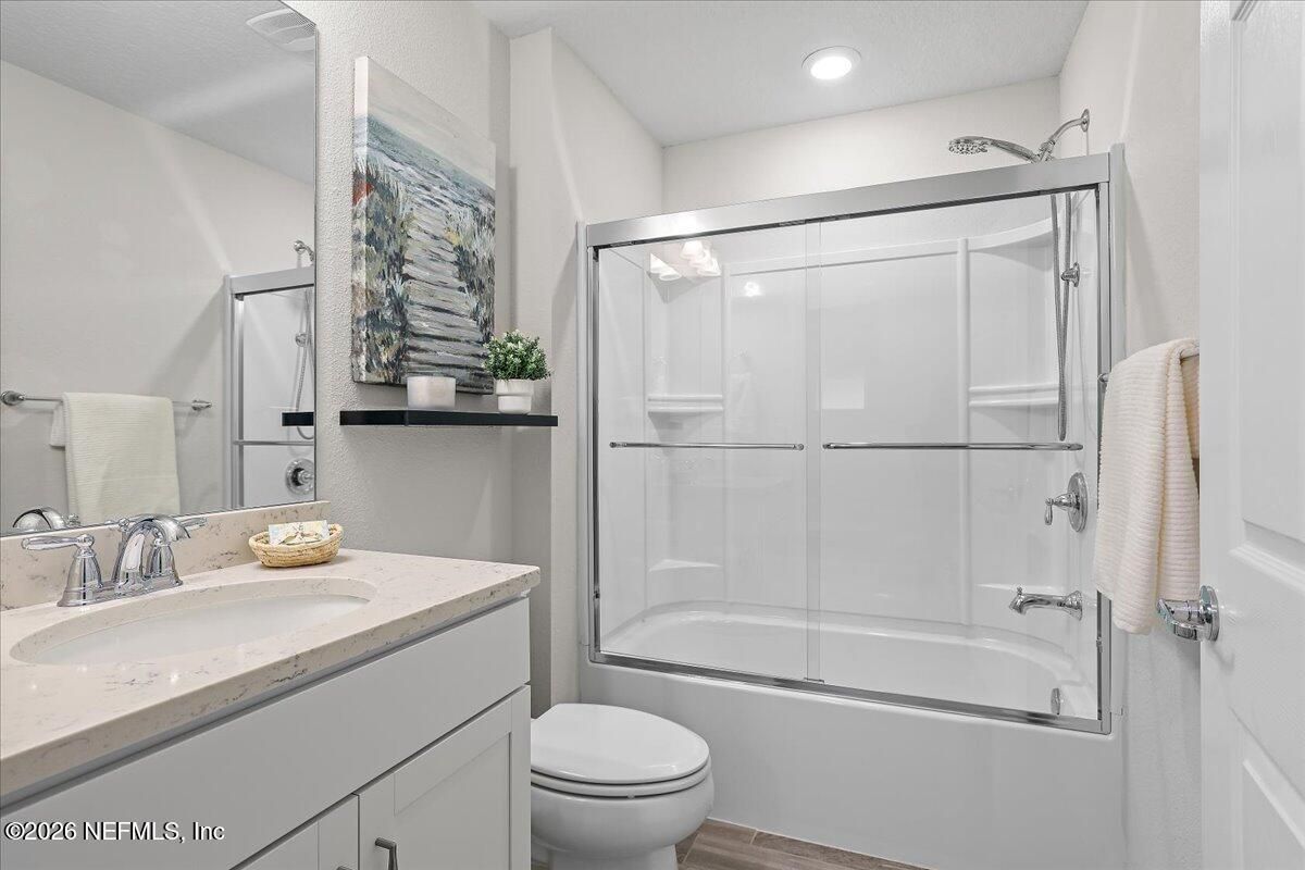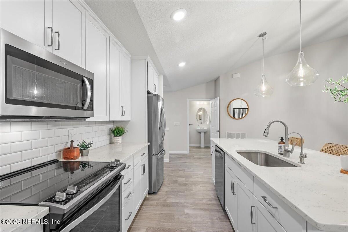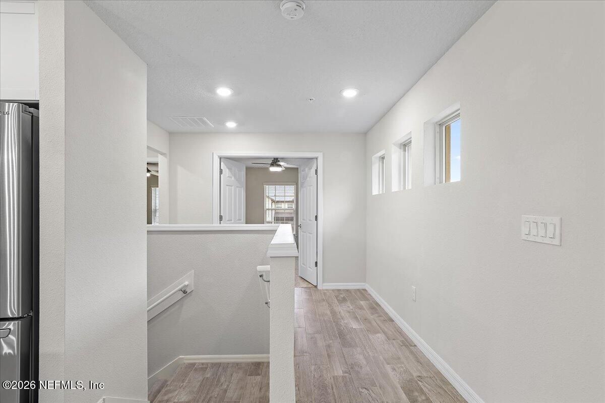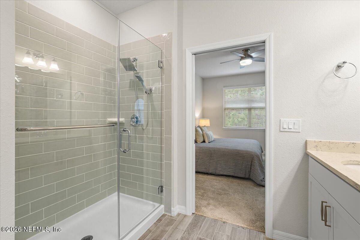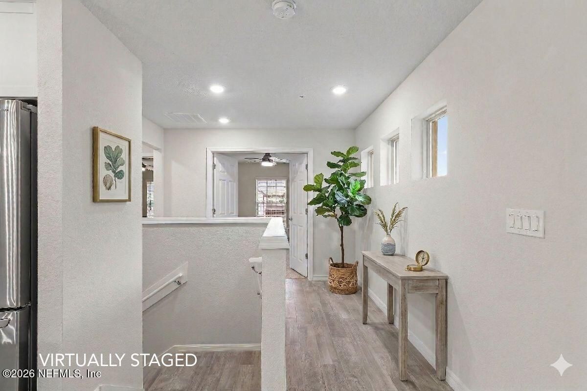 Welcome to effortless living in Del Webb Ponte Vedra, a centrally located 55+ community just 15 minutes to the beach. This upgraded second-floor condo offers 1,873 sq. ft., a private 1-car garage, and peaceful premium preserve views. Vaulted ceilings and abundant natural light create an airy feel. High-end wood-look tile enhances the open living space, while the kitchen features ceiling-height cabinetry and quartz countertops. Enjoy the extended screened lanai (approx. 10x20 ft) with northwest exposure overlooking the preserve. The spacious primary suite includes an upgraded bath and oversized closet. A secondary bedroom w/ bath and an office with French doors offers ideal guest or workspace flexibility. Concrete block construction, whole-unit water filtration, reverse osmosis, an additional half bath, and a generous laundry room add convenience. Resort-style amenities include indoor and outdoor pools, fitness center, coffee shop, trails, pickleball, tennis, and... a vibrant social calendar with a new Discovery Center (soon to be completed), simulated Golf center, and state-of-the-art yoga studio.