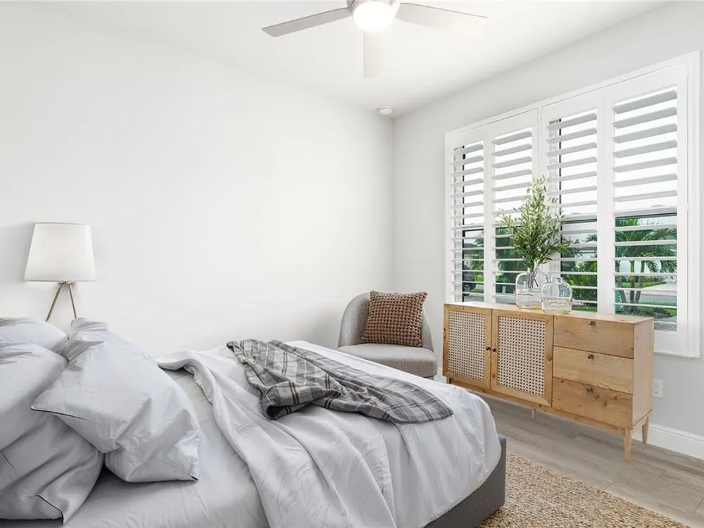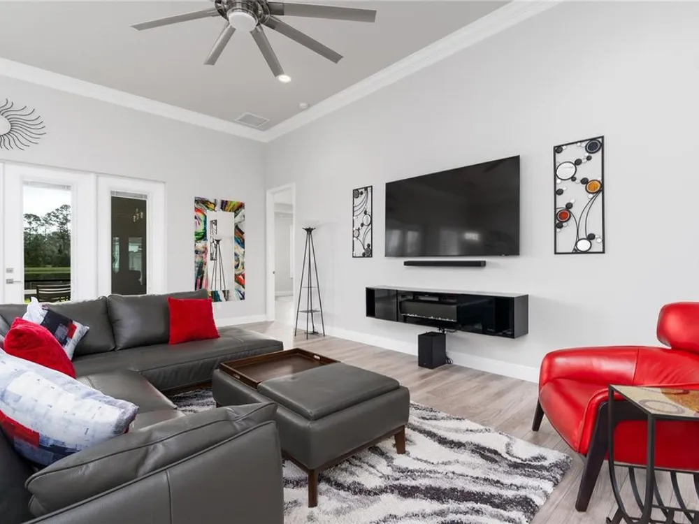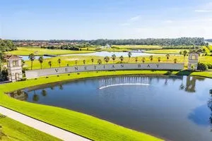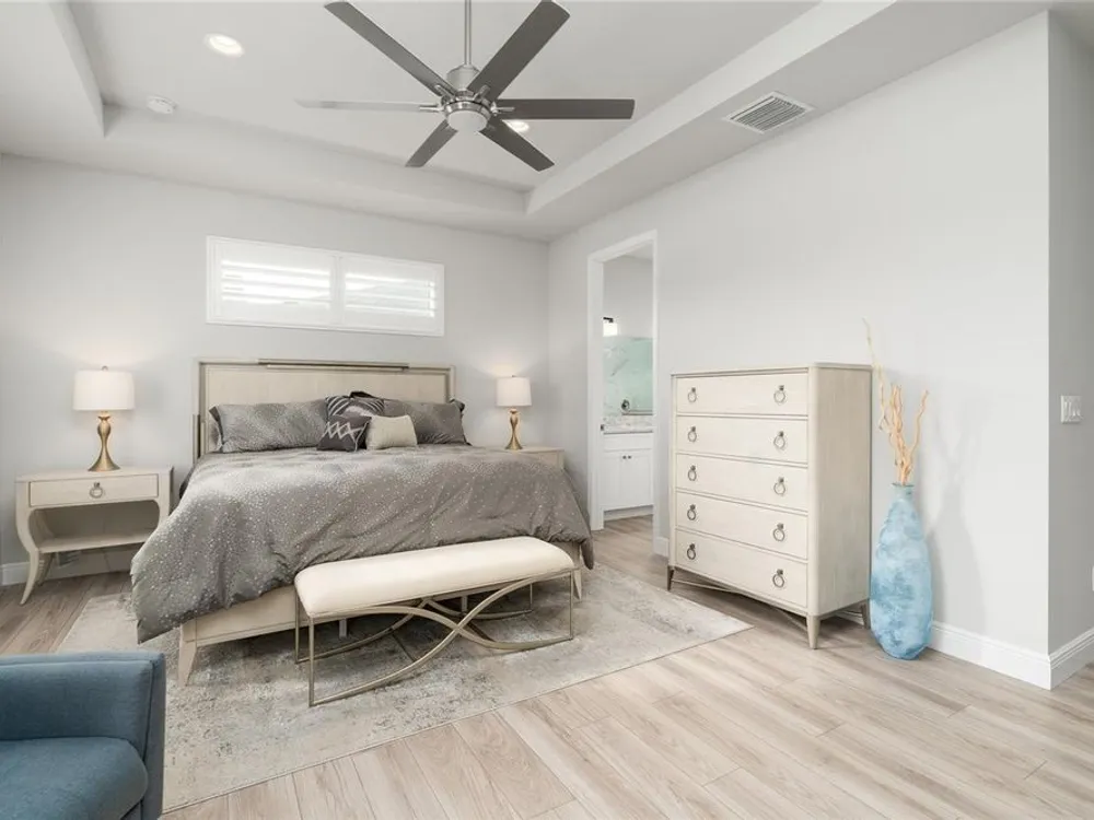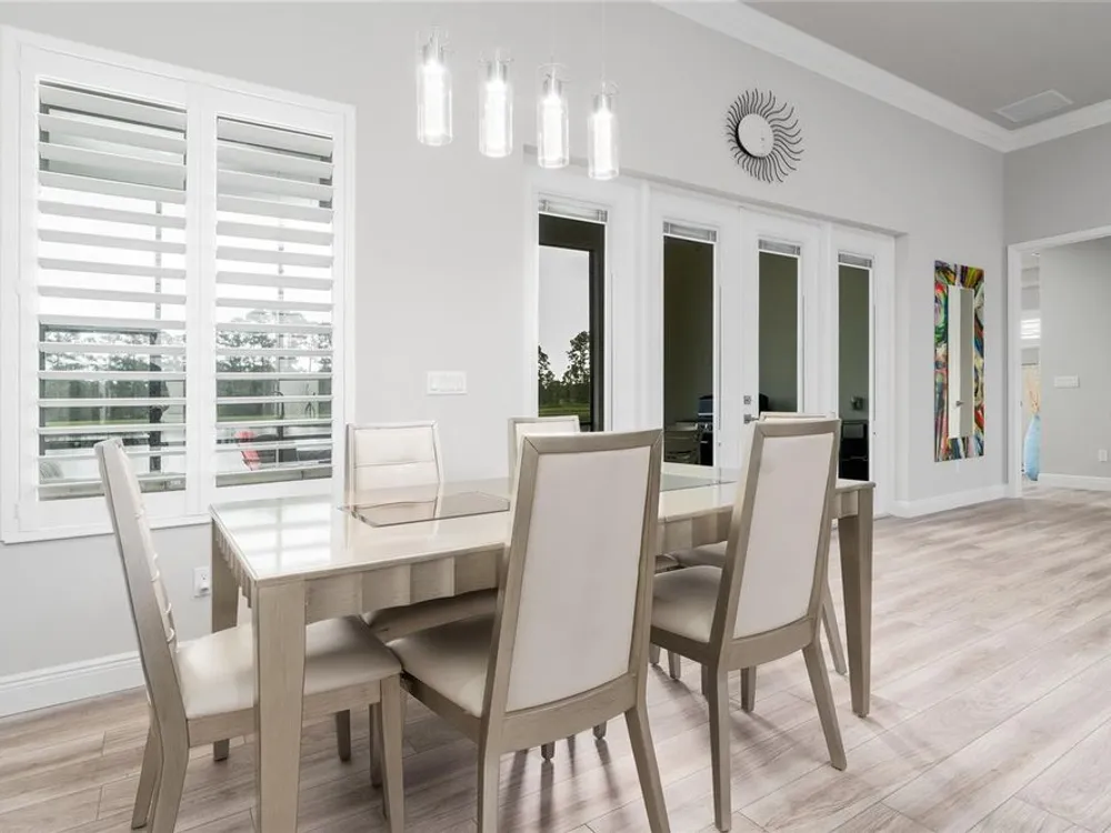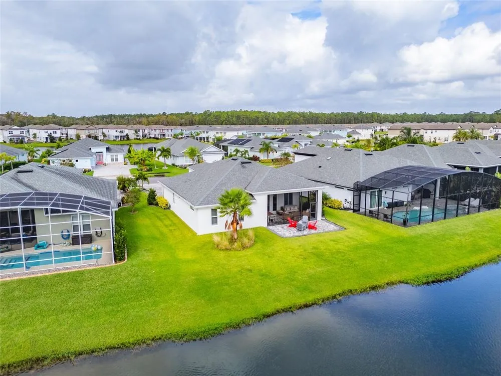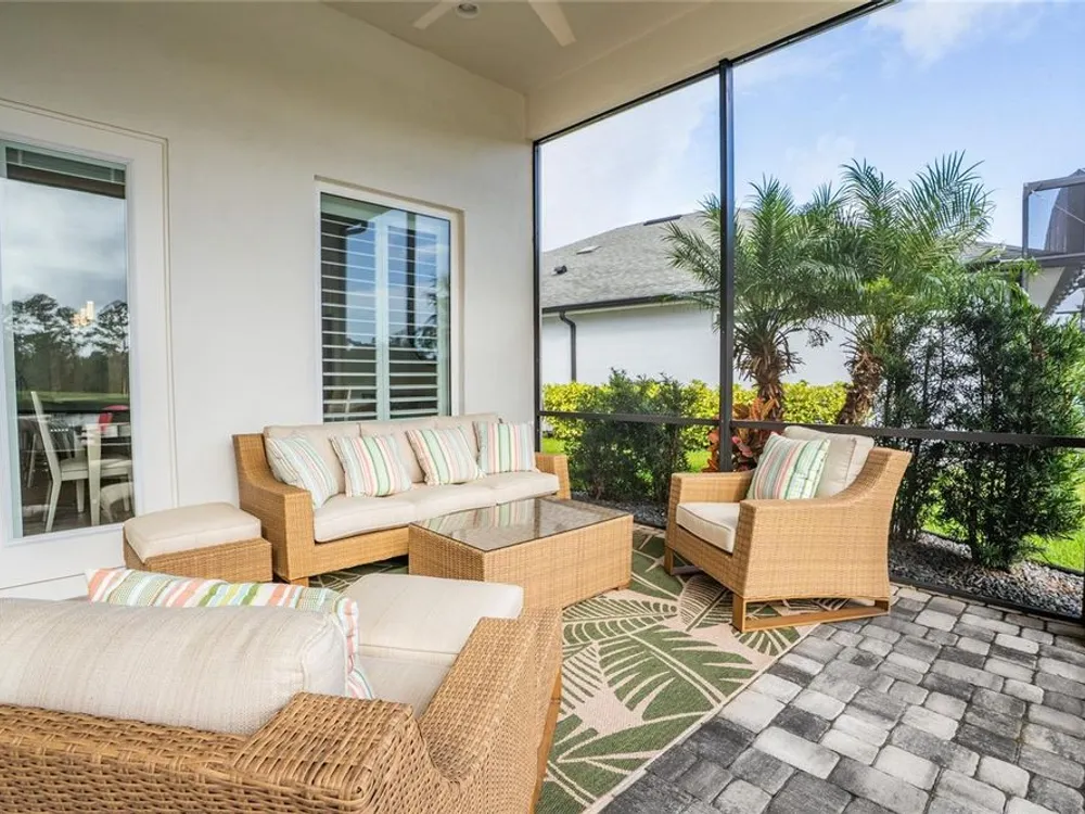 One or more photo(s) has been virtually staged. Experience refined Florida living in this beautifully crafted 3-bedroom, 2-bath Johnson-built custom home, complete with a 3-car garage and dedicated office space. Perfectly positioned to capture expansive, long-range lake views, this residence offers both elegance and tranquility. Step out to the extended screened-in lanai—ideal for relaxing or entertaining—while enjoying the serene waterfront backdrop. Inside, thoughtful upgrades include luxury vinyl plank flooring throughout, detailed crown molding, and a beautifully appointed primary bath with upgraded tile finishes. Nestled in the prestigious golf course community of Venetian Bay, this home combines elevated design with a coveted lifestyle. Additional features include gutters, a sun tunnel for added natural light, and a custom front door with built-in blinds. The kitchen is a chef’s dream with quartz countertops, recessed lighting, stainless steel appliances, soft-close cabinets and drawers, and upgraded door hardware. Both the guest and primary bathrooms are finished with quartz countertops, and crown molding enhances the living room, dining area, and kitchen. Enjoy the added convenience and style of French doors—also with built-in blinds—leading to the lanai, plantation shutters throughout the home, an epoxy-coated garage floor, paver driveway, and ceiling fans in every room, including two on the patio. Furniture is negotiable, making this move-in ready home even more appealing. Schedule your showing today and experience why this home at 347 Venetian Palms Blvd should be your new home-sweet-home!