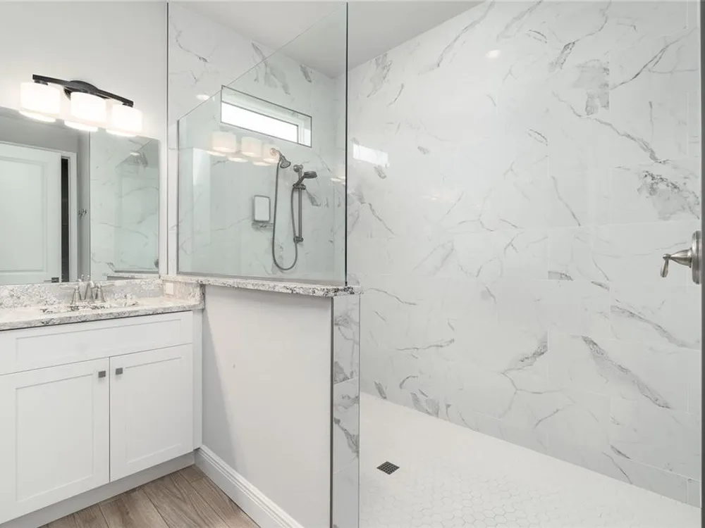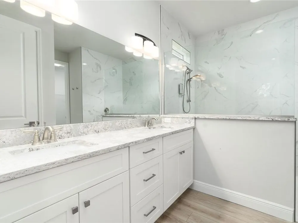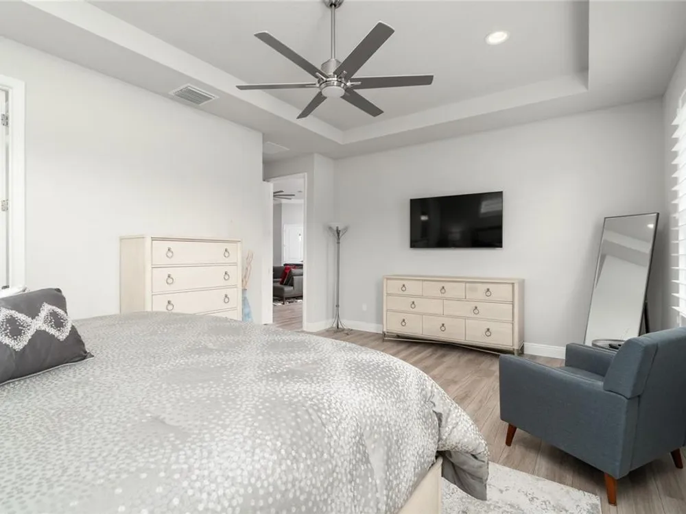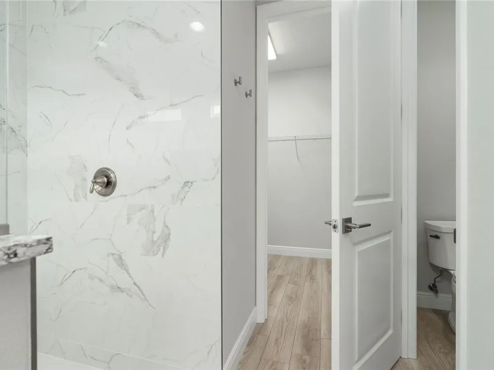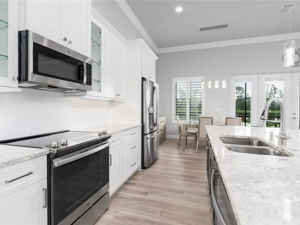 - Crown Molding, Living/Dining Room, Open Floorplan, Main Level Primary, Split Bedrooms, Stone Counters, Walk-In Closet(s)