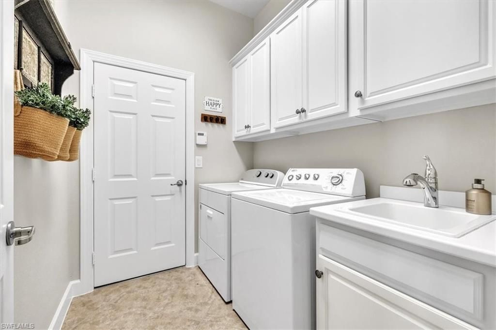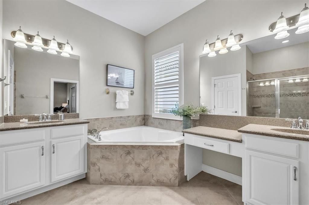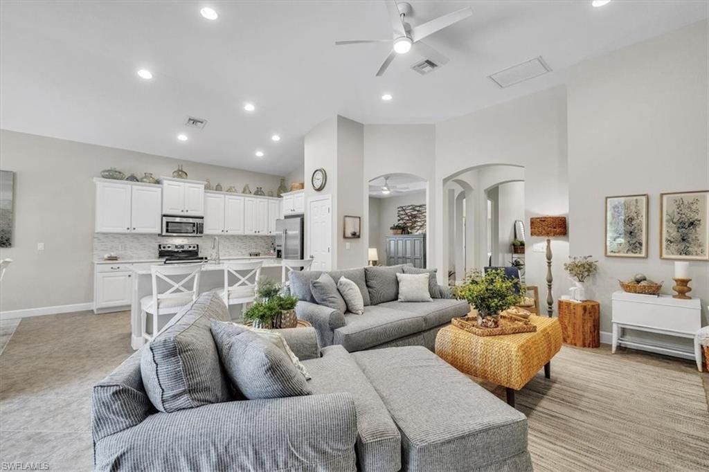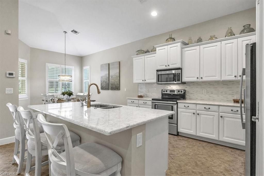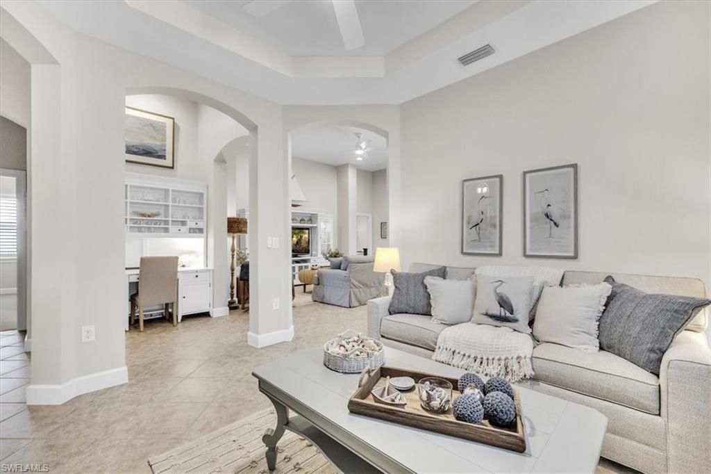 Welcome to your Southwest Florida sanctuary — a beautifully updated 3-bedroom, 3-bath home that perfectly blends coastal charm with modern comfort. Offered turnkey furnished, this home is move-in ready and showcases over $73,000 in thoughtful upgrades designed for relaxed, elegant living.Step inside to a freshly painted interior where soft coastal tones, new plantation shutters from Metro Blinds ($10K), and professionally curated décor ($5K) create an atmosphere of calm sophistication. The open-concept living space flows into a newly upgraded chef’s kitchen, featuring a stunning quartz counter-height island and backsplash ($12K) — the perfect place to entertain or enjoy casual meals.The primary suite is a true retreat, featuring new furniture ($26K investment across the home), a serene sitting area, and a spa-inspired bath with a soaking tub and walk-in shower. A dedicated built-in office station offers an ideal work-from-home setup. Every detail has been refreshed, from professionally cleaned tile grout to leveled and sealed driveway pavers.Outside, your private pool and integrated spa overlook a peaceful preserve, offering ultimate privacy and west-facing sunsets. Even the garage has been enhanced with a $3K split AC unit, perfect for hobbies or extra comfort.Enjoy the best of the Southwest Florida lifestyle — coastal décor, turnkey ease, and a home that feels brand new. With every upgrade complete, all that’s left is to bring your suitcase and start living the dream.If all that isn’t enough to sell you on this home, Verandah Members enjoy two championship golf courses, pickle ball, tennis, bocce, an attended fitness center overlooking a resort-style pool and free kayaking at our own Orange River launch. Our own Blossoms offers lively, but casual, outdoor riverfront dining while the River House dining is smart casual with a perfect after-sports bar. Bingo night, club dinners and live entertainment are frequent. Because Verandah is situated around two 18-hole championship golf courses, it has the green space for 9.3 miles of walking, biking and jogging paths, 2 bark parks and a large wooded playground area. The ‘natural’ ambience here is quite different from most communities. Join our casual, friendly Verandah community. There truly is something for everyone here! Be sure to click on the Matterport 3D virtual tour to ‘walk’ through the home and see the floor plan!