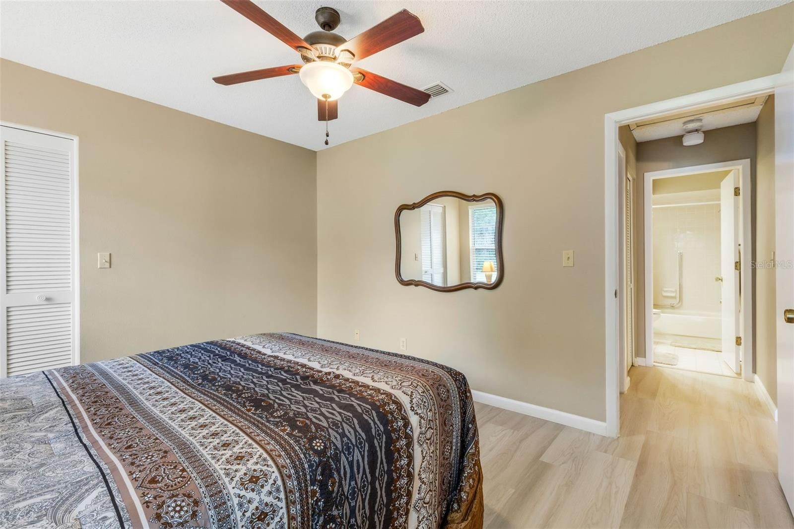 - Ceiling Fan(s), Eat-in Kitchen, Living/Dining Room, Main Level Primary, Solid-Wood Cabinets, Walk-In Closet(s), Window Treatments