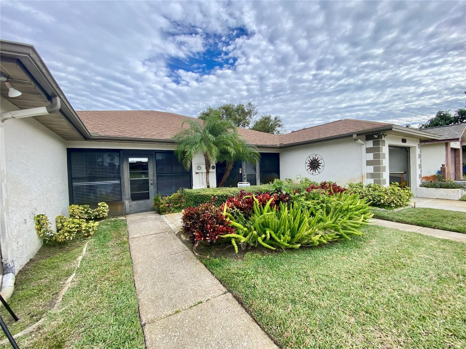 LOWEST HOA FEES IN HIGHLAND LAKES and PET FRIENDLY! Tucked away in desirable Duplex Village 1, this 2 Bedroom Villa has 2 Full Baths and an attached Garage. Thoughtfully updated and Freshly PAINTED with Soothing, calming colors, also features brand-new, light & neutral Luxury Vinyl Floors that will go with any decor. A NEW HVAC (8/2025), NEW ELECTRICAL PANEL (4/2023), NEW ROOF (12/2016), and A NEW IMPACT GLASS DOOR (12/2025) that brings in the Light from the Large Four-Season living area at the front of the villa - perfect for enjoying your morning coffee or an evening cocktail while watching the sunset. The spacious side and back yard provide an ideal space for BBQs and entertaining. With HOA approval, you may add a deck, outdoor lanai, or Florida room off the back. The $160 monthly HOA fee gives you Cable, Internet, Lawn Care, Irrigation, Trash removal, and Outdoor Pest Control. Ownership also includes Highland Lakes membership ($164 a month) that grants you FREE GOLF on 3 Executive courses, FREE and SECURE BOAT/RV STORAGE, 2 Pontoon Boats for cruising the Lake, Fishing pier, 2 Heated swimming pools and a hot tub, TENNIS/PICKLEBALL, Clubhouse with numerous activities, shows, dances, chair yoga and volleyball, Ceramics, Stainglass and a Full Woodworking Workshop and so much more. Community is ideally located near shopping, restaurants, 2 International Airports, Raymond James Football Stadium, Tampa's Lightning Hockey games at Amalie Arena, and Concerts at Ruth Eckerd Hall. Just 3 miles to Dunedin Causeway with World Famous Honeymoon Island, the Tarpon Springs Sponge Docks, Quaint Downtown Palm Harbor, Walls Springs, and Dunedin. 30 minutes South to the sugar white sand of Clearwater Beach, and North to Fred Howard Park/Sunset Beach. This villa is perfect for year-round living or a relaxing vacation home.