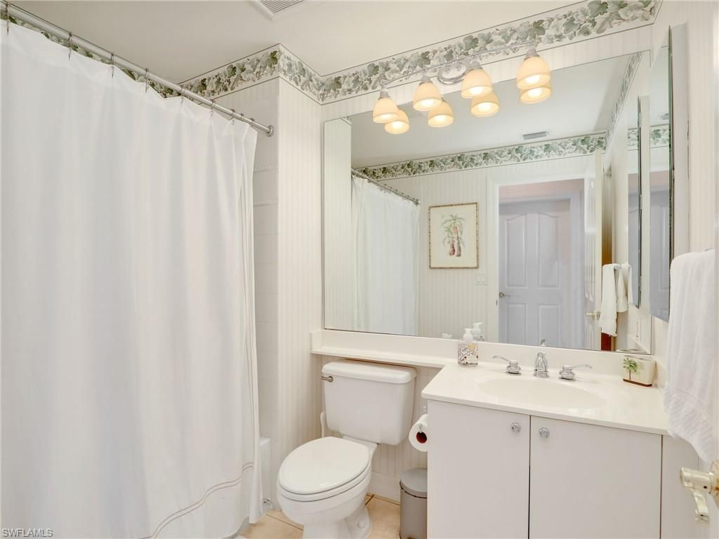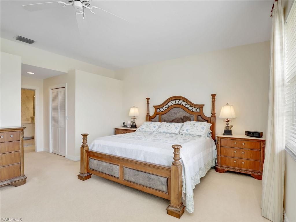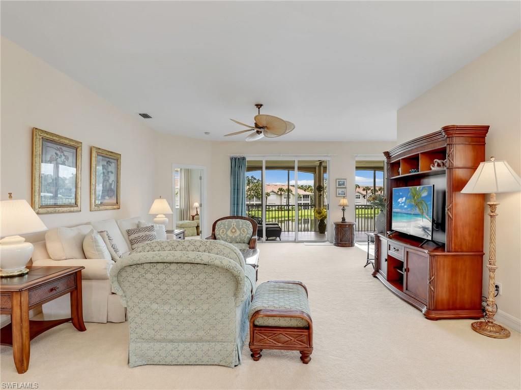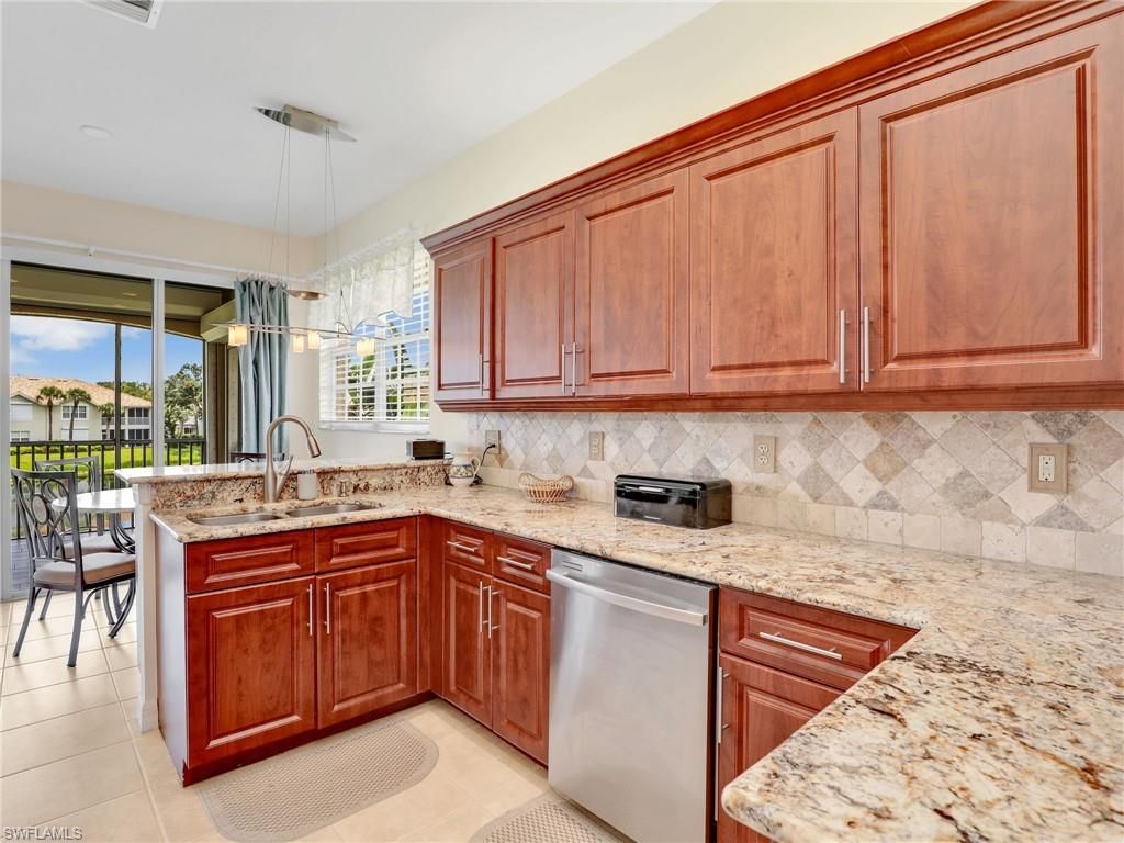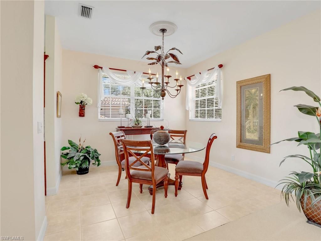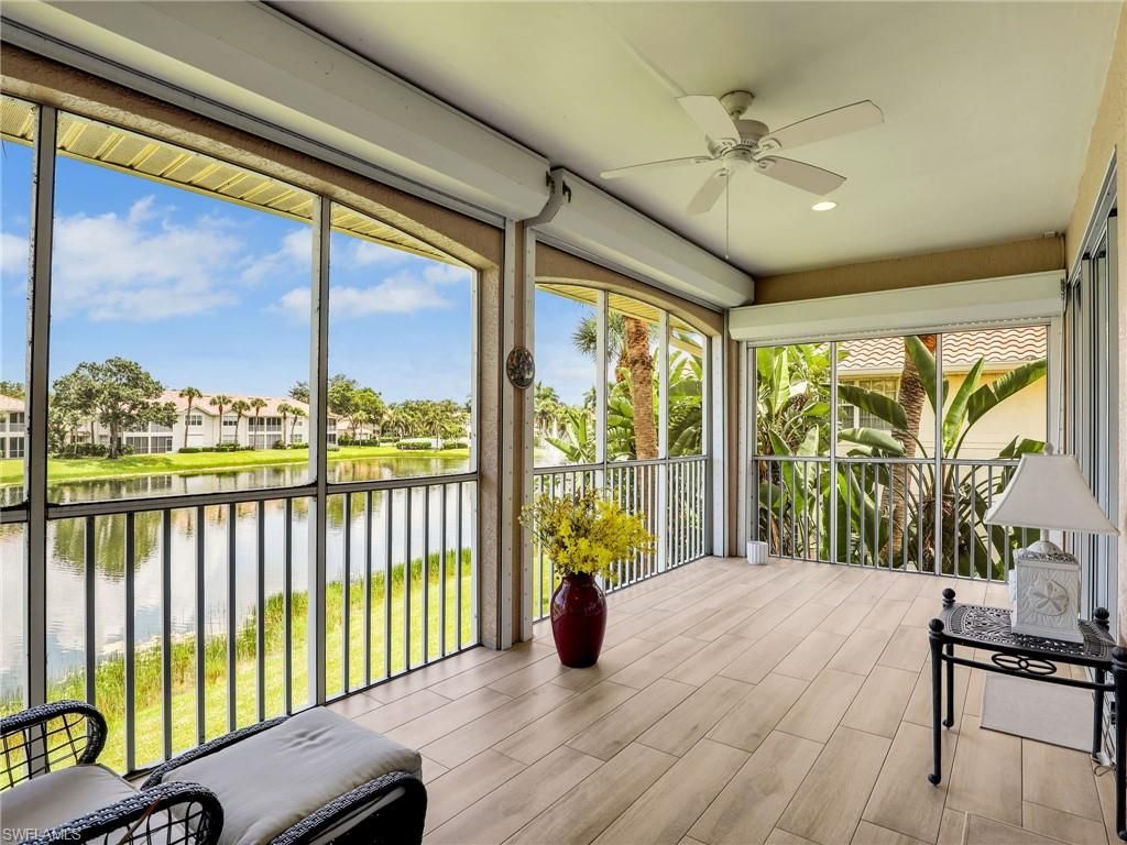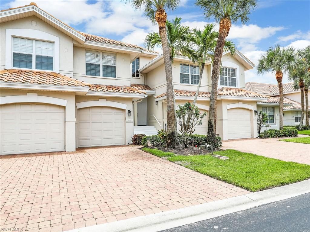 Nestled within the desirable community of Southbridge at Pelican Landing, this beautifully updated 3-bedroom, 2-bathroom LAKE FRONT condo with a 1-car garage offers the ideal blend of style, comfort, and access to world-class amenities. Step inside to find a light-filled interior that opens up to soaring vaulted ceilings, soft neutral tones, and thoughtfully updated finishes. The spacious living and dining areas offer a seamless flow for entertaining or simply enjoying the tranquil lake views just beyond the screened lanai. Large sliding glass doors bring in abundant natural light and invite the outdoors in, making the lanai a perfect extension of the living space. The serene backdrop of trees and natural greenery creates a private and calming retreat. The kitchen is both stylish and functional, offering updated cabinetry, stainless steel appliances, granite countertops, and a tile backsplash. A cozy breakfast nook off the kitchen with access to the lanai is ideal for morning coffee, while dining area allows for larger gatherings. The spacious primary suite features private access to the lanai, a walk-in closet, and a spa-like ensuite bath with dual vanities, a jetted soaking tub, and a separate shower. Two additional guest bedrooms are generously sized and share a well-appointed second bathroom, offering plenty of room for visitors or a dedicated home office. Additional upgrade include a newer HVAC system, newer LVT flooring in the lanai, and roll down shutters for the lanai area. Pelican Landing is renowned for its exceptional lifestyle and amenities, all included in the master HOA. Residents enjoy access to a private 34-acre island beach park accessible by community boat shuttle, providing a true resort-style escape. Additional amenities include a state-of-the-art fitness center, sailing center, bocce courts, pickleball, and tennis programs, as well as a kayak and canoe park set along Spring Creek. An optional golf membership (not included) is also available. Miles of scenic walking and biking paths wind through the community, fostering a deep connection to nature. Southbridge also features its own community pool and spa, giving you an easy option for a refreshing swim or relaxing soak not far from your front door. Located in the heart of Estero, you’re short distance from Coconut Point, fine dining, shopping, and the sugar-sand beaches of Southwest Florida.