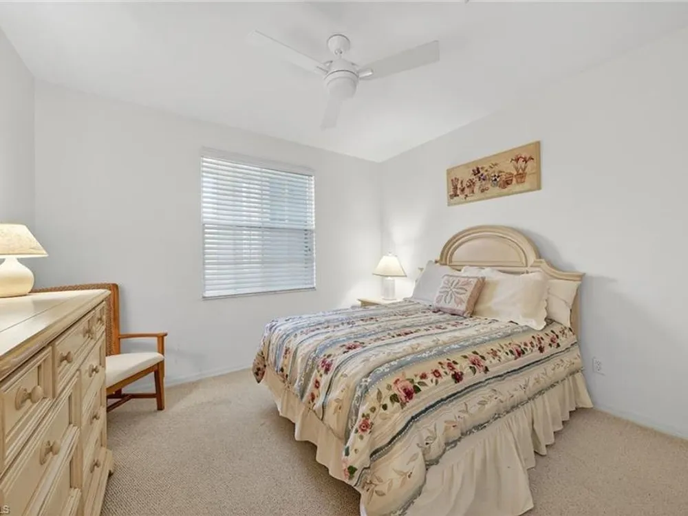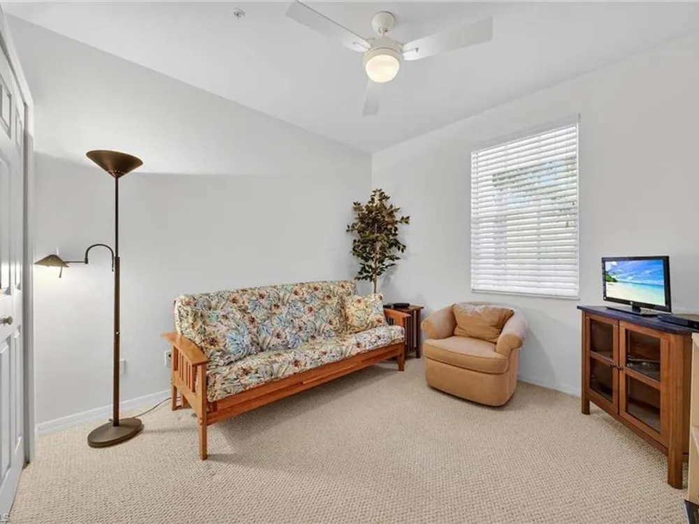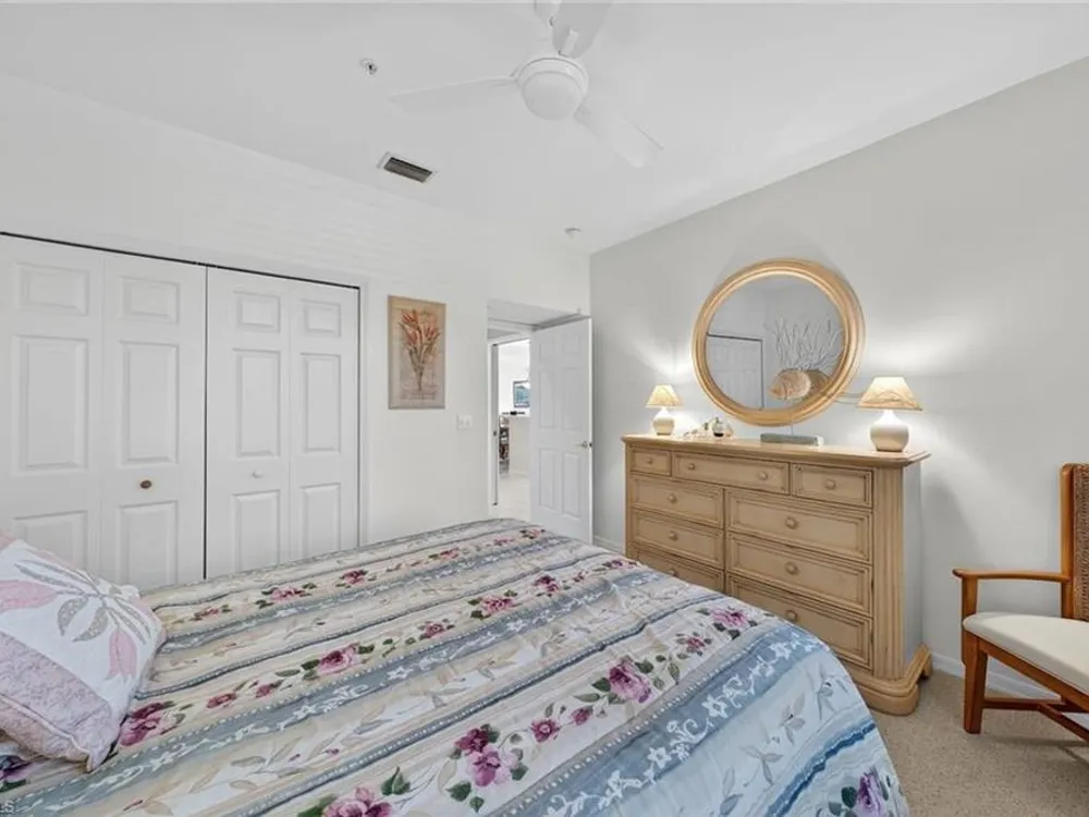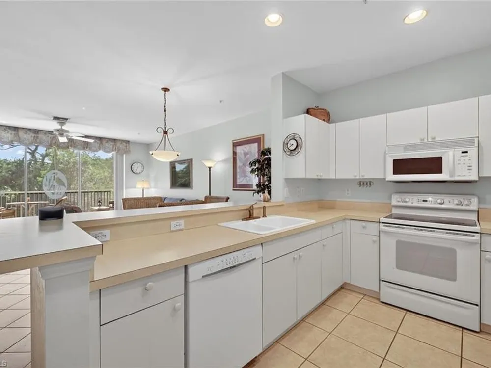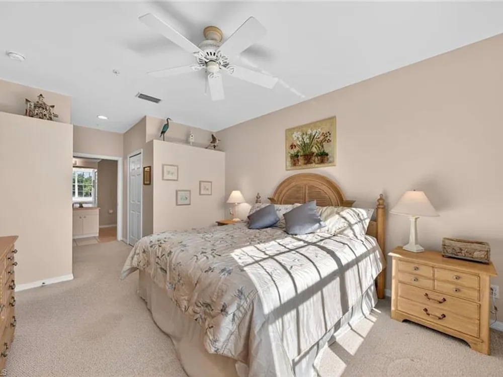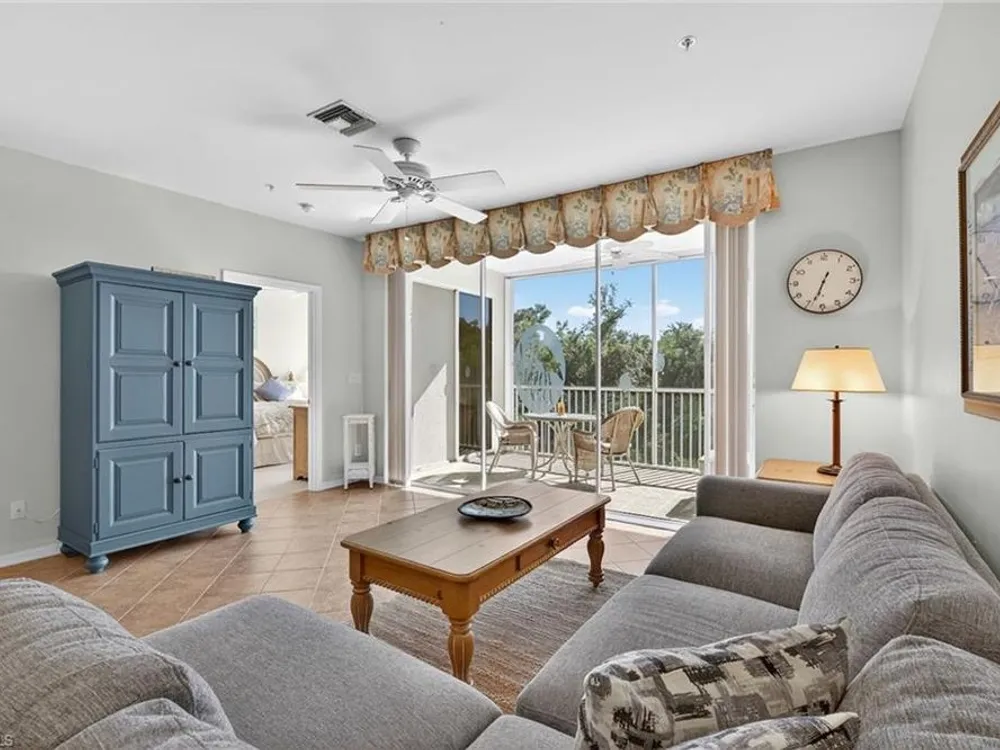 This spacious, maintenance-free, furnished second-floor condominium combines modern comfort with effortless living. Designed with an open-concept layout, the home features three bedrooms that are bathed in natural light and a freshly painted exterior in all buildings, floors and railings (2025). Convenient elevator access leads to the residence, while a detached garage adds everyday practicality. The southwest-facing orientation offers tranquil views of beautifully landscaped surroundings. The owner’s suite serves as a private retreat, complete with two walk-in closets and an en-suite bath. Two separate spare bedrooms provide comfort for your guests. Open living with everyday functionality, all within one of Southwest Florida’s desirable communities. Pelican Landing provides an unmatched lifestyle with amenities including tennis, pickleball and an exclusive private island for residents. Ideally west of Tamiami Trail, the community is just minutes from fine dining, shopping malls, white sand beaches and the airport. For golf enthusiasts, optional membership at Pelican’s Nest Golf Club offers access to two championship 18-hole courses.
