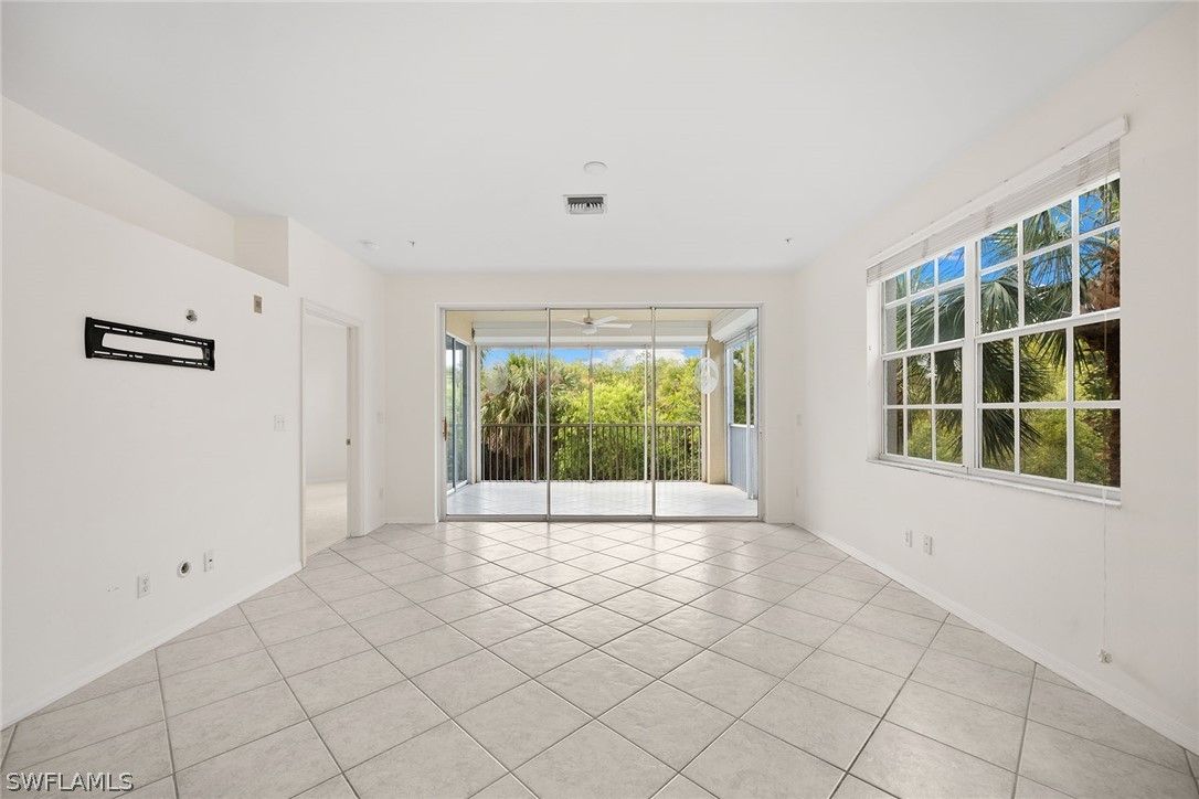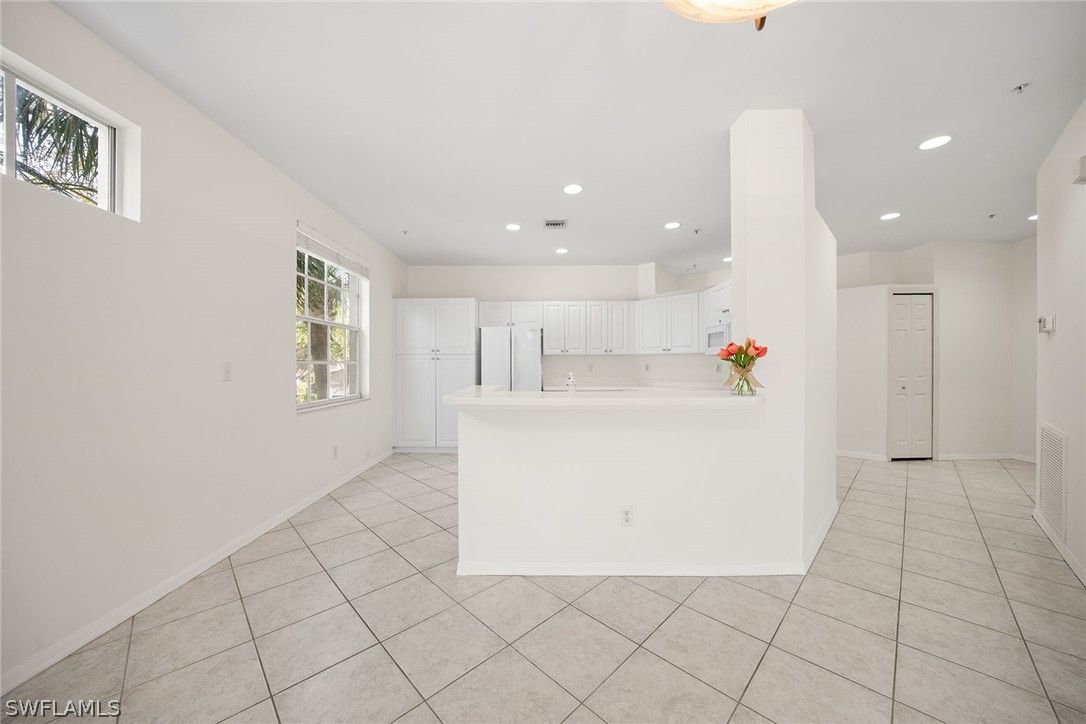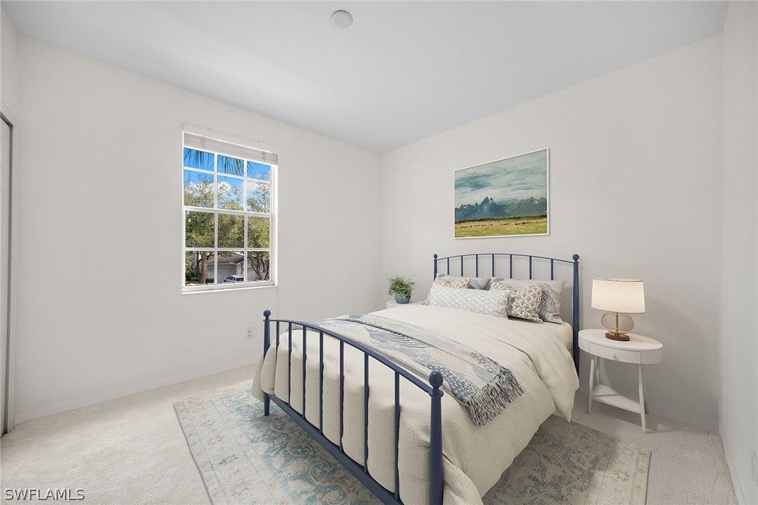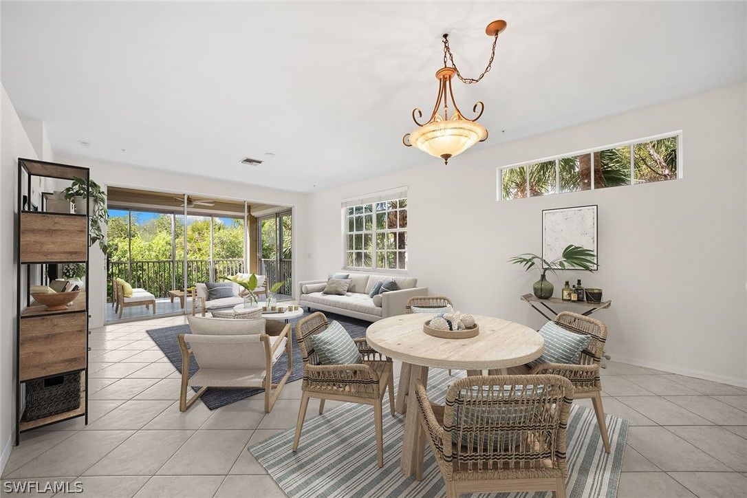 Bright and airy second-floor end-unit in The Pointe at Pelican Landing. Featuring an open flexible floor plan with third bedroom/office option, generous storage and gracious living space. Ideal for comfortable year-round living or as a seasonal resort-style getaway. Freshly painted interiors and new carpet provide a move-in-ready appeal. Community perks include low-maintenance lifestyle, with upscale amenities, including exclusive access to the Spring Creek Kayak & Canoe Park, optional golf memberships to two championship golf courses, six pickleball courts, two bocce ball courts, fully equipped fitness center, community center, tennis and beautiful recreational paths. Additional perks include a private 34-acre beach park on Big Hickory Island, with a complementary boat shuttle, sailing center with Estero Bay marina access, fishing piers, butterfly garden and prime location near Bonita Springs' charming downtown. Enjoy pristine views of Spring Creek Preserve from your screened lanai/deck. Imagine starting your day with coffee on the lanai, watching wildlife unfold, then choosing between a paddle on Spring Creek, a shuttle to your private island beach or a round of world-class golf, all without ever leaving the gates. This refreshed end-unit delivers a relaxed Floridian vibe, world-class recreation and an opportunity to be part of a vibrant community. Virtually staged for inspiring design and decor ideas. Ready for your vision and signature style.