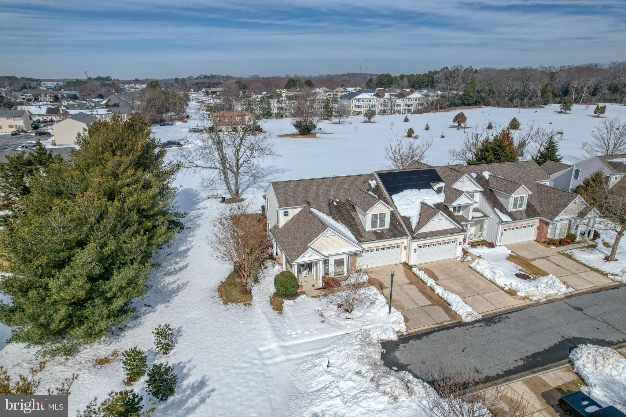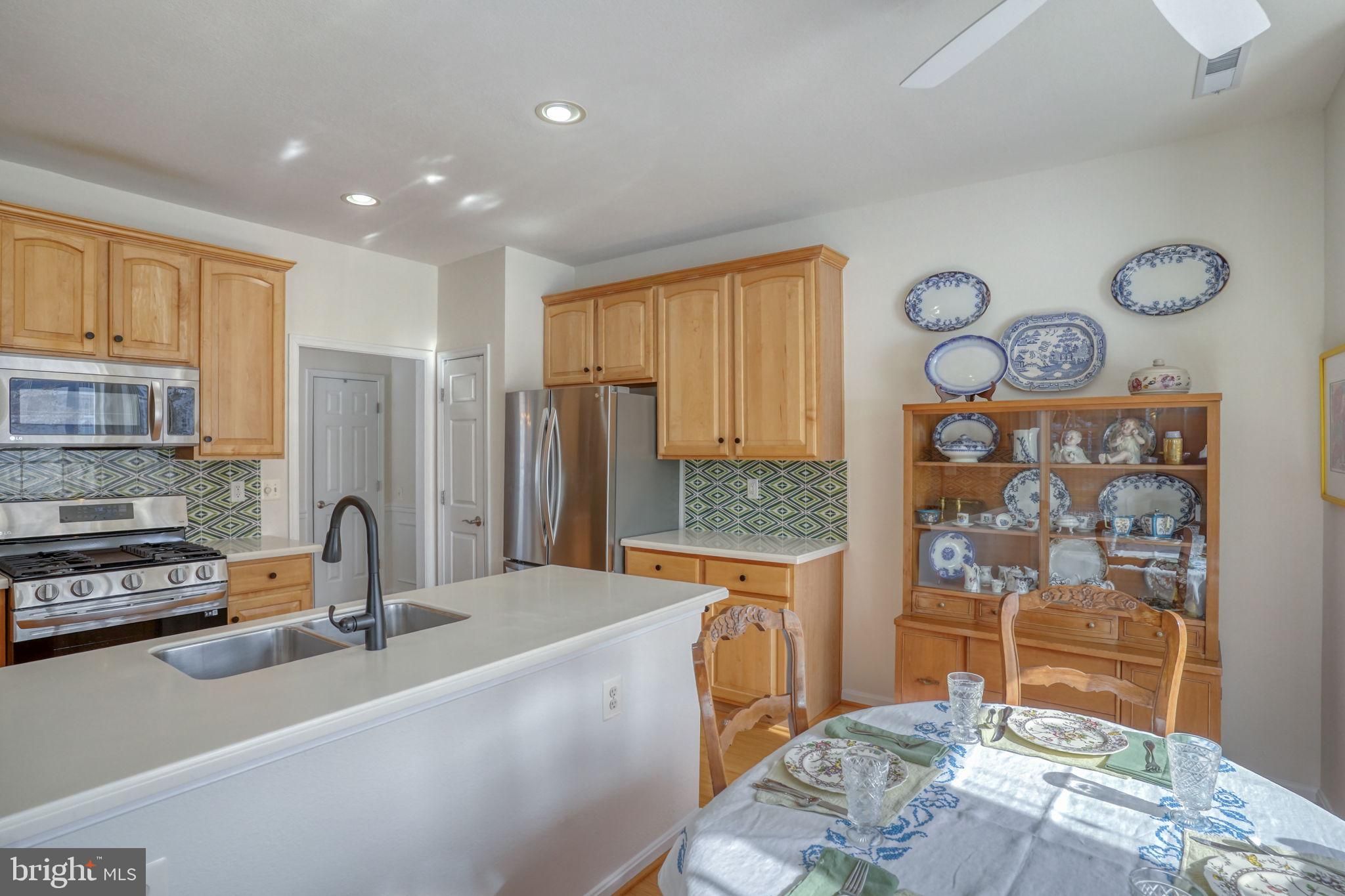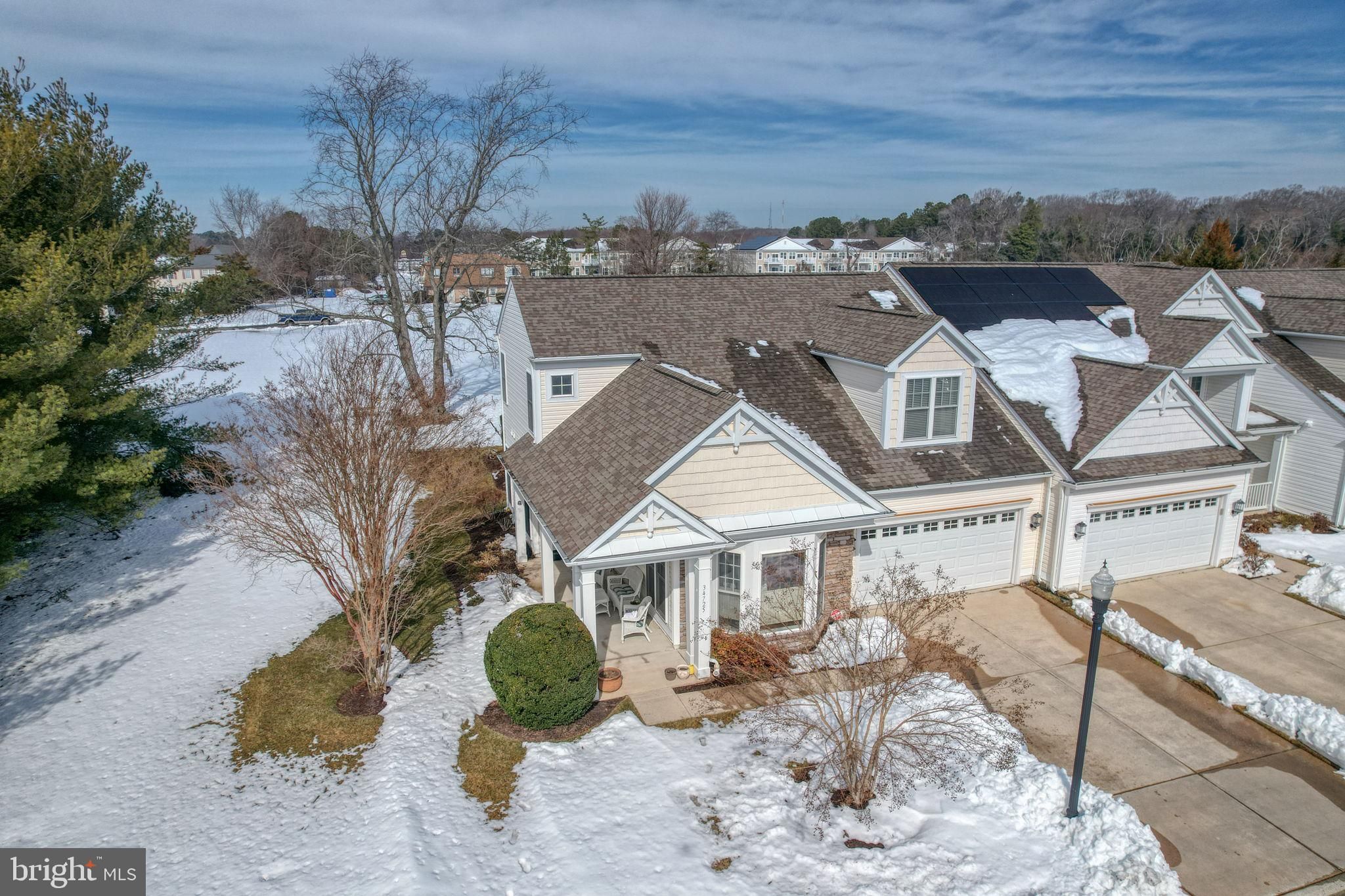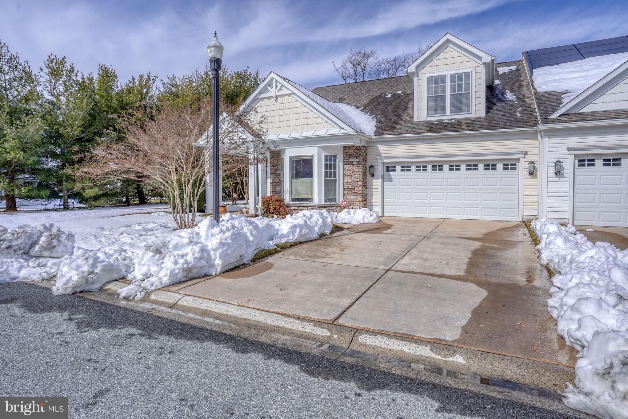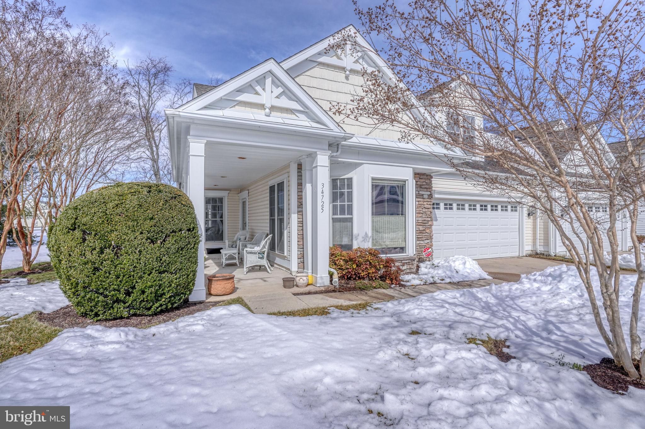 Welcome to 34725 Maritime Way, a beautifully maintained end-unit townhome in Bay Crossing, a premier 55+ community in Sussex County. Overlooking the golf course and open green space, this east-of-Route 1 home places you just minutes from downtown Lewes, Rehoboth Beach, the bike trail, Cape Henlopen State Park, the ferry, and the coast’s finest attractions. The bright, open main floor features a first-floor owner’s suite with upgraded carpeting, ceiling fan, walk-in closet, and a renovated primary bath with walk-in tiled shower, dual granite vanities, custom tile work, and timed heater. Wood floors flow through the entry hall, dining room, and kitchen, which is beautifully updated with maple cabinetry, pull-out drawers, Corian counters, tile backsplash, stainless steel appliances, natural gas stove, recessed lower lighting, and ceiling fan. **Floorplans and all association documents can be viewed by clicking on the document link above. Also, the icon to the right of the document icon is to access the home tour.** The living room is comfortable and inviting with upgraded carpet, ceiling fan, and gas fireplace, while the many-windowed sunroom opens to a private paver patio, creating a seamless indoor-outdoor retreat. A renovated powder room, large under-stair storage with wall safe, and a laundry room with custom shelving and utility sink add convenience. Upstairs, flexible space includes a lounge/den/flex room, a second bedroom with sitting area and double closets, and a fully renovated hall bath with granite countertops, custom tile shower, and linen storage. Wood flooring continues through hallways and library lounge, and a second-floor utility closet houses natural gas heating and on-demand hot water. Major systems have been updated, including dual-fuel HVAC, on-demand hot water, roof, and garage door opener. The home has been recently painted and comes with dual-zone heating and air conditioning and a security system. With lawn care, irrigation, and snow removal included, Bay Crossing offers low-maintenance living with exceptional amenities: clubhouse, fitness center, heated pool, tennis, pickleball, and an active community life. Move-in ready and perfectly located, 34725 Maritime Way combines comfort, thoughtful updates, and coastal charm — the very best of Lewes living.